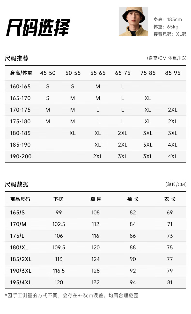 China (cm) 165 / 88-90 170 / 96-98 175 / 108-110 180 / 118-122 185 / 126-130