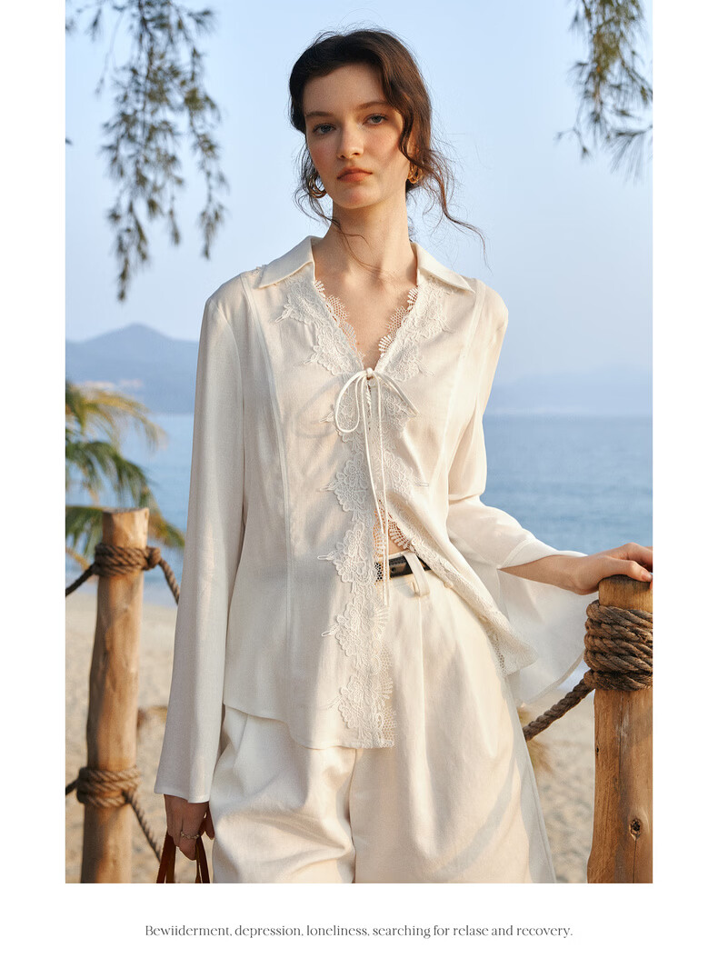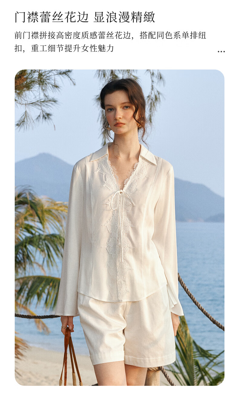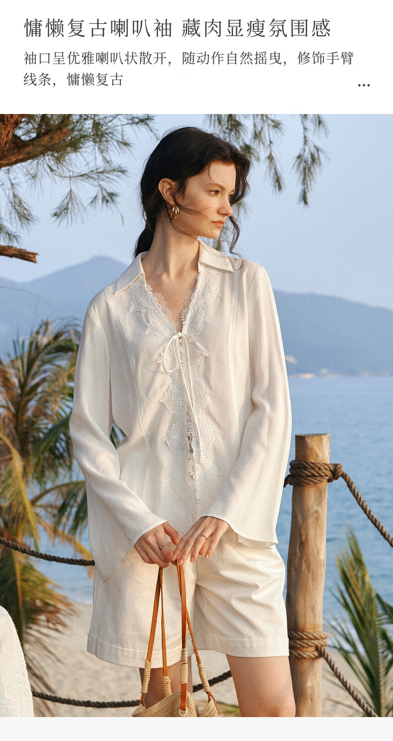 Olrain French holiday romantic lace long-sleeved shirt women's spring loose top white L
