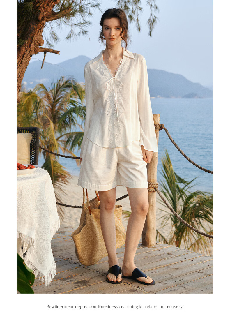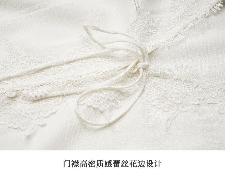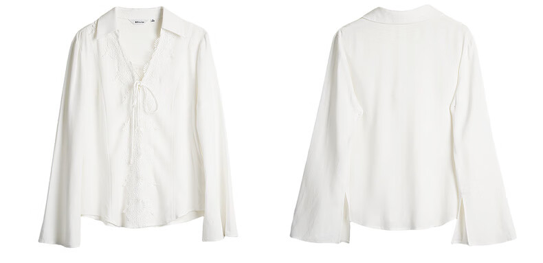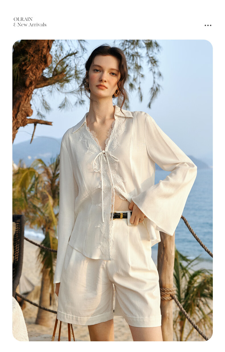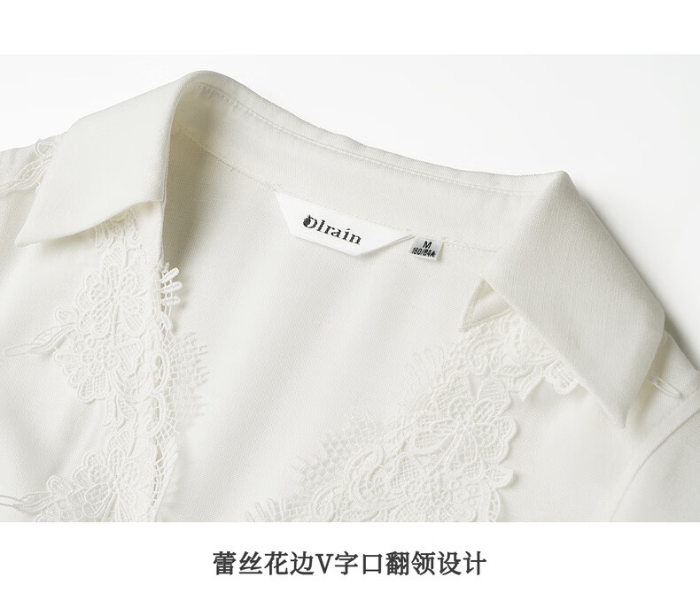 Olrain French holiday romantic lace long-sleeved shirt women's spring loose top white L