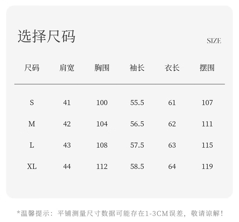 Size (cm) 42 44 46 48 50