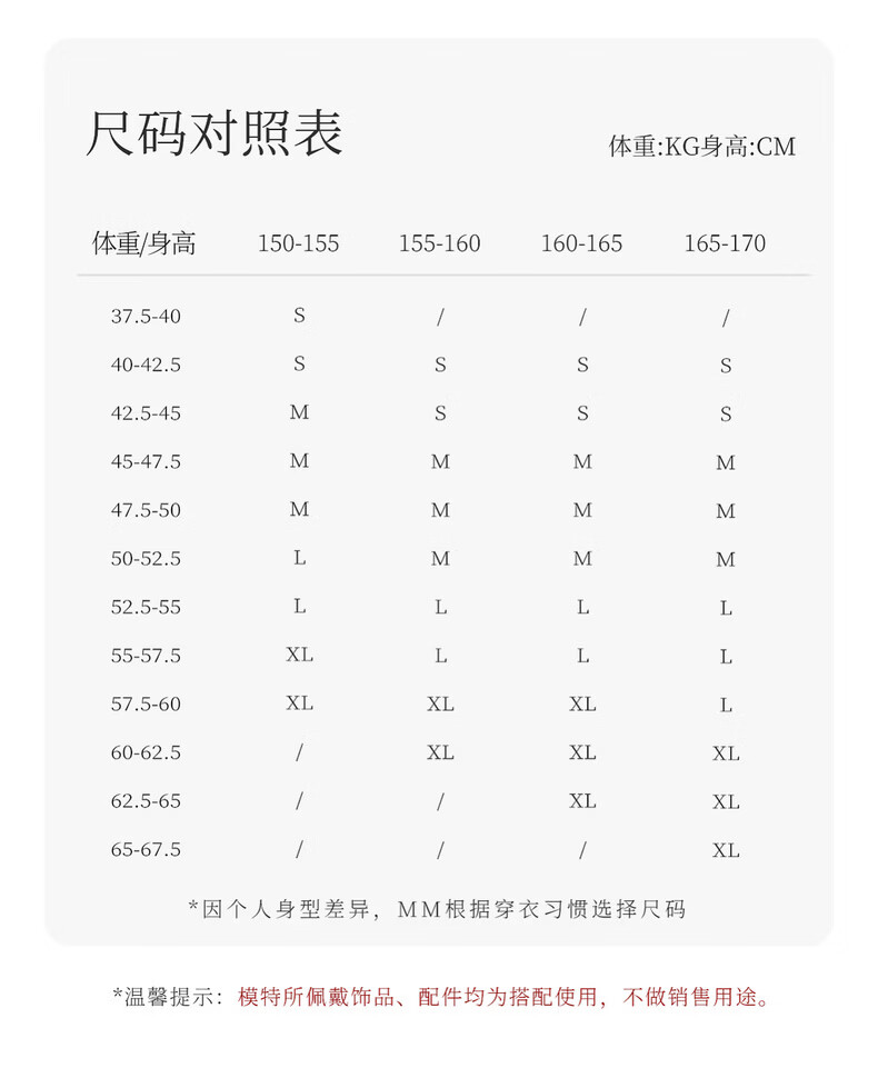 China (cm) 160-165/84-86 165-170 / 88-90 167-172 / 92-96 168-173 / 98-102 170-176 / 106-110