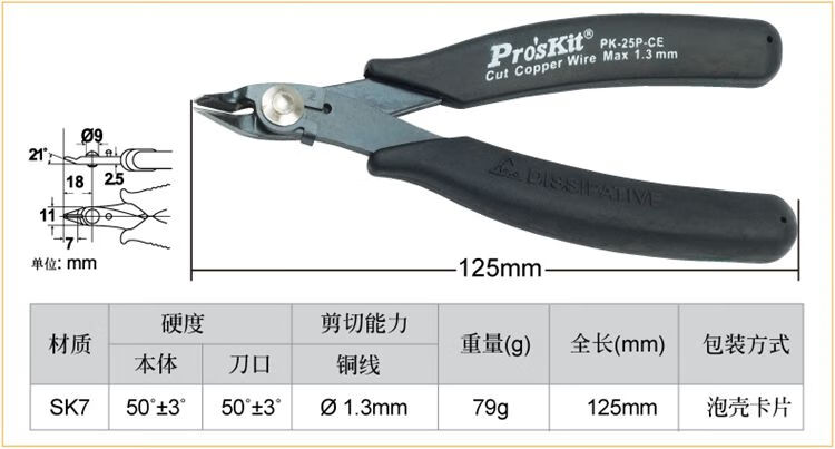 Baogong (Pro sKit) anti-static Ruyi fine blade diagonal pliers diagonal nose pliers diagonal nose pliers electronic pliers 1PK-25P-CE