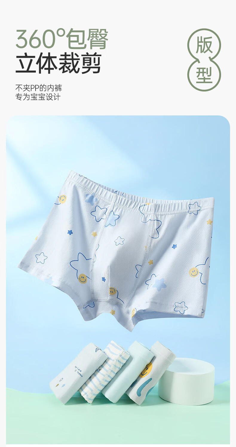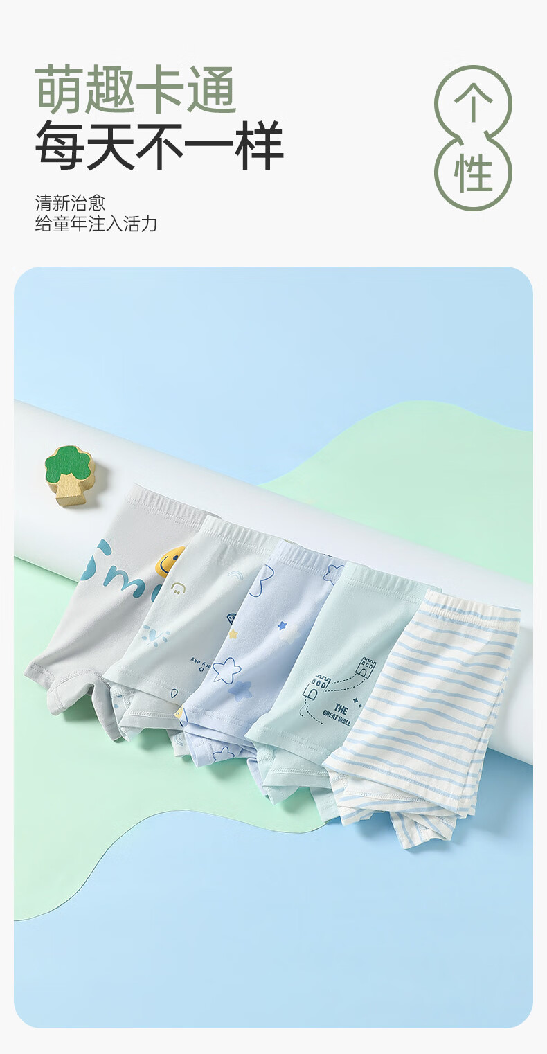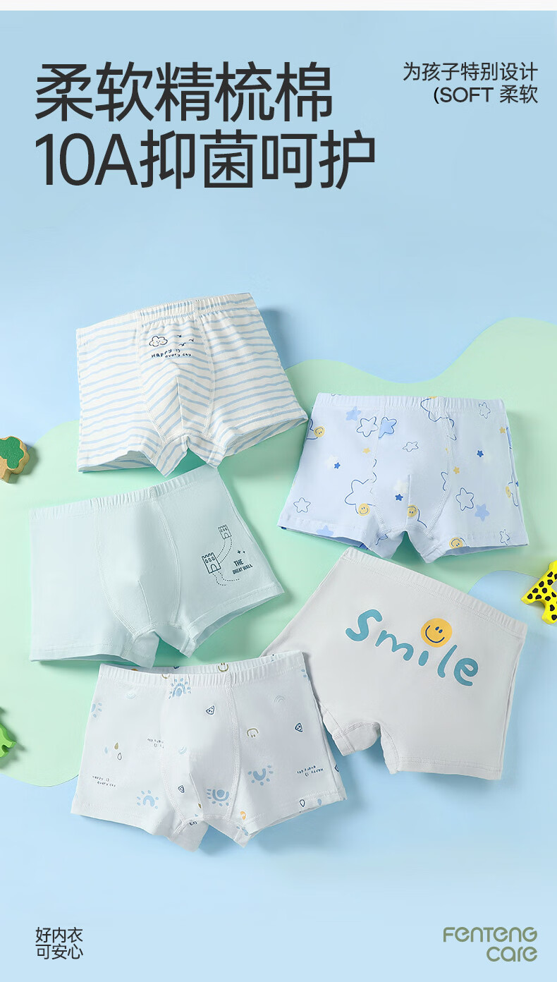 Fenton Ke'an boys' underwear 10A antibacterial combed cotton 5-pack children's pure cotton crotch boxer shorts for older children