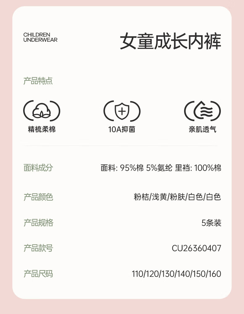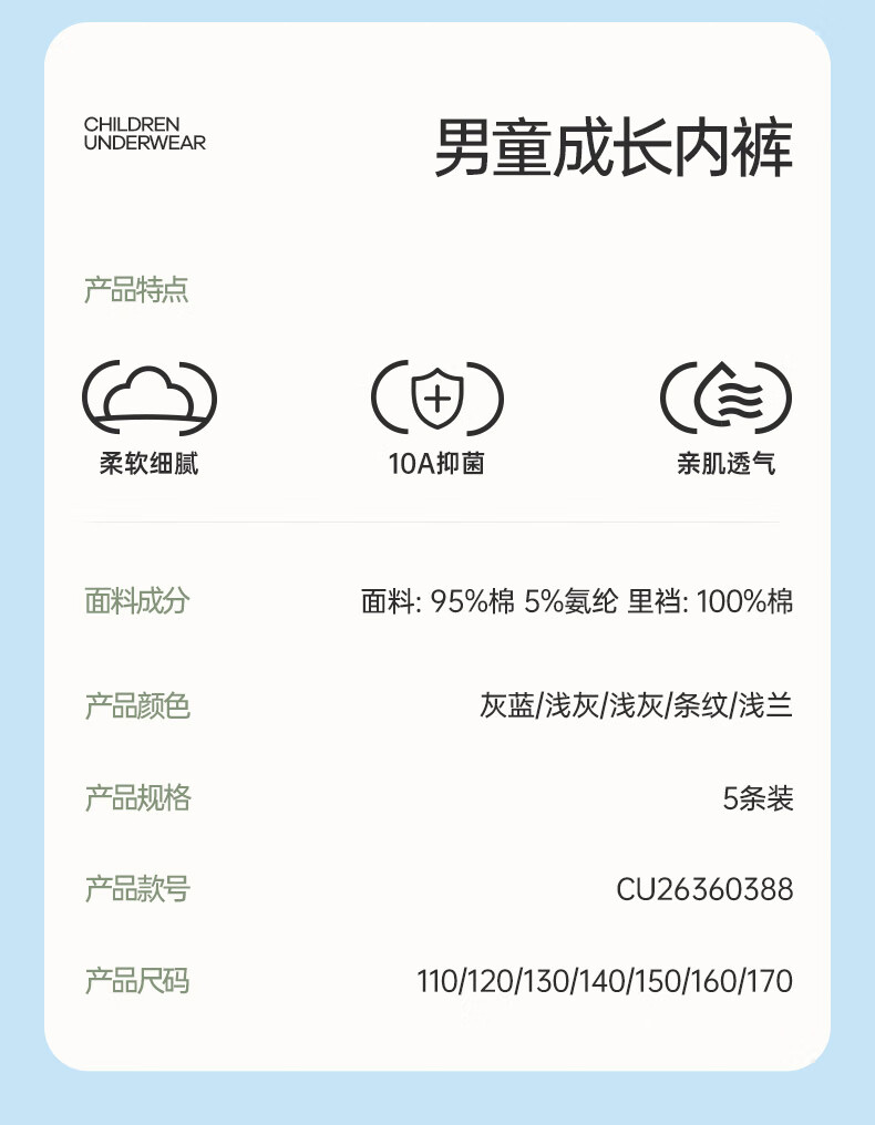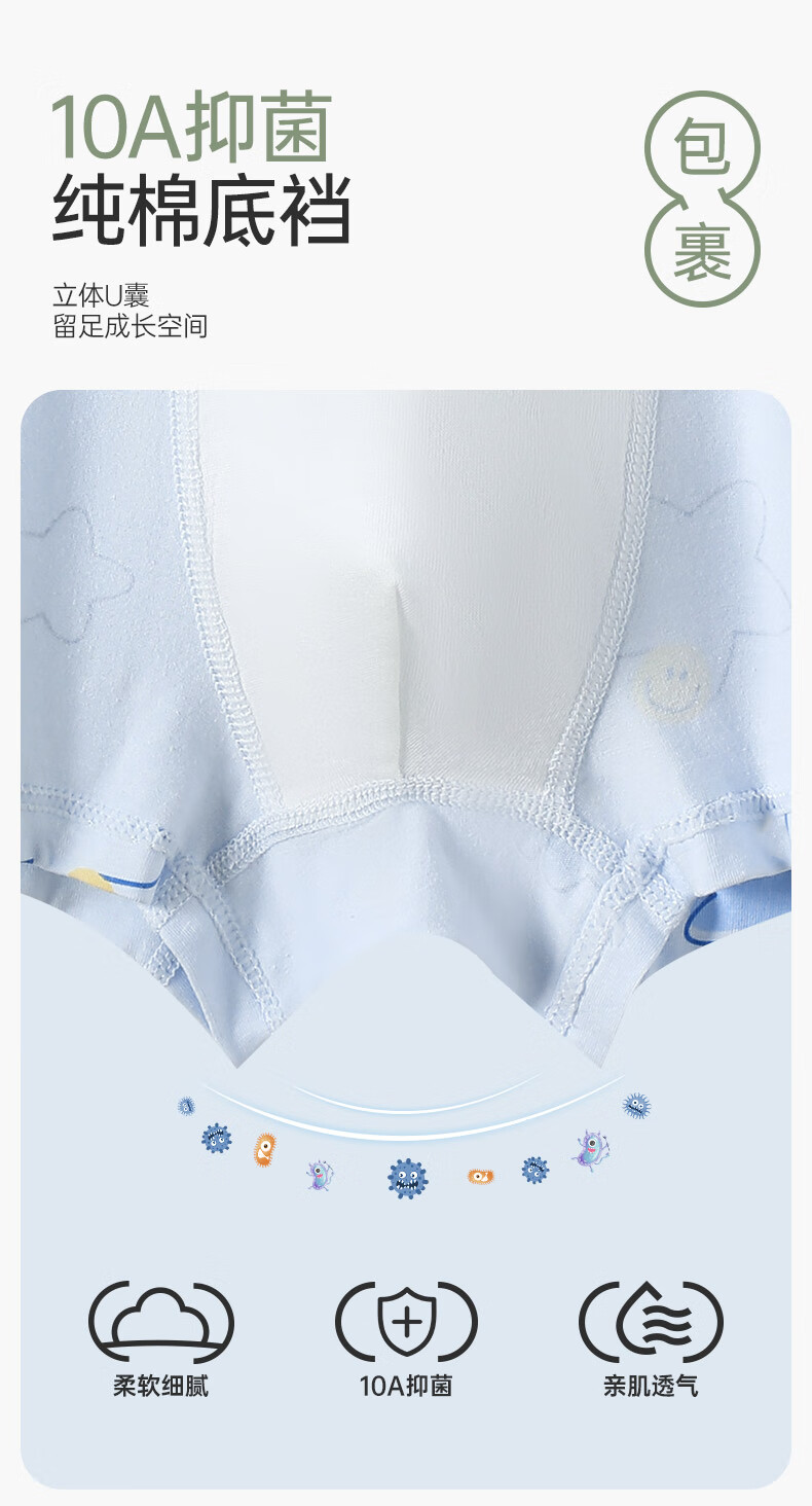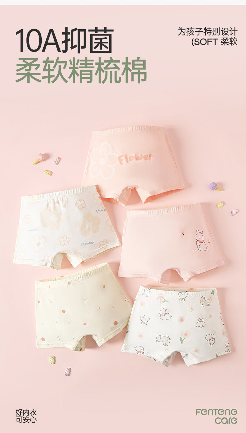 Fenton Ke'an boys' underwear 10A antibacterial combed cotton 5-pack children's pure cotton crotch boxer shorts for older children
