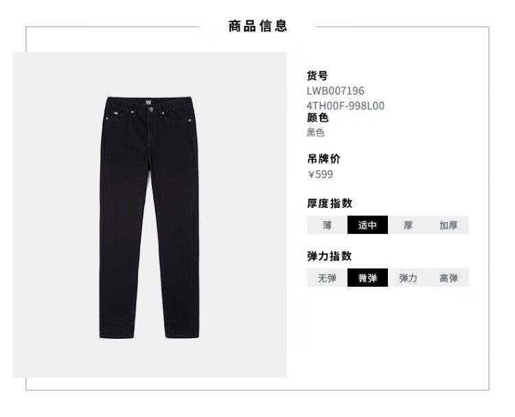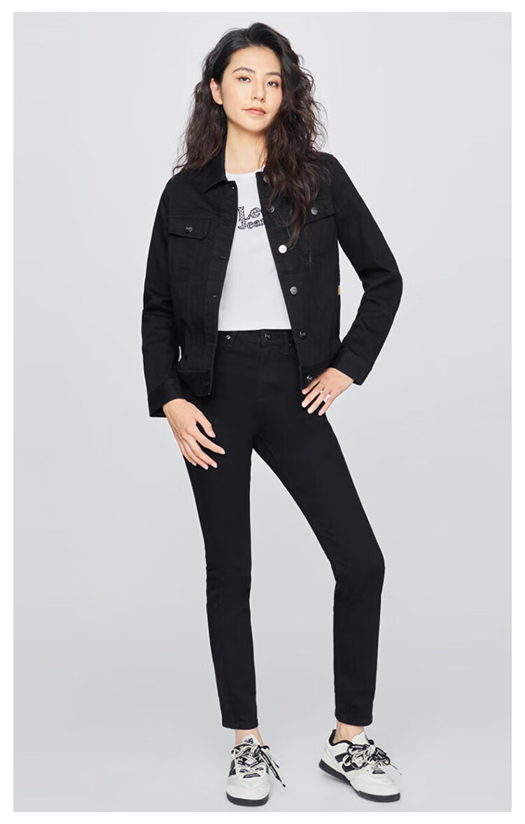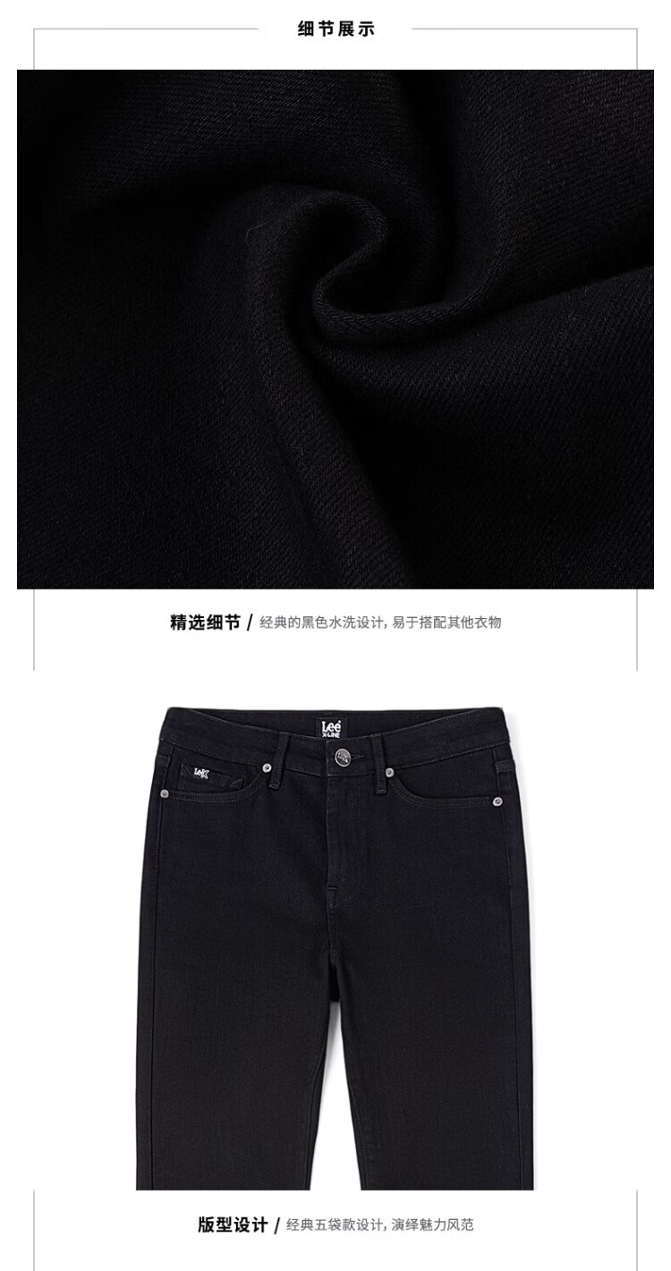 Lee25 autumn and winter new comfortable classic five-pocket high-waisted black women's jeans black 27