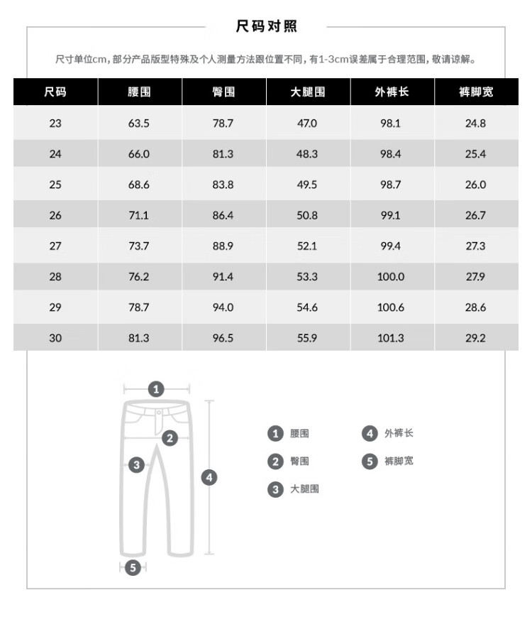 Outseam (cm) 99 cm 101.5 cm 104 cm 106.5 cm 109 cm