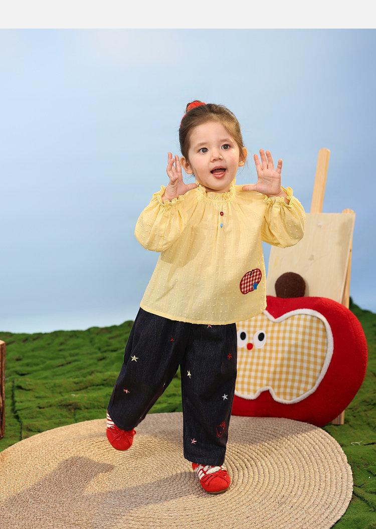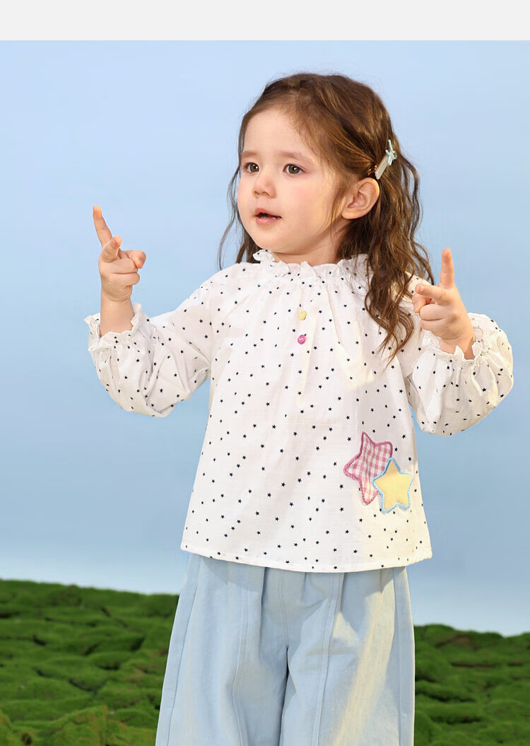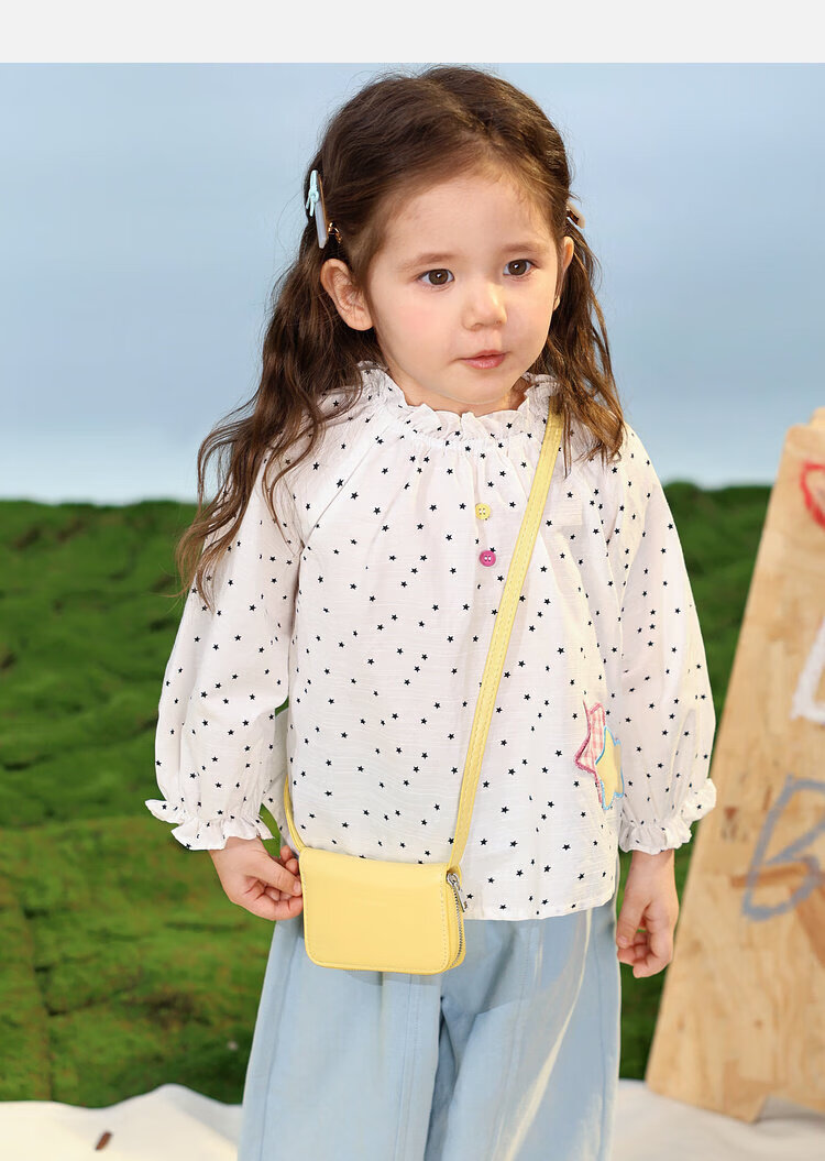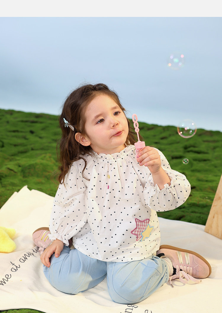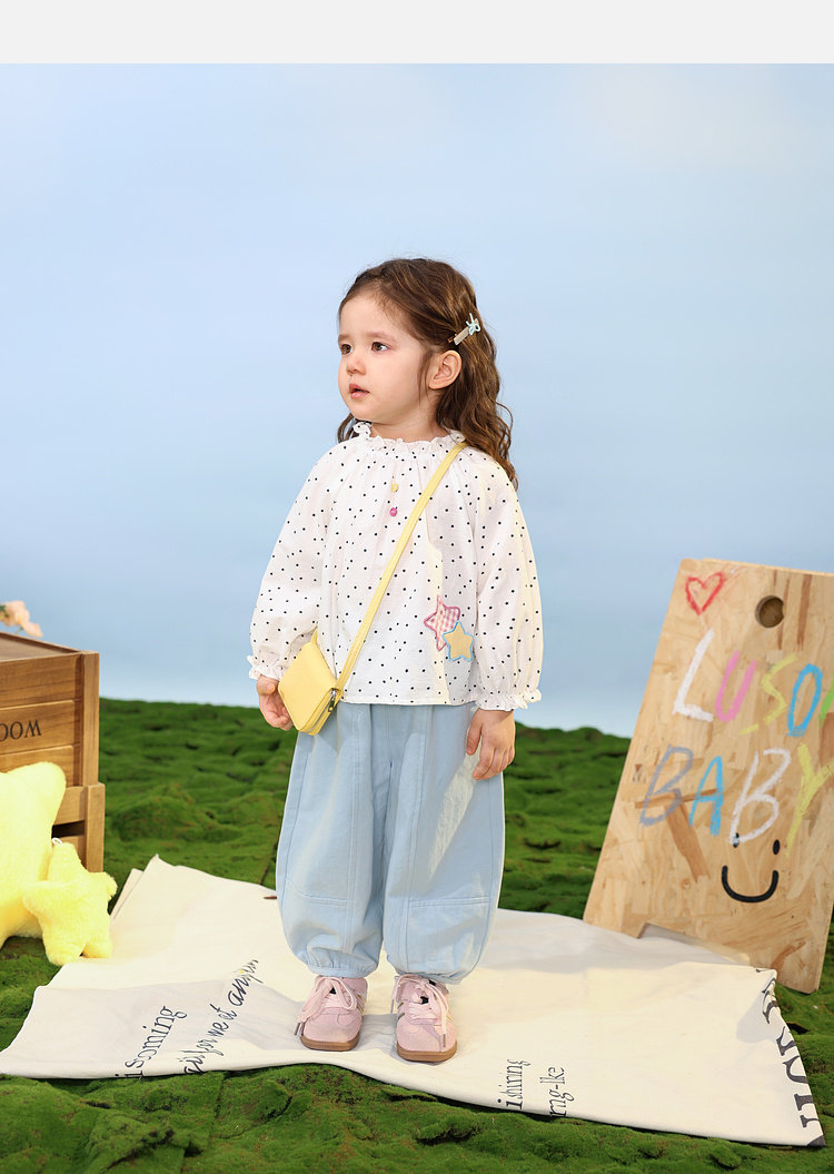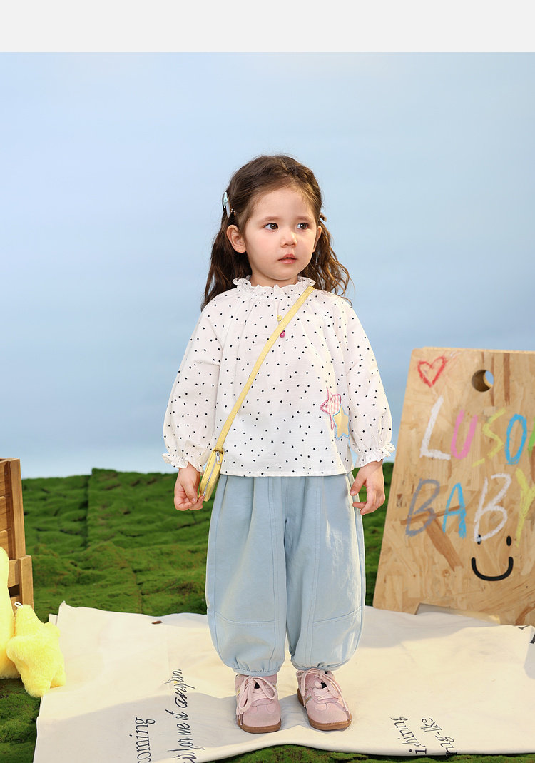 LUSON Baby Girl Baby Girl Shirt Puff Sleeve 2026 Spring New Baby Shirt Baby Shirt Top