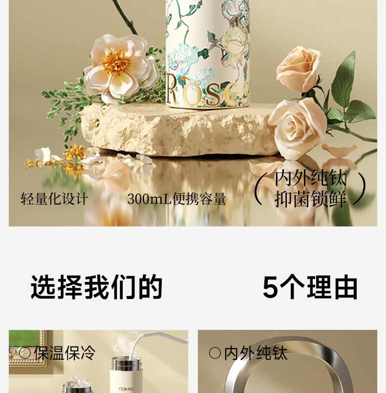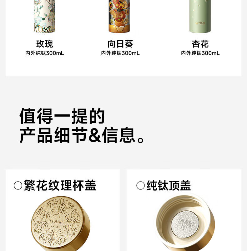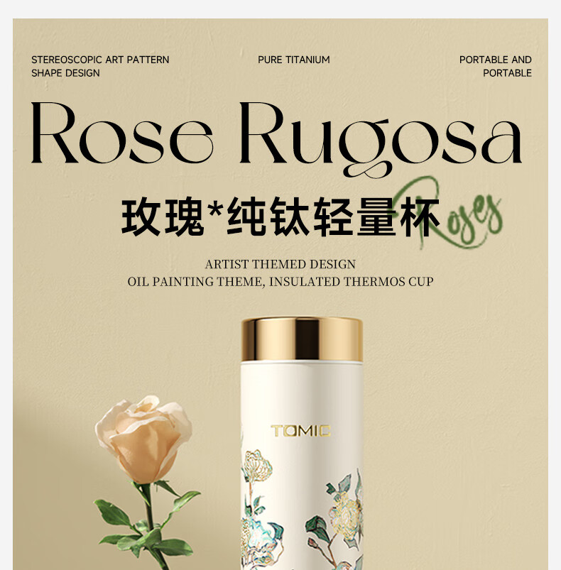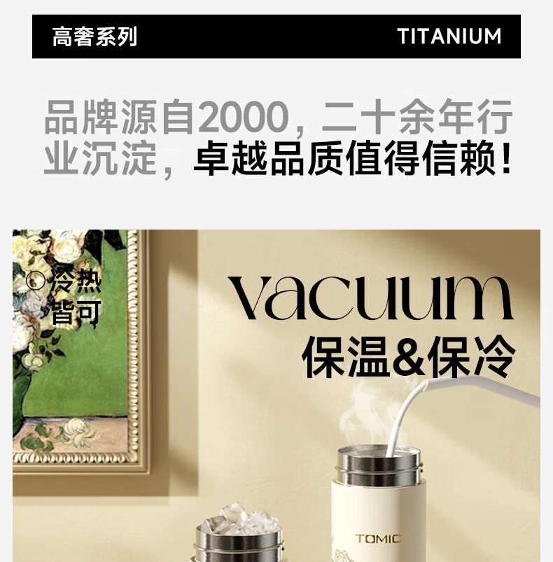 TOMIC thermos cup, pure titanium antibacterial water cup, Van Gogh co-branded, convenient car-mounted pocket cup, birthday gift for girls