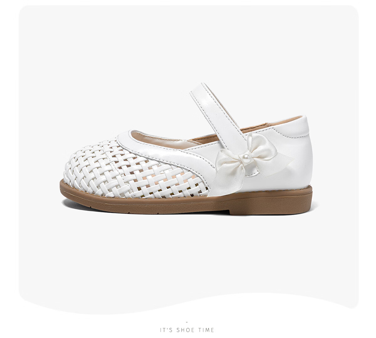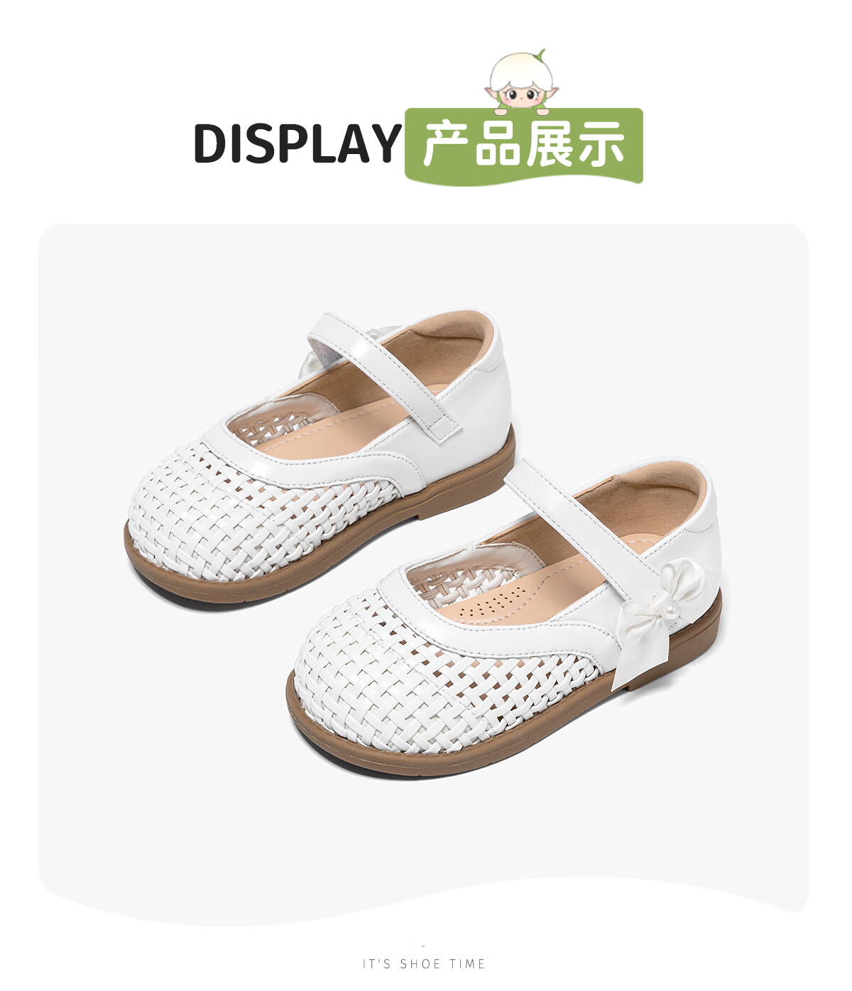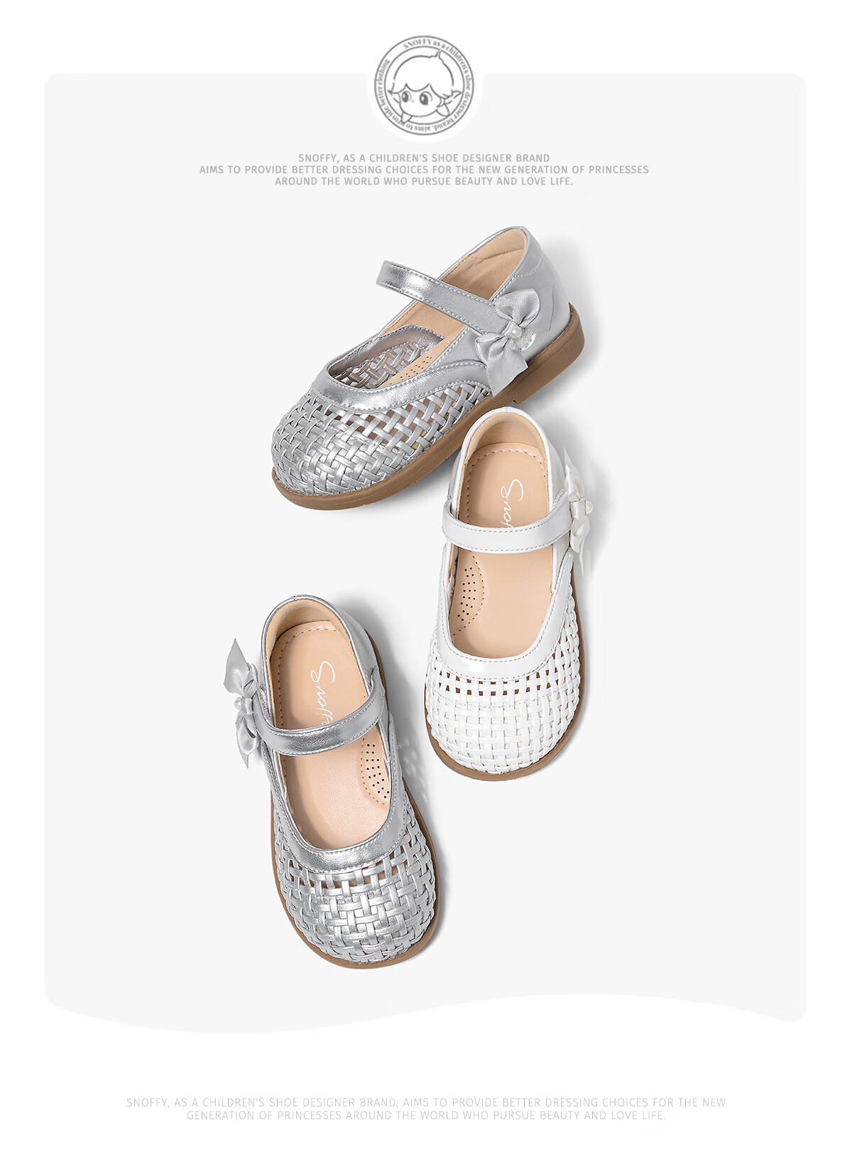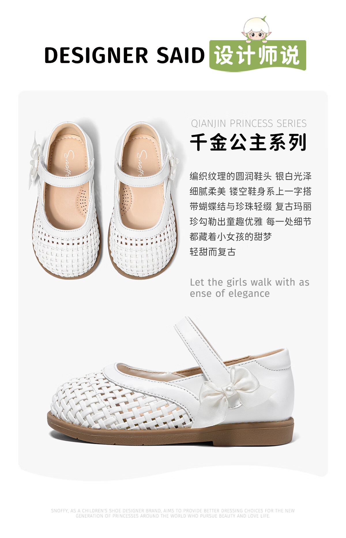 Snuffy children's leather shoes girls princess shoes spring fashion woven breathable leather shoes comfortable casual shoes cream white 24