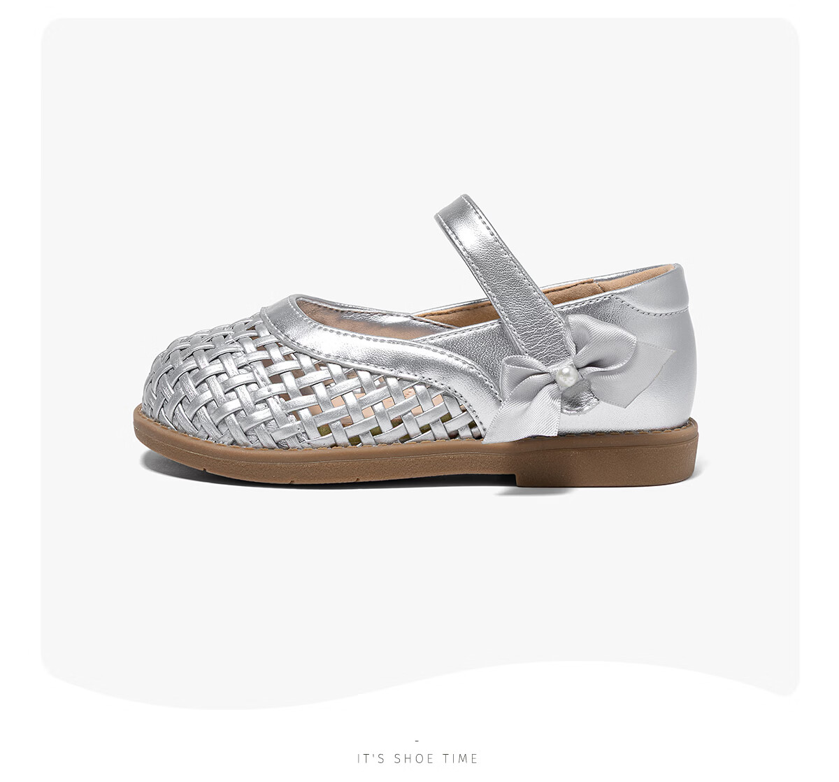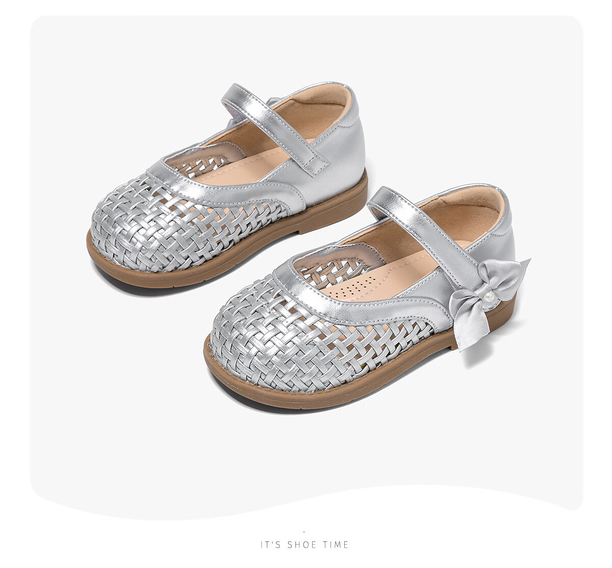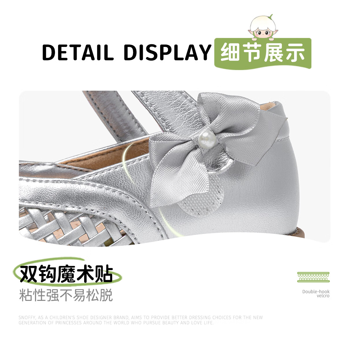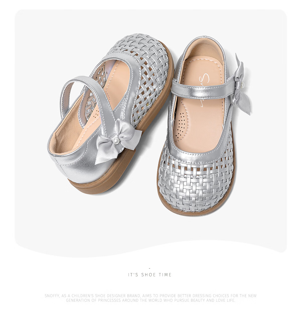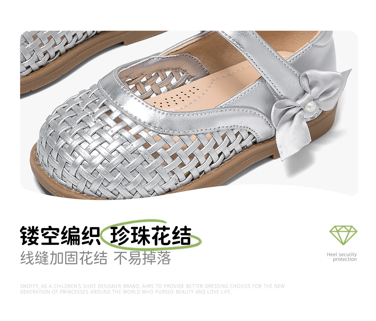 Snuffy children's leather shoes girls princess shoes spring fashion woven breathable leather shoes comfortable casual shoes cream white 24