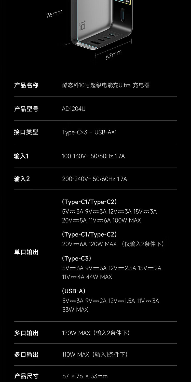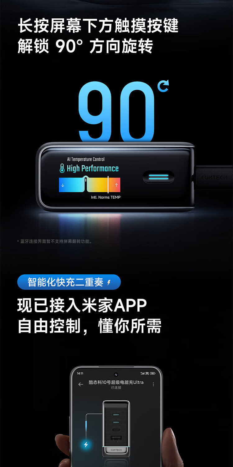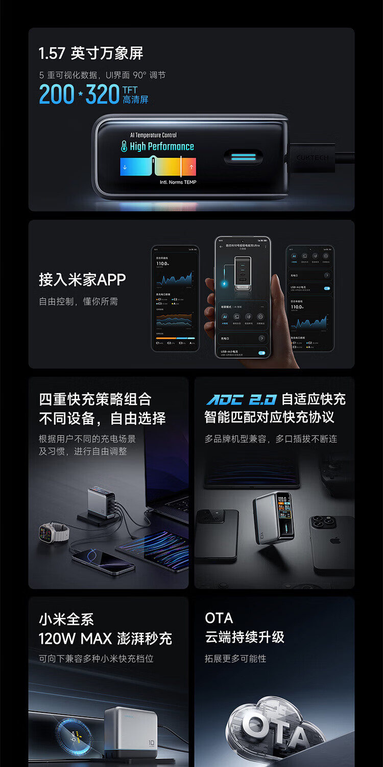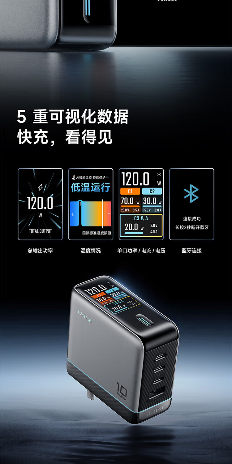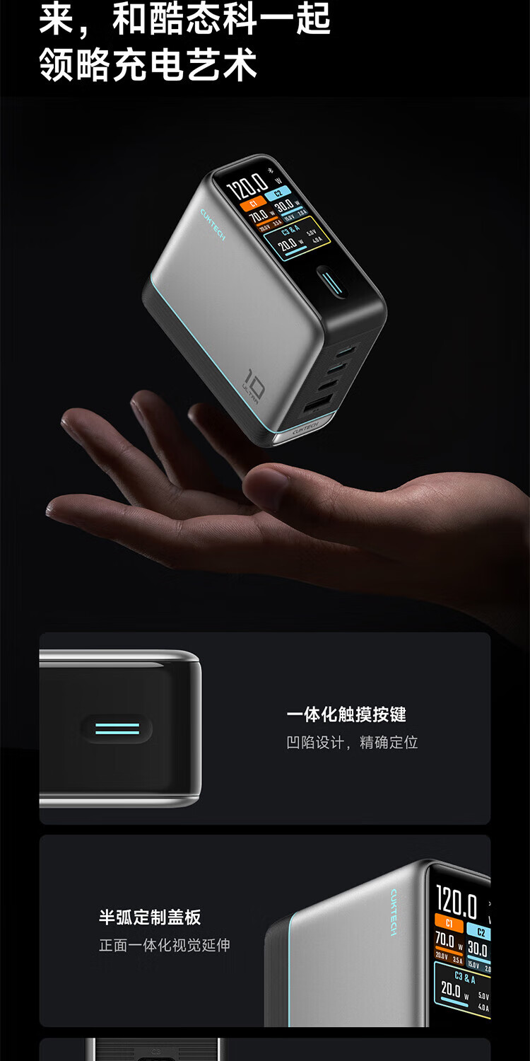 CUKTECH No. 10 super power charging Ultra gallium nitride charger 120W four-port fast charging head connected to Mijia APP compatible with PPS 100W notebook Xiaomi/Apple 17