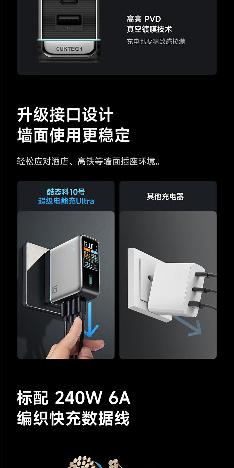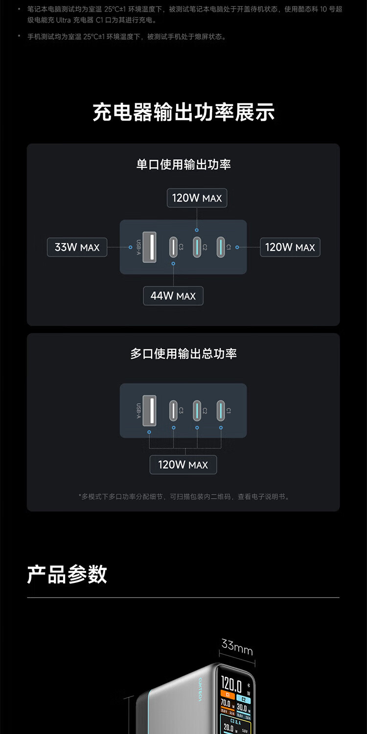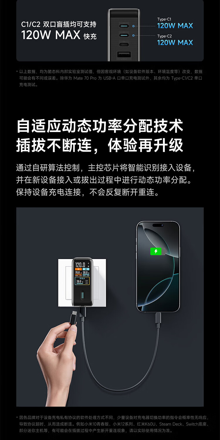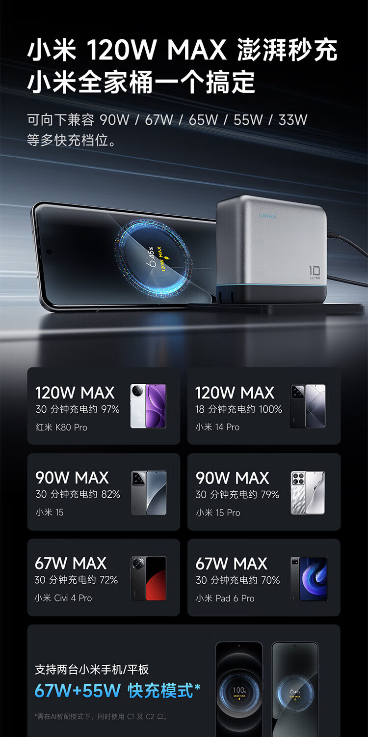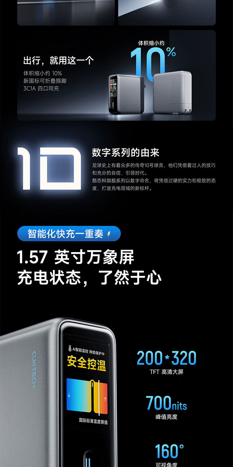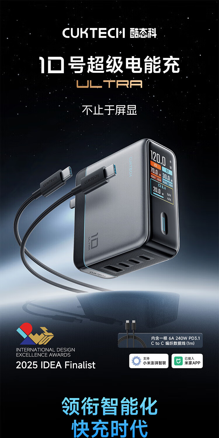 CUKTECH No. 10 super power charging Ultra gallium nitride charger 120W four-port fast charging head connected to Mijia APP compatible with PPS 100W notebook Xiaomi/Apple 17