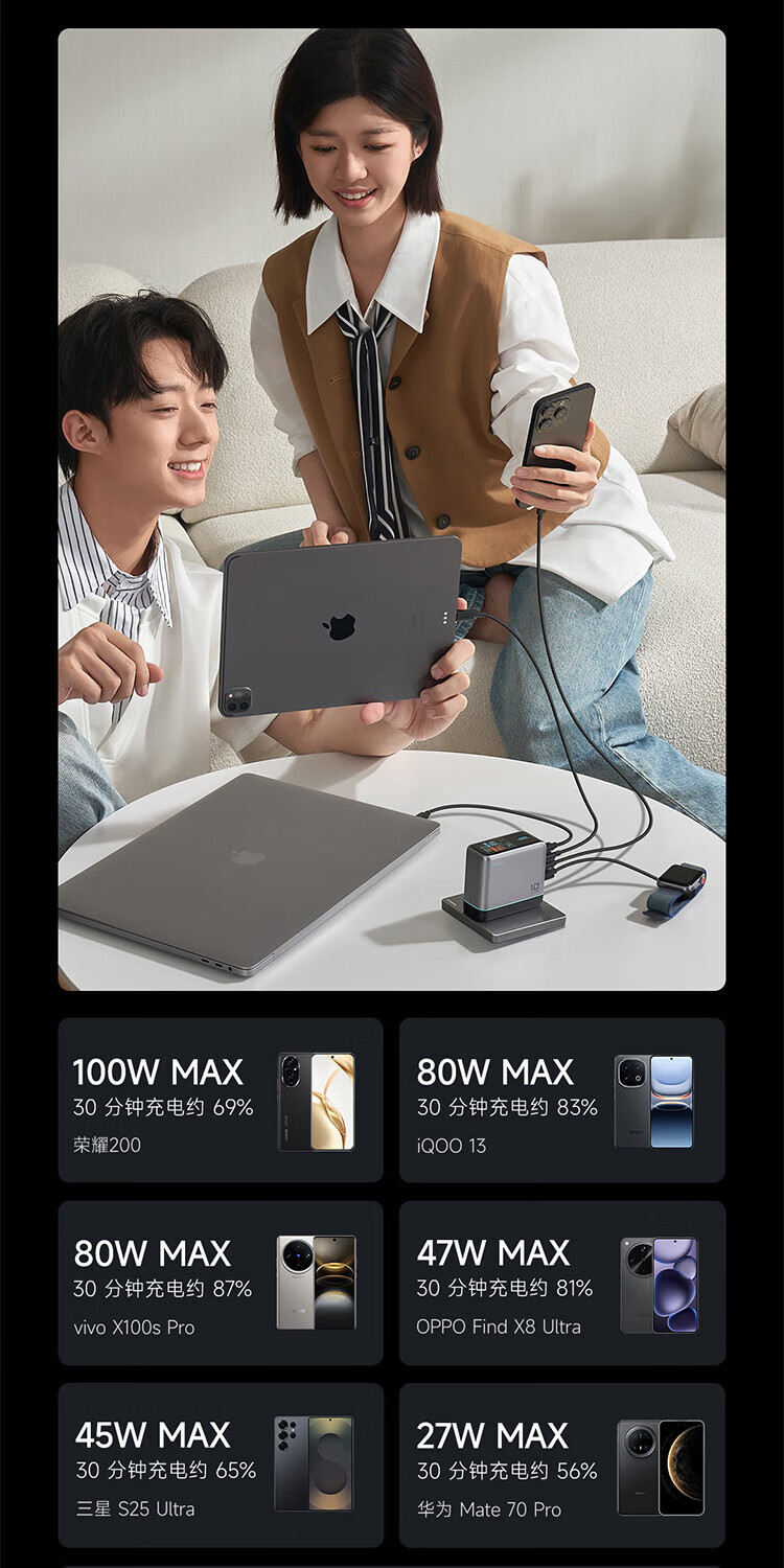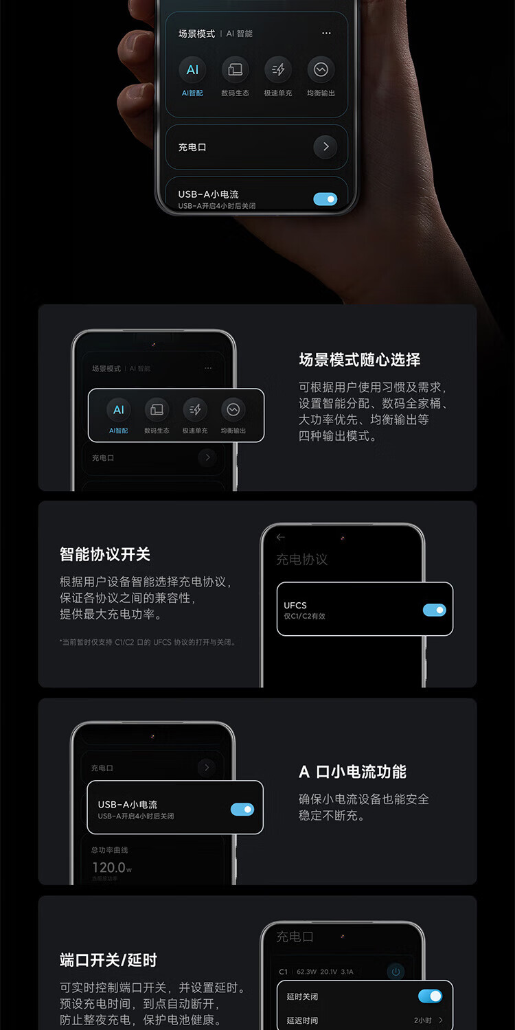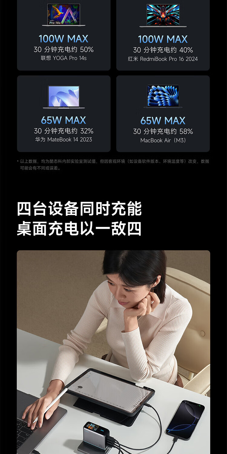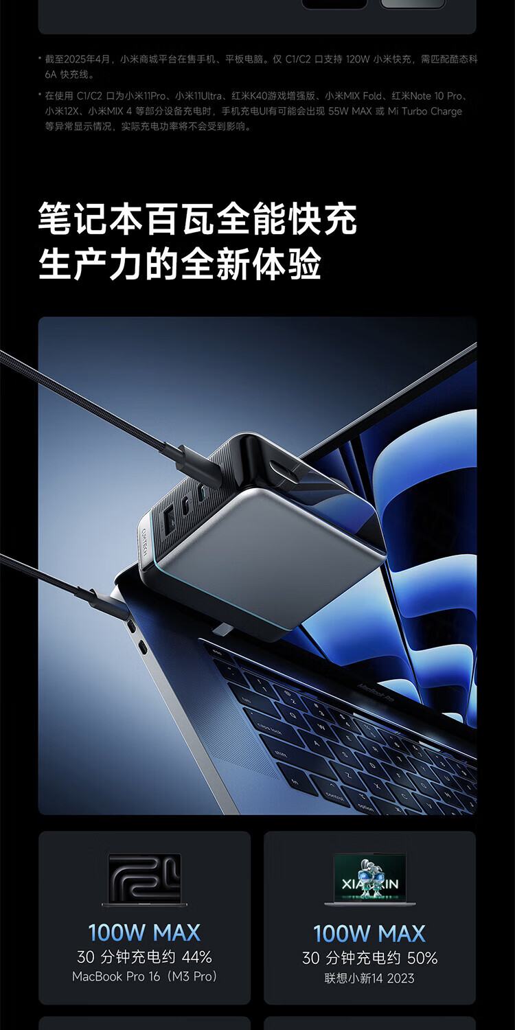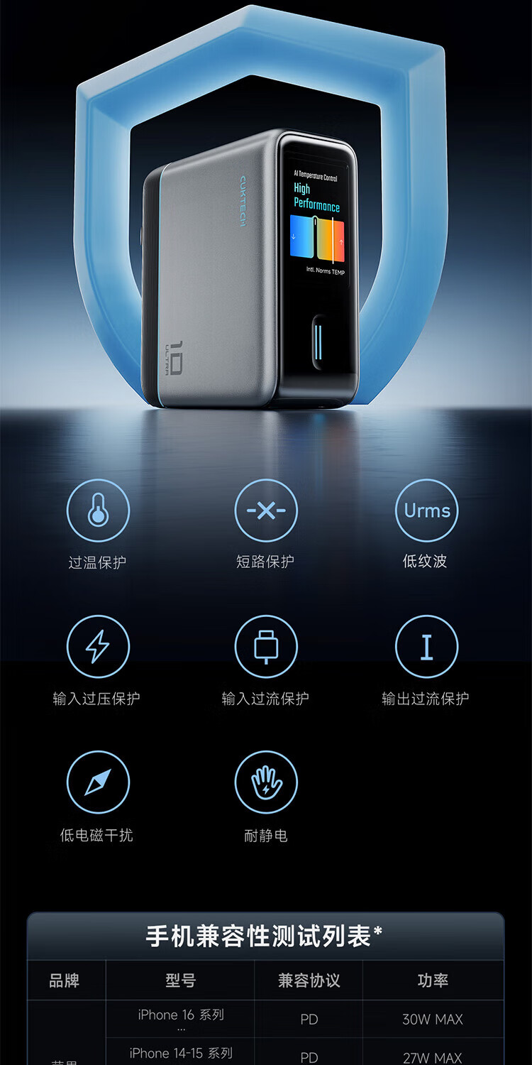 CUKTECH No. 10 super power charging Ultra gallium nitride charger 120W four-port fast charging head connected to Mijia APP compatible with PPS 100W notebook Xiaomi/Apple 17