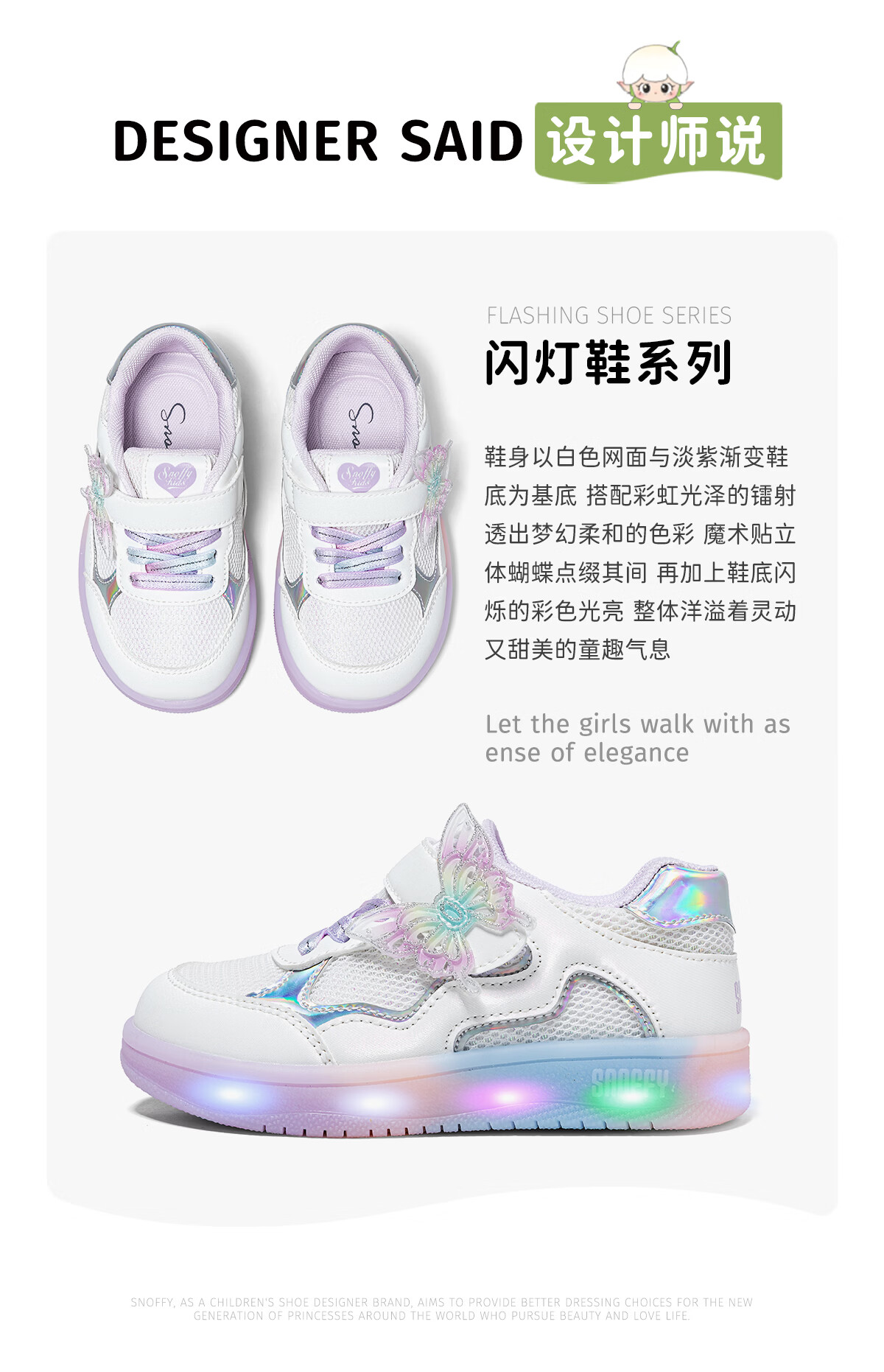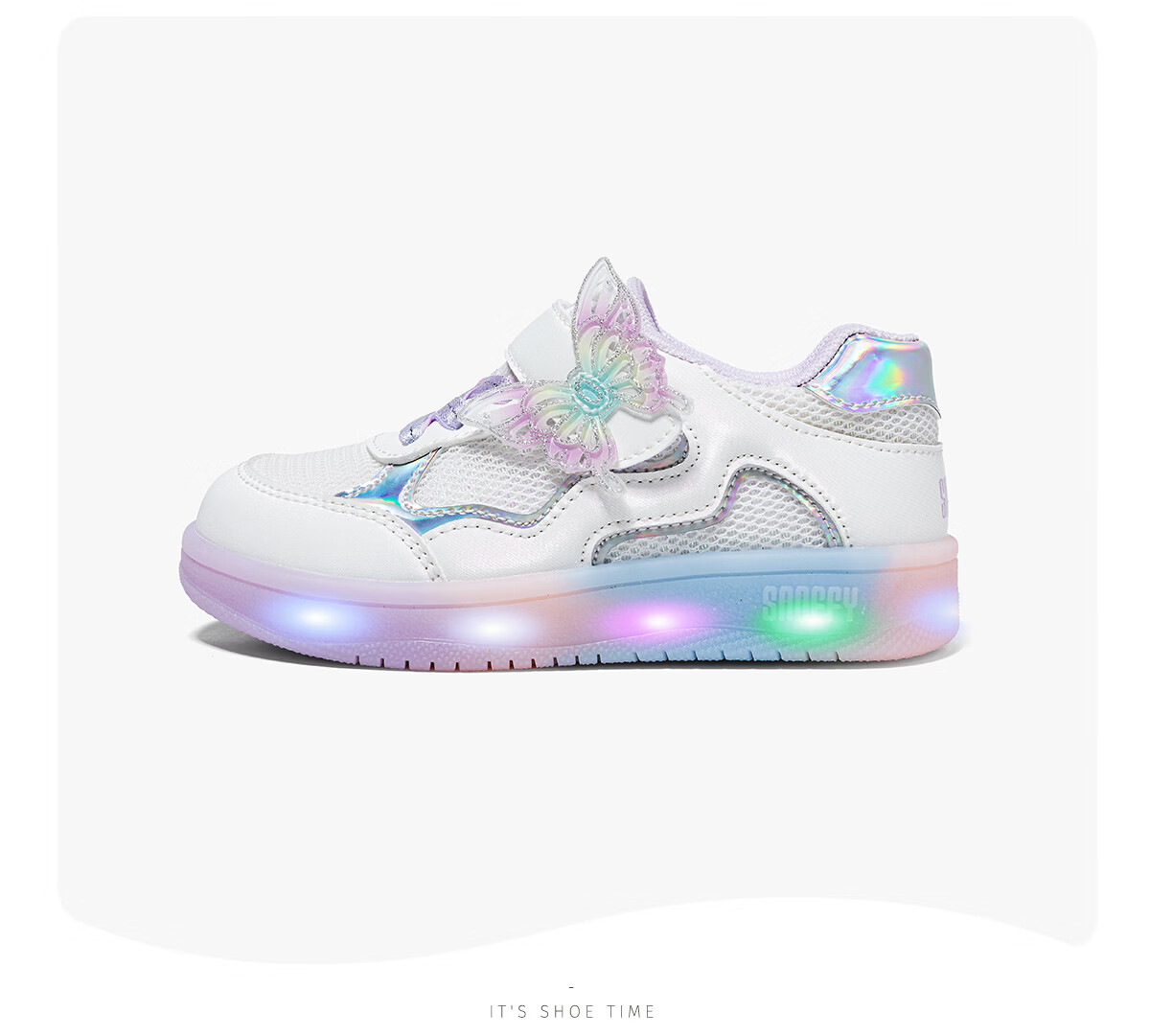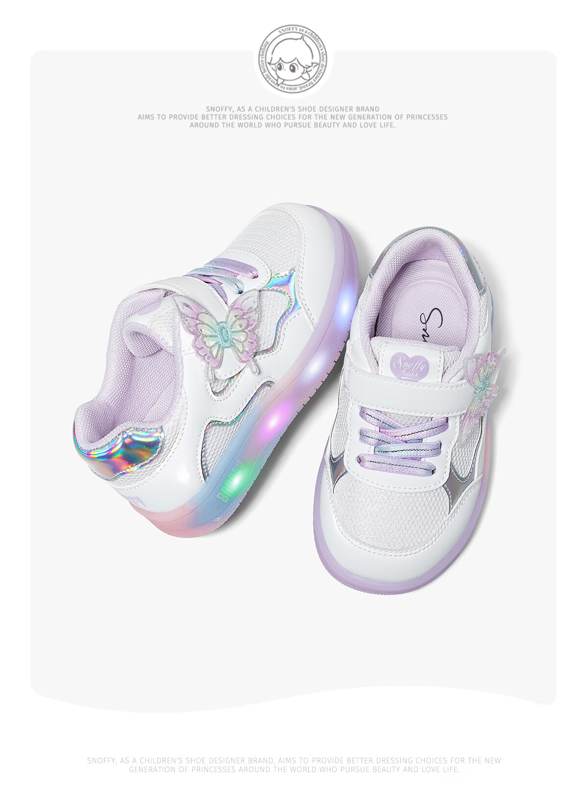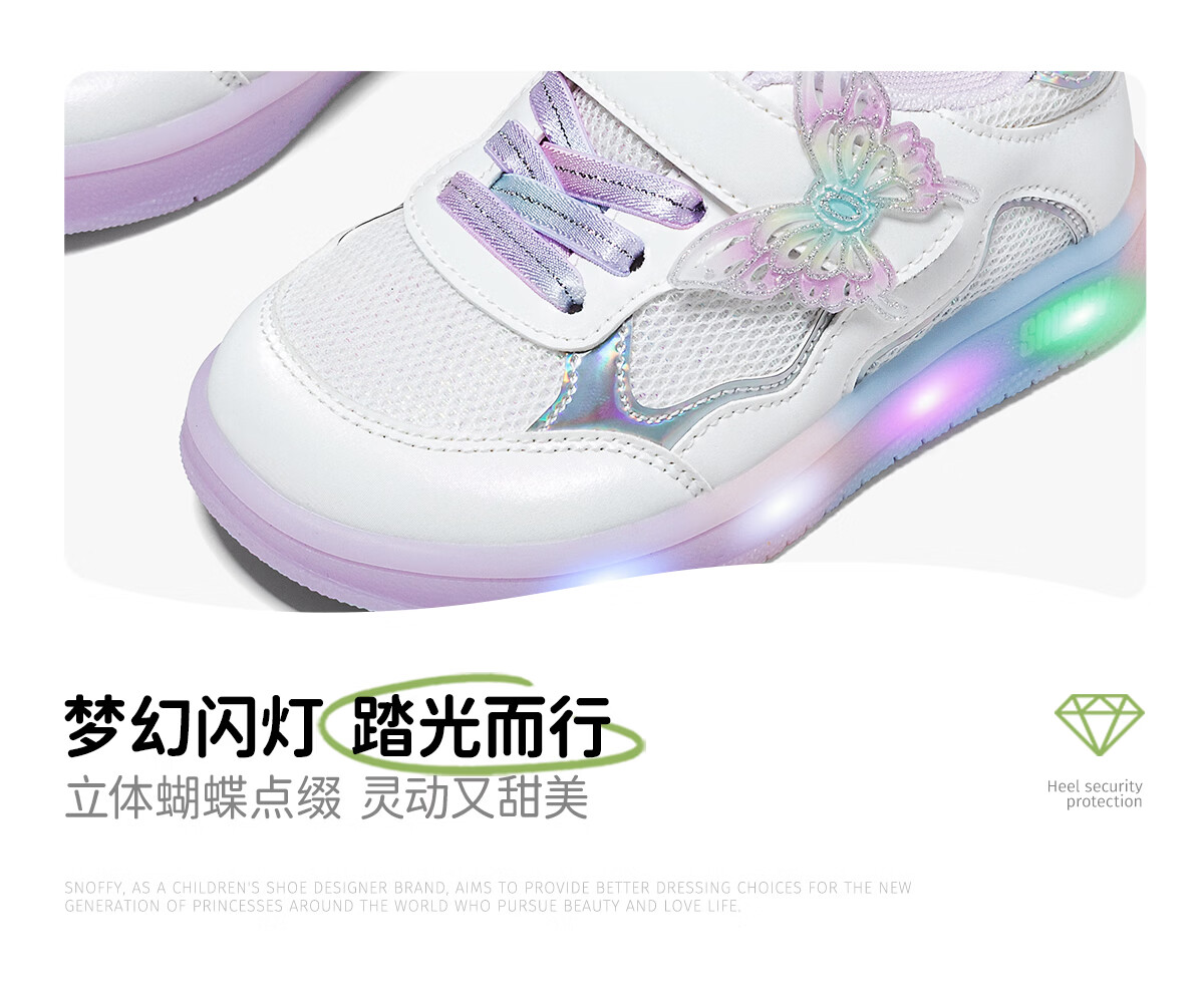 Snafy Flash Shoes Girls' Shoes Bow Children's Casual Shoes Spring Breathable Baby Indoor Shoes White 28