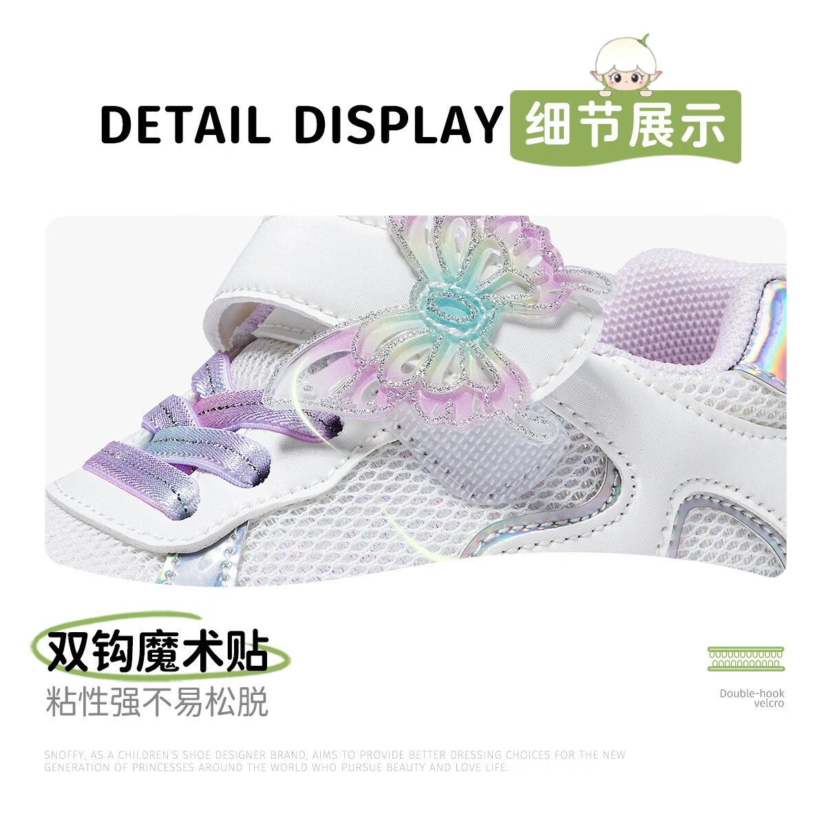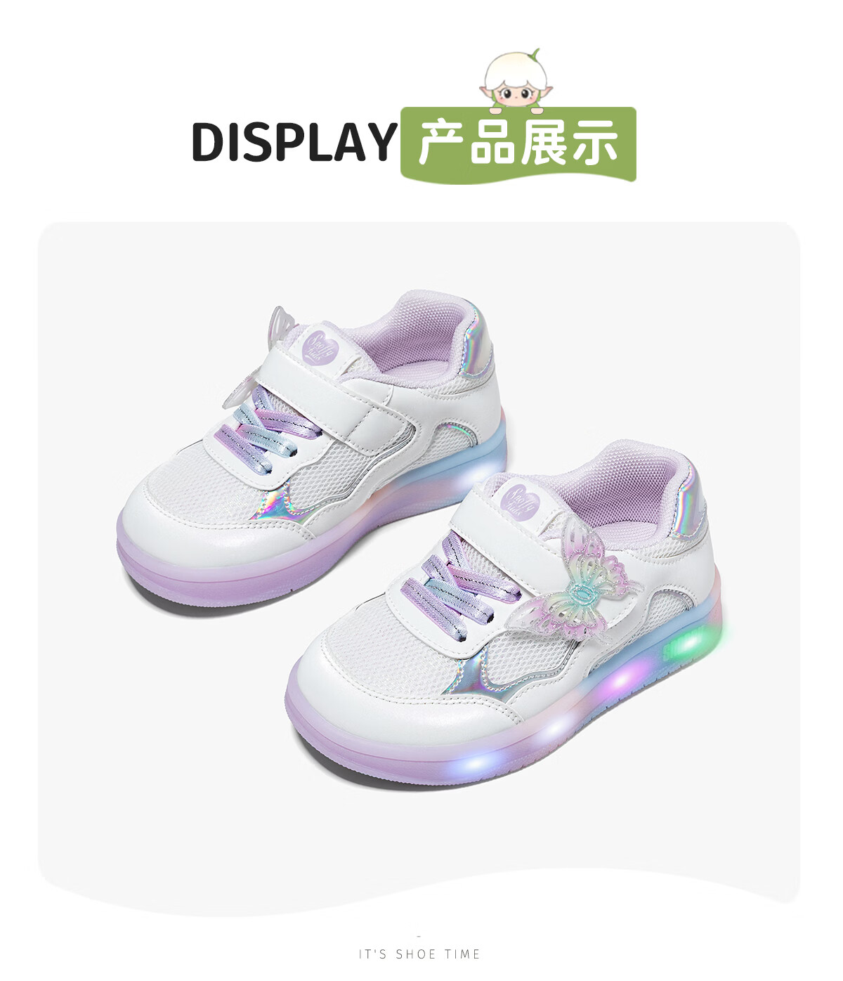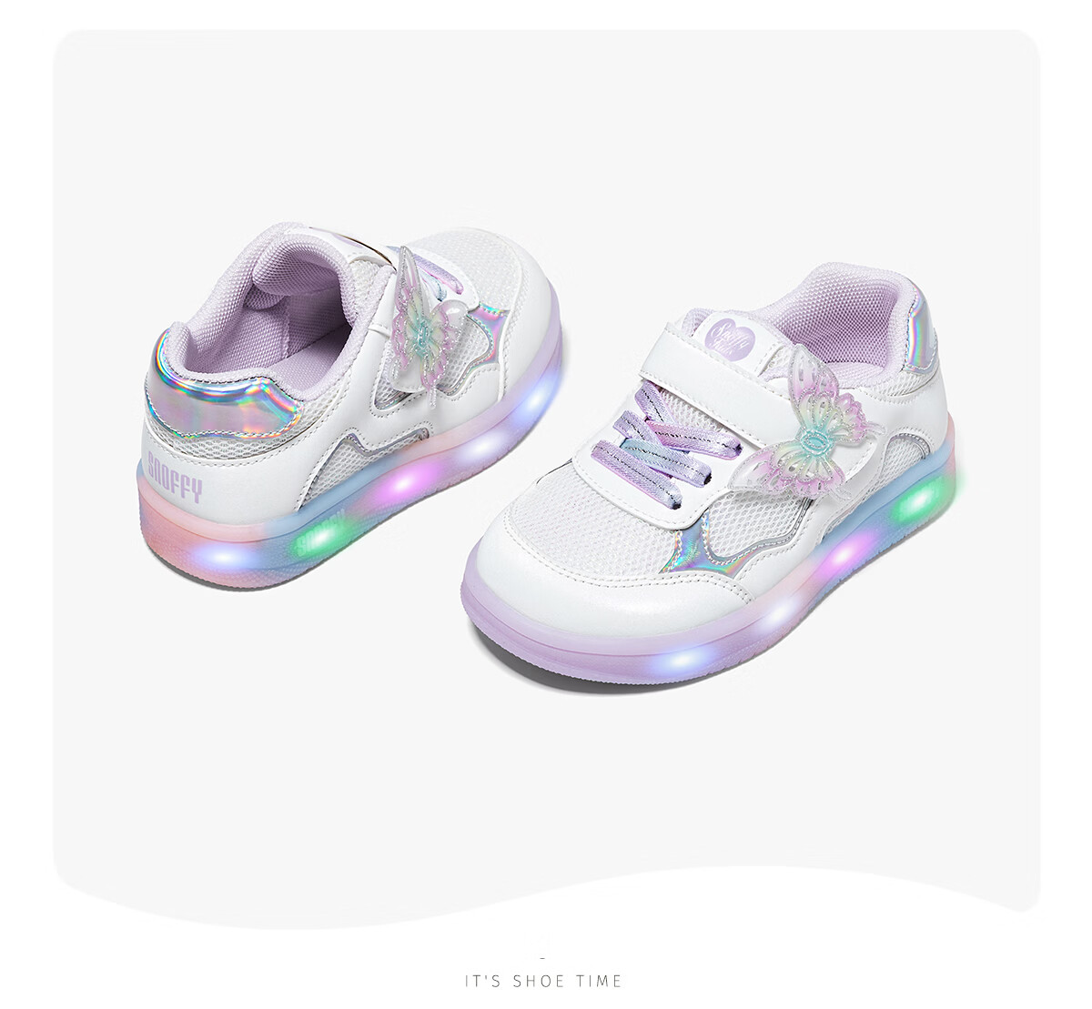 Snafy Flash Shoes Girls' Shoes Bow Children's Casual Shoes Spring Breathable Baby Indoor Shoes White 28