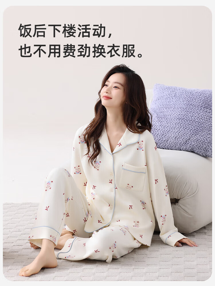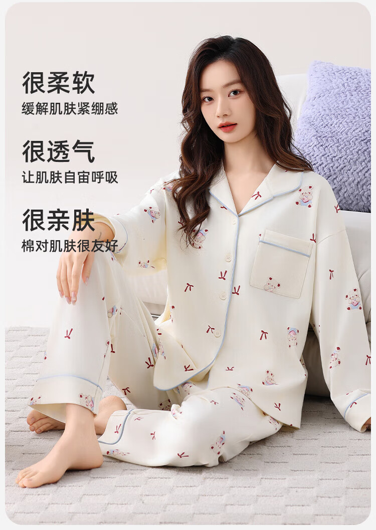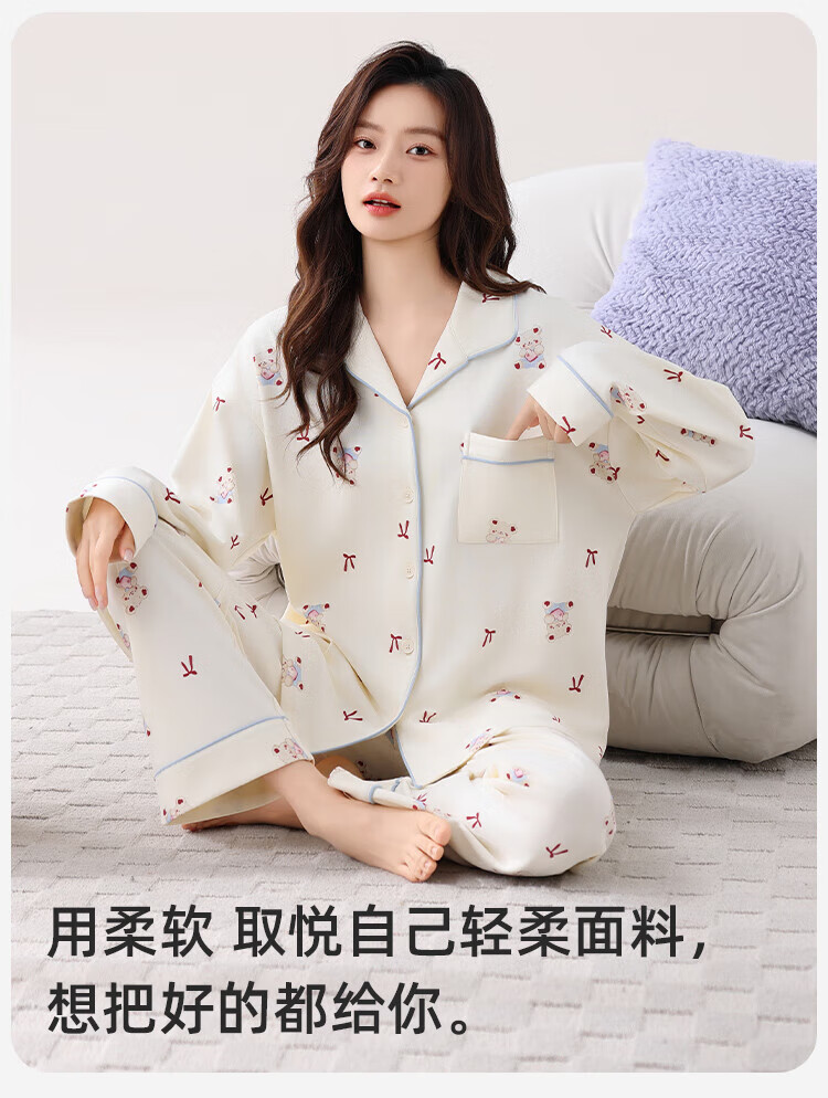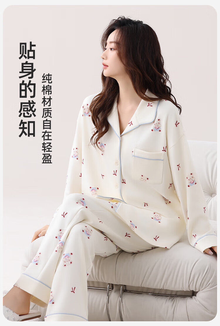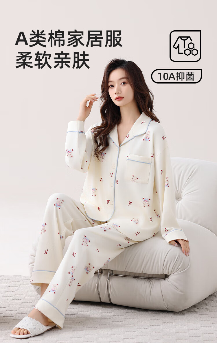 Urban Beauty baby cotton anti-mite and antibacterial 100% cotton women's pajamas women's long-sleeved trousers home clothes can be worn outside L