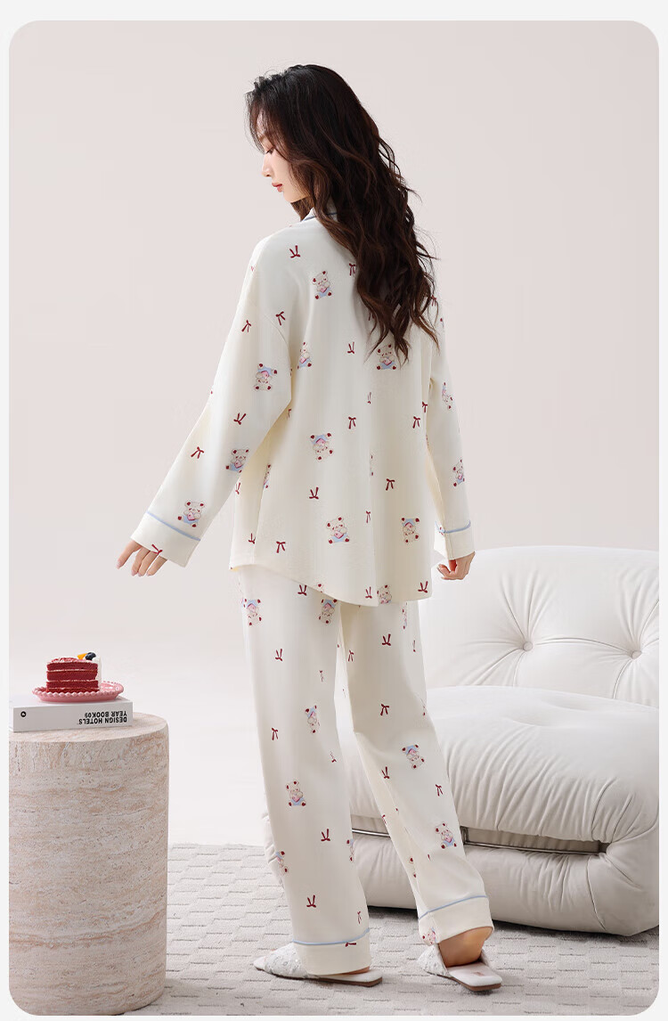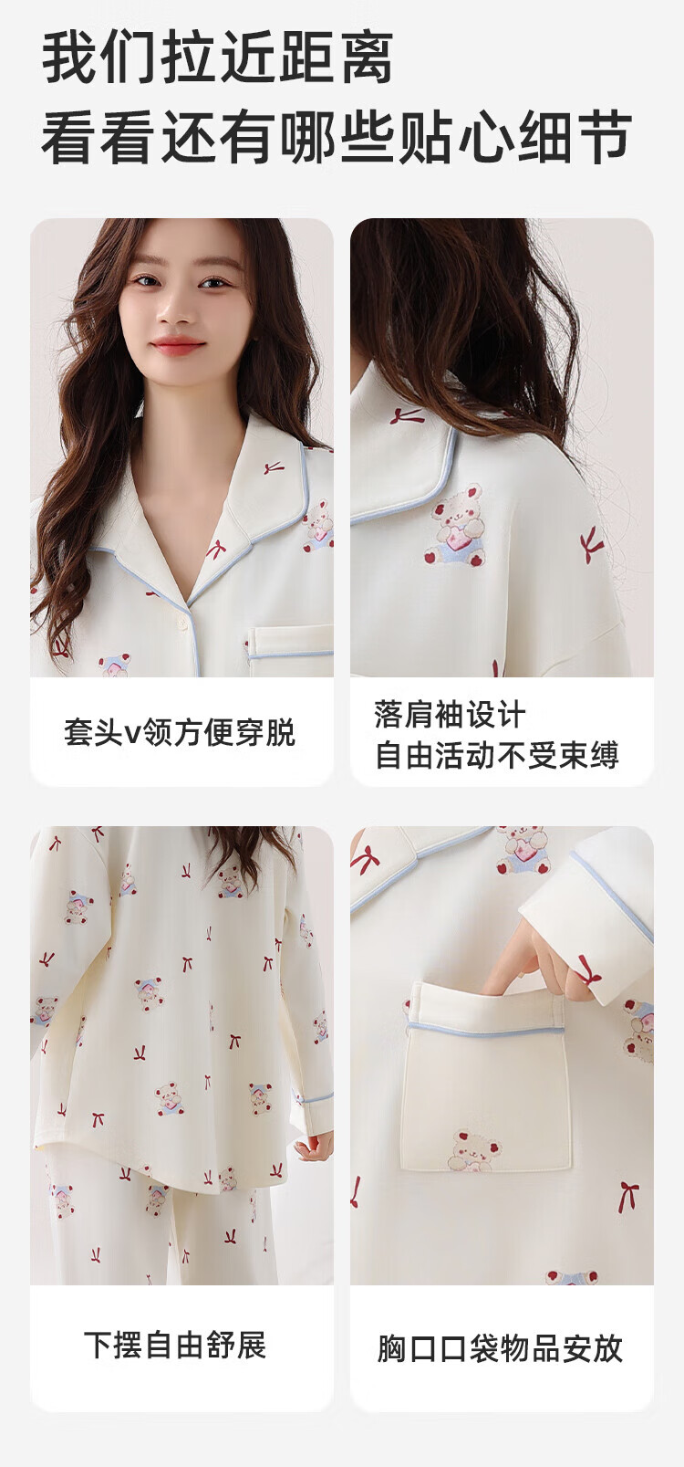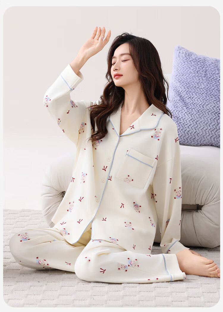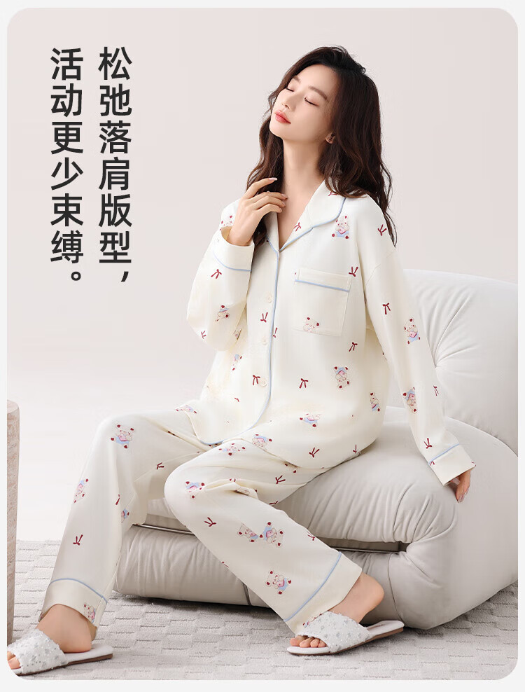 Urban Beauty baby cotton anti-mite and antibacterial 100% cotton women's pajamas women's long-sleeved trousers home clothes can be worn outside L