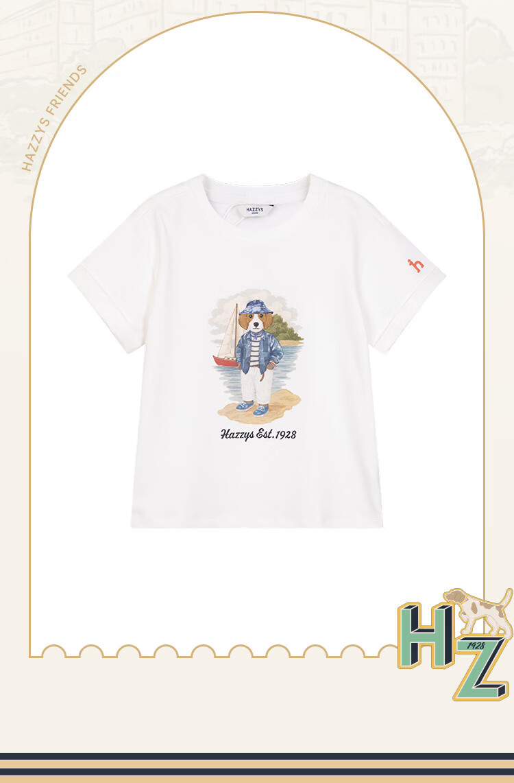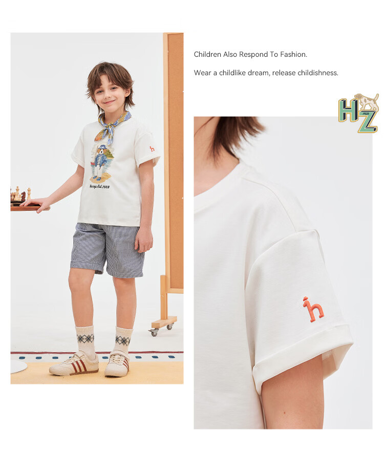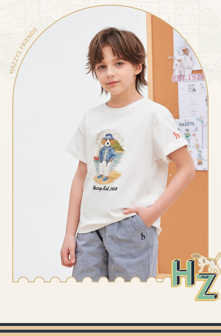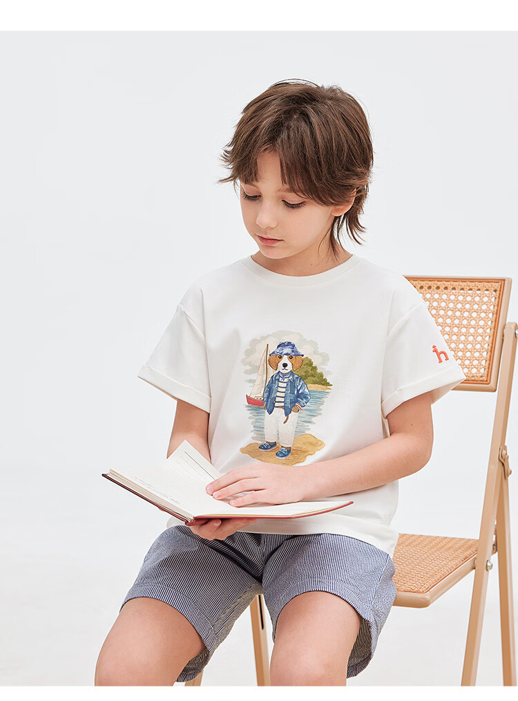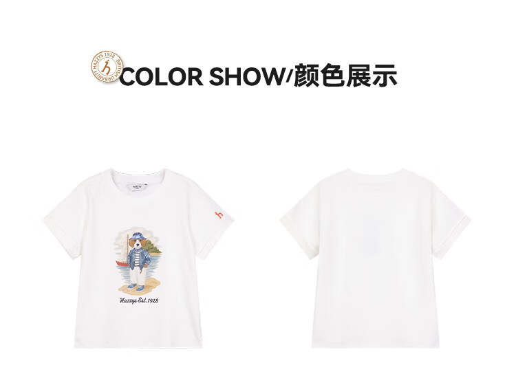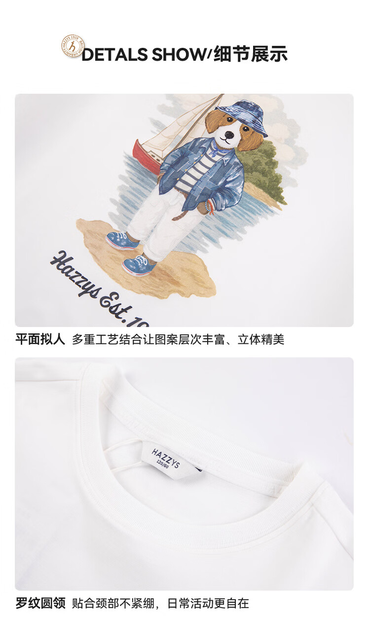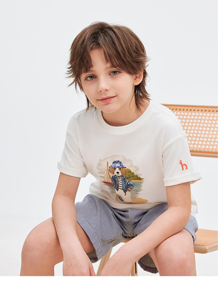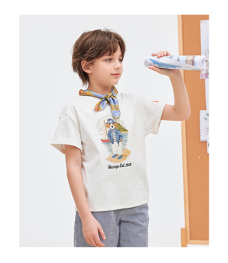 HAZZYS children's clothing boys' short-sleeved 2026 Xiaxin liquid ammonia double-sided fabric college style short-sleeved T-shirt original white 155