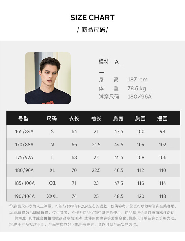 China (cm) 160-165/84-86 165-170 / 88-90 167-172 / 92-96 168-173 / 98-102 170-176 / 106-110