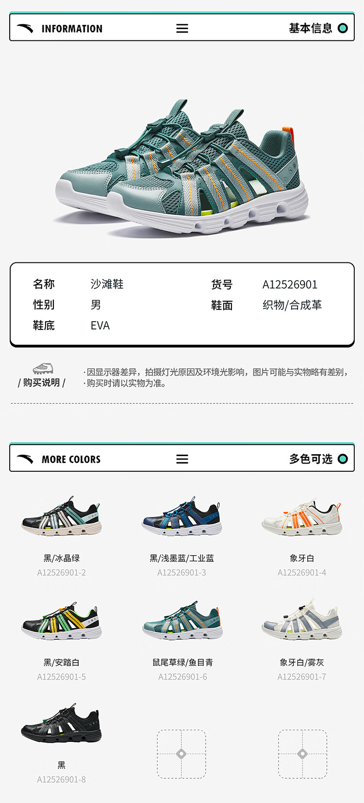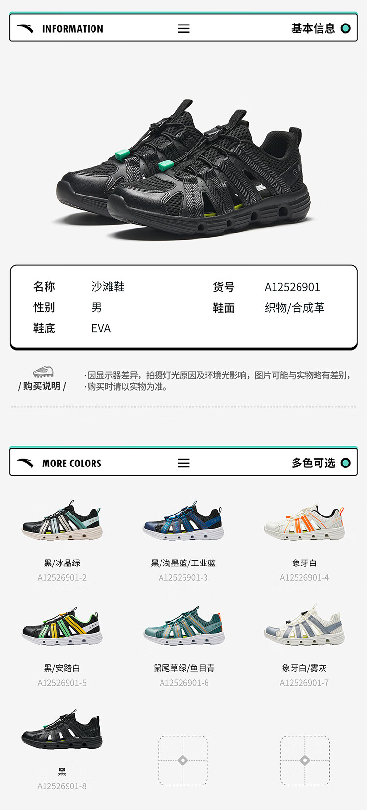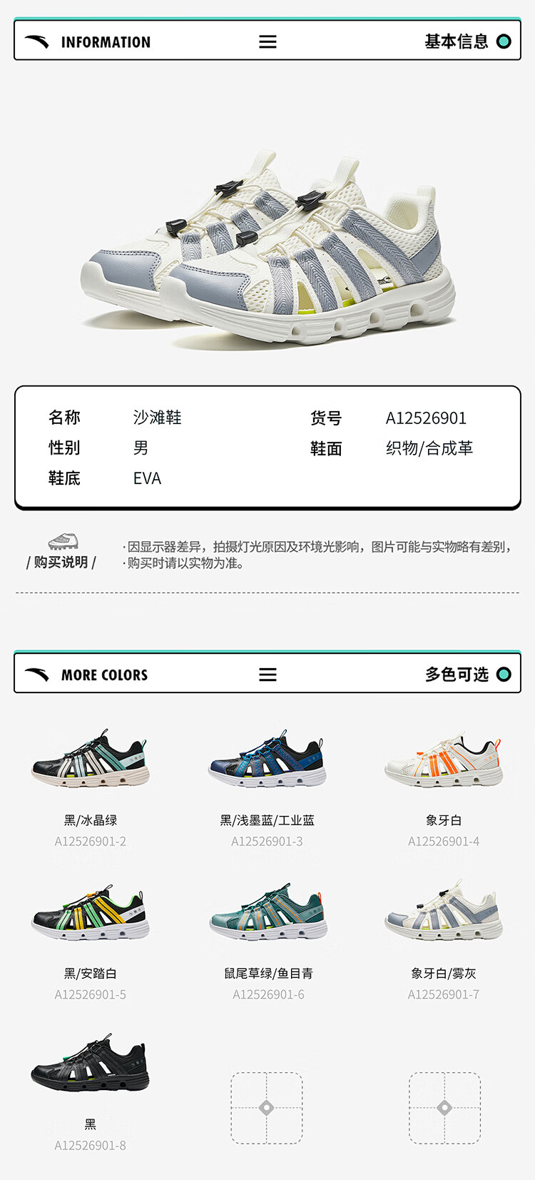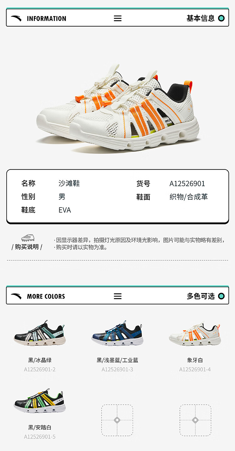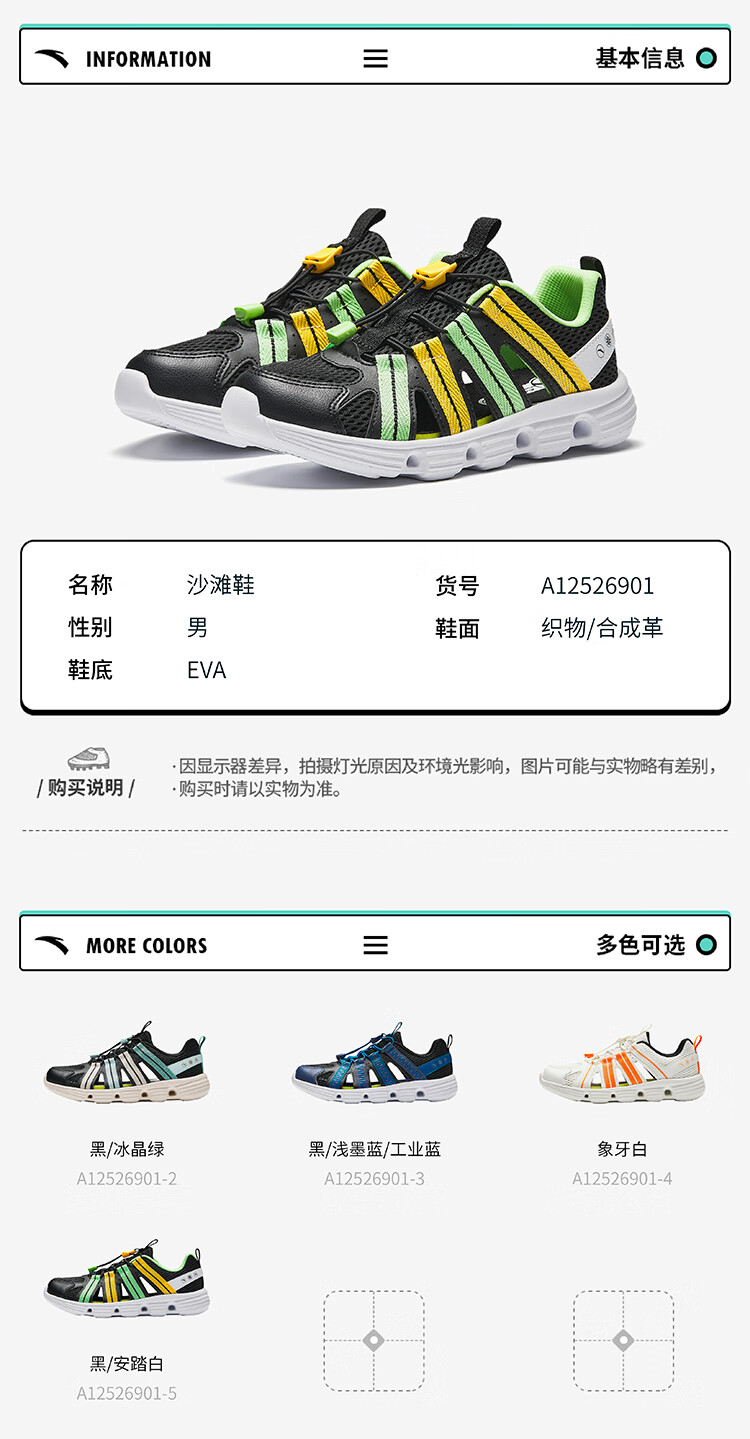 ANTA children's sandals for boys and girls 26 summer breathable slip-on river shoes beach sandals A12626910