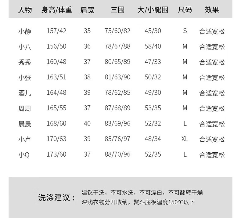 China (cm) 160-165/84-86 165-170 / 88-90 167-172 / 92-96 168-173 / 98-102 170-176 / 106-110