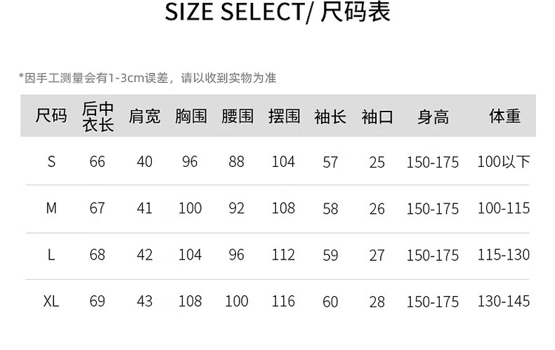 China (cm) 165 / 88-90 170 / 96-98 175 / 108-110 180 / 118-122 185 / 126-130