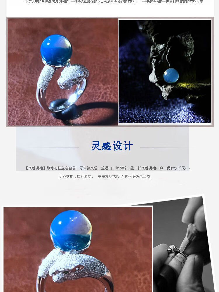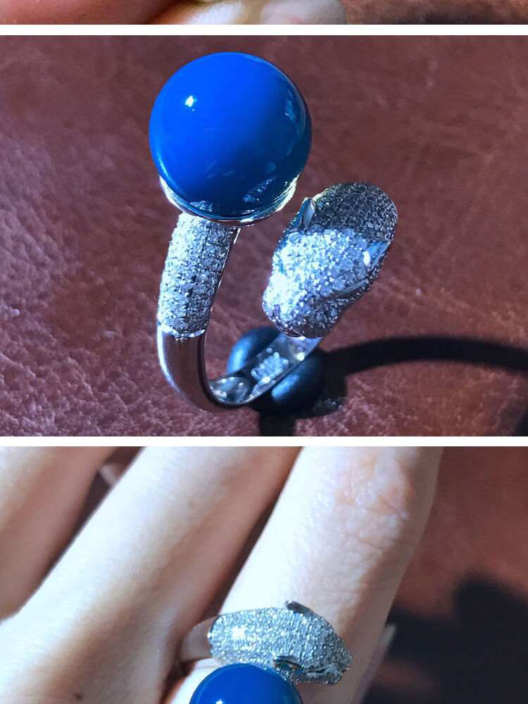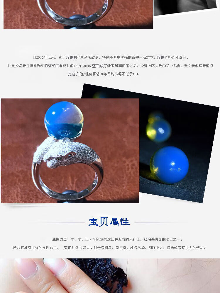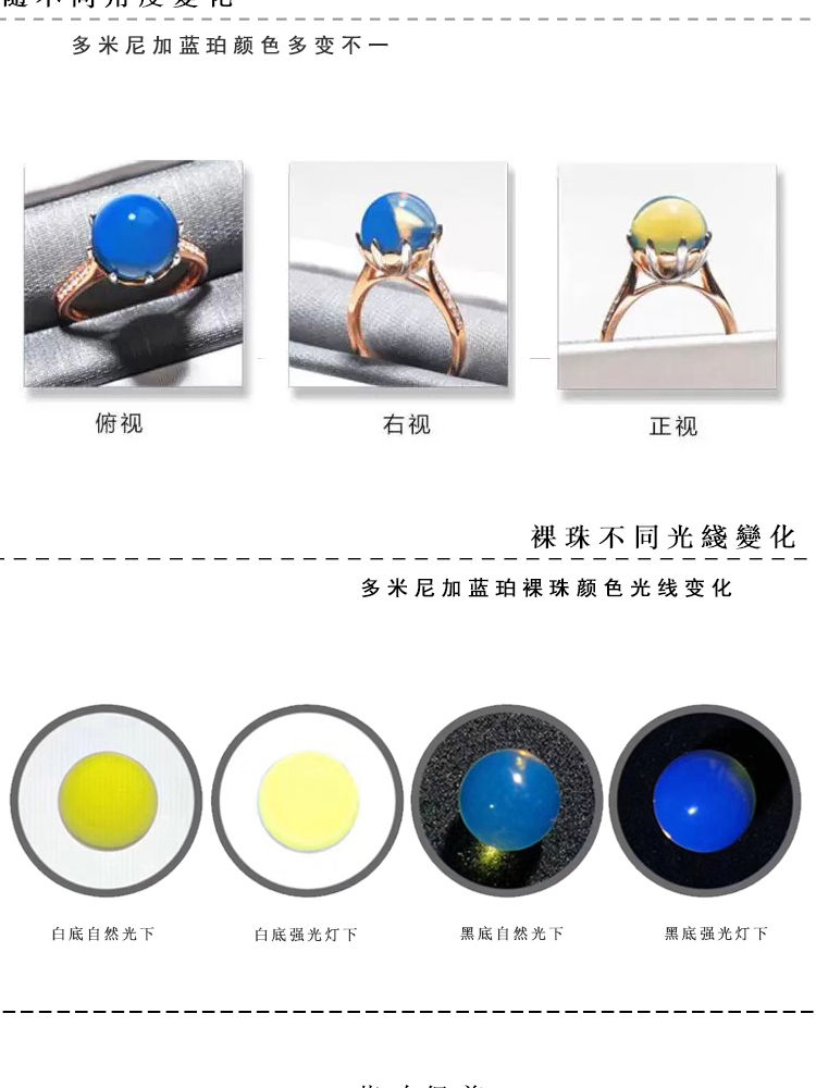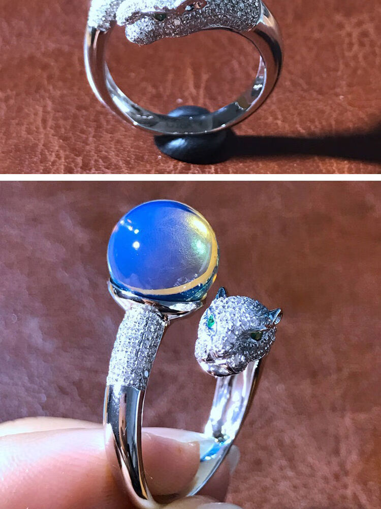 Natural Dominican amber ring S925 silver high blue 3A pure water amber leopard head live ring for women Dominican amber 12mm round beads