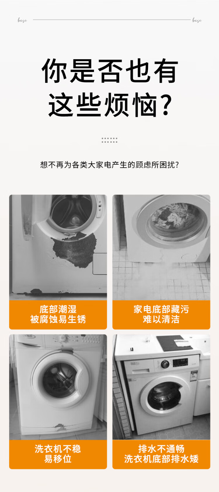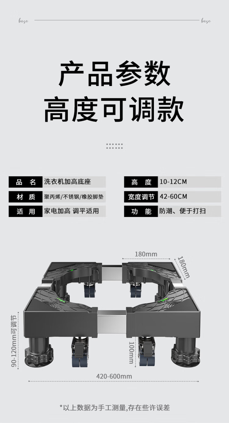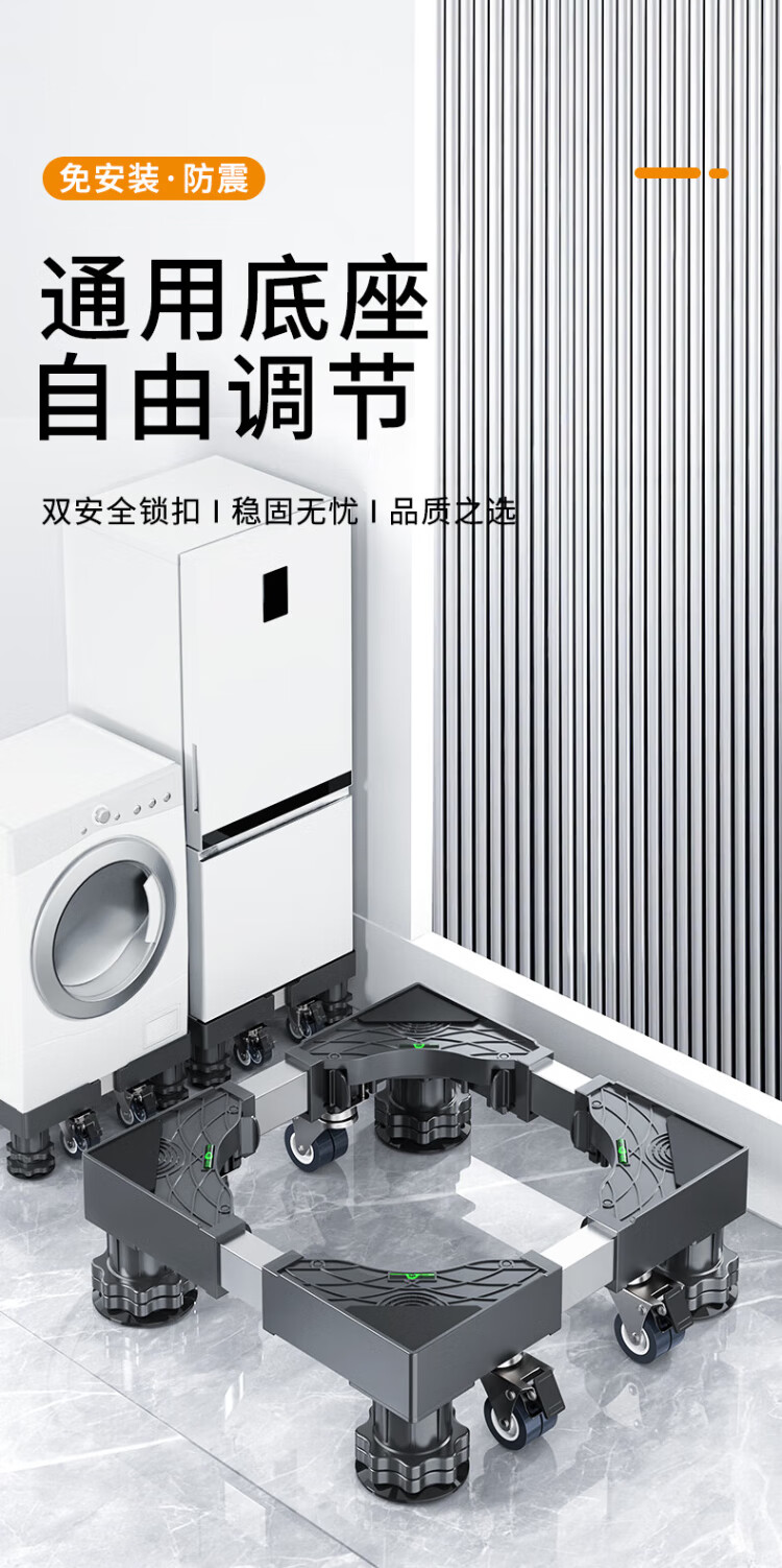 Jiangwutong washing machine base mobile bracket drum impeller anti-slip and shockproof foot pad fixed base air conditioner refrigerator heightening tray suitable for Little Swan Midea Haier Universal