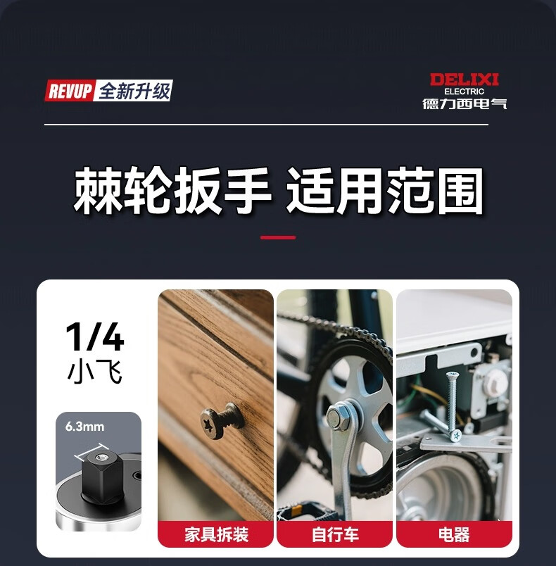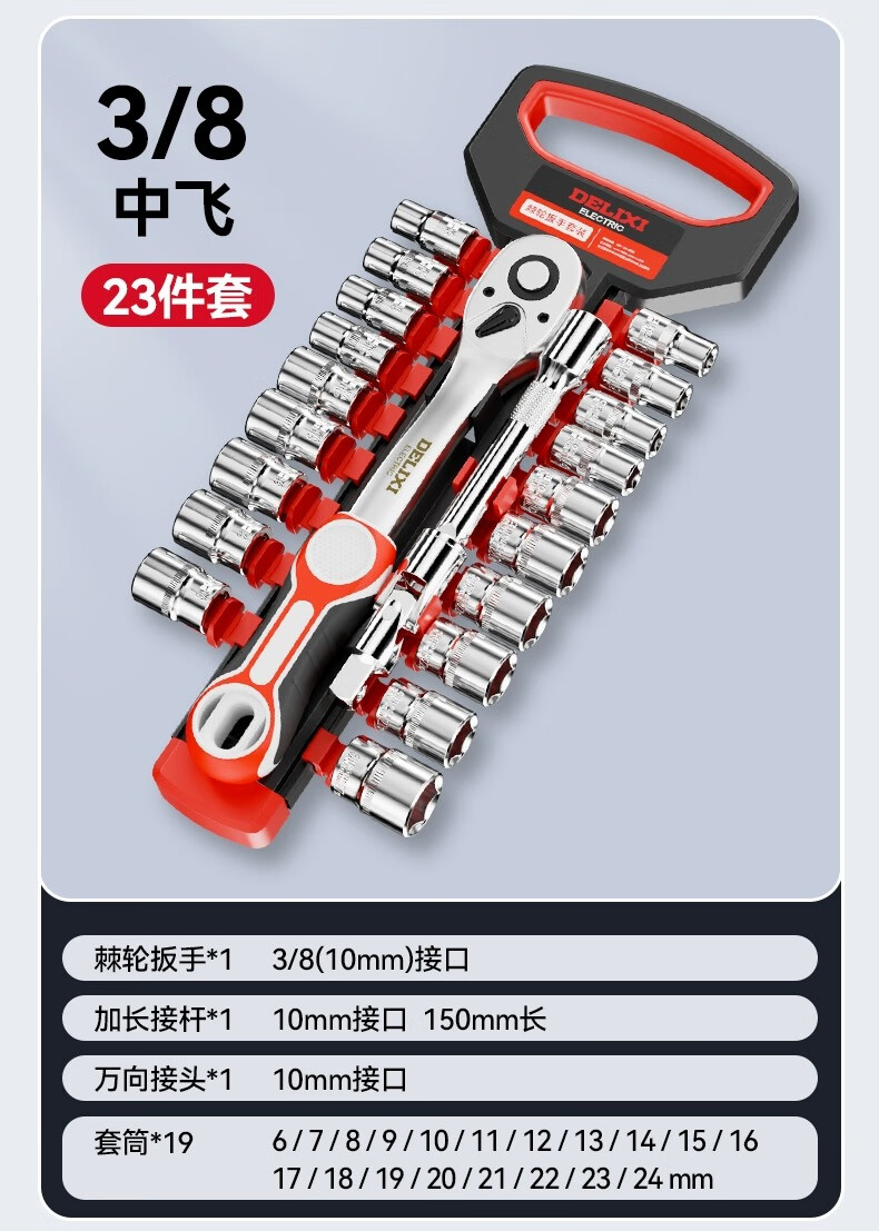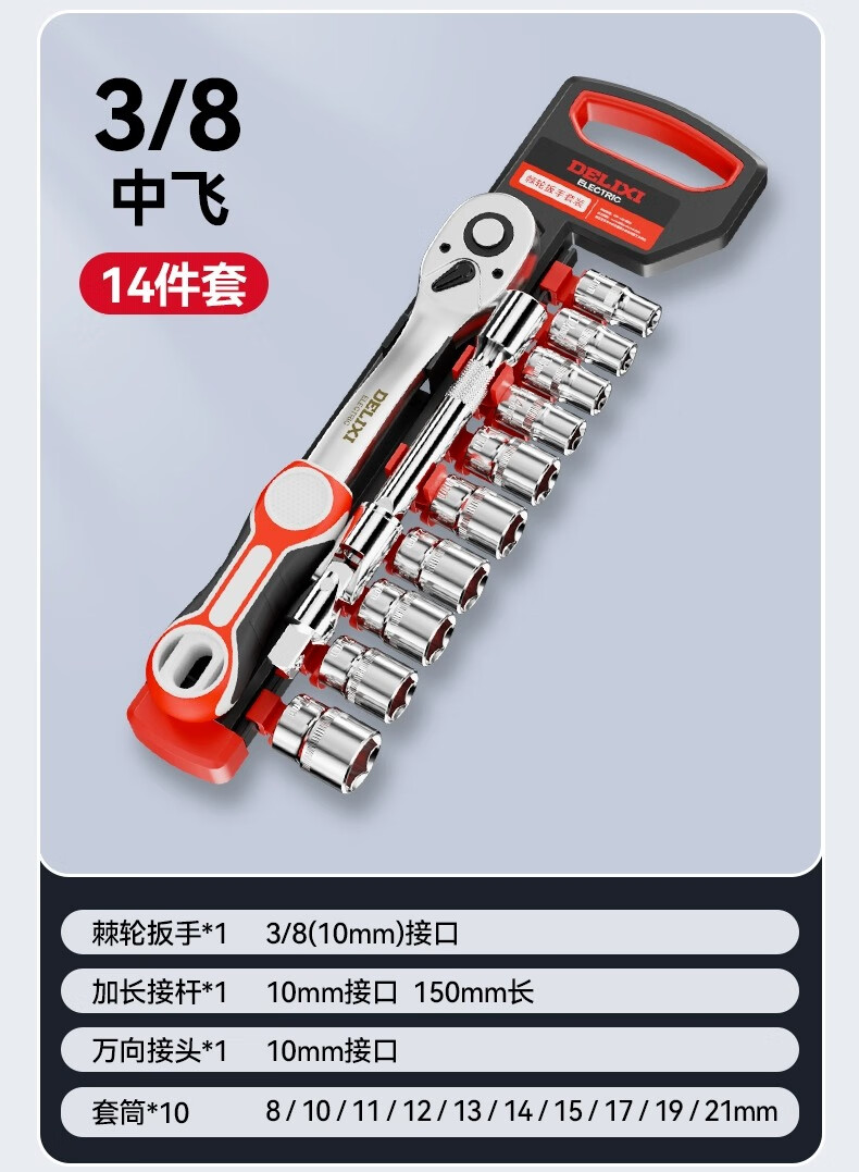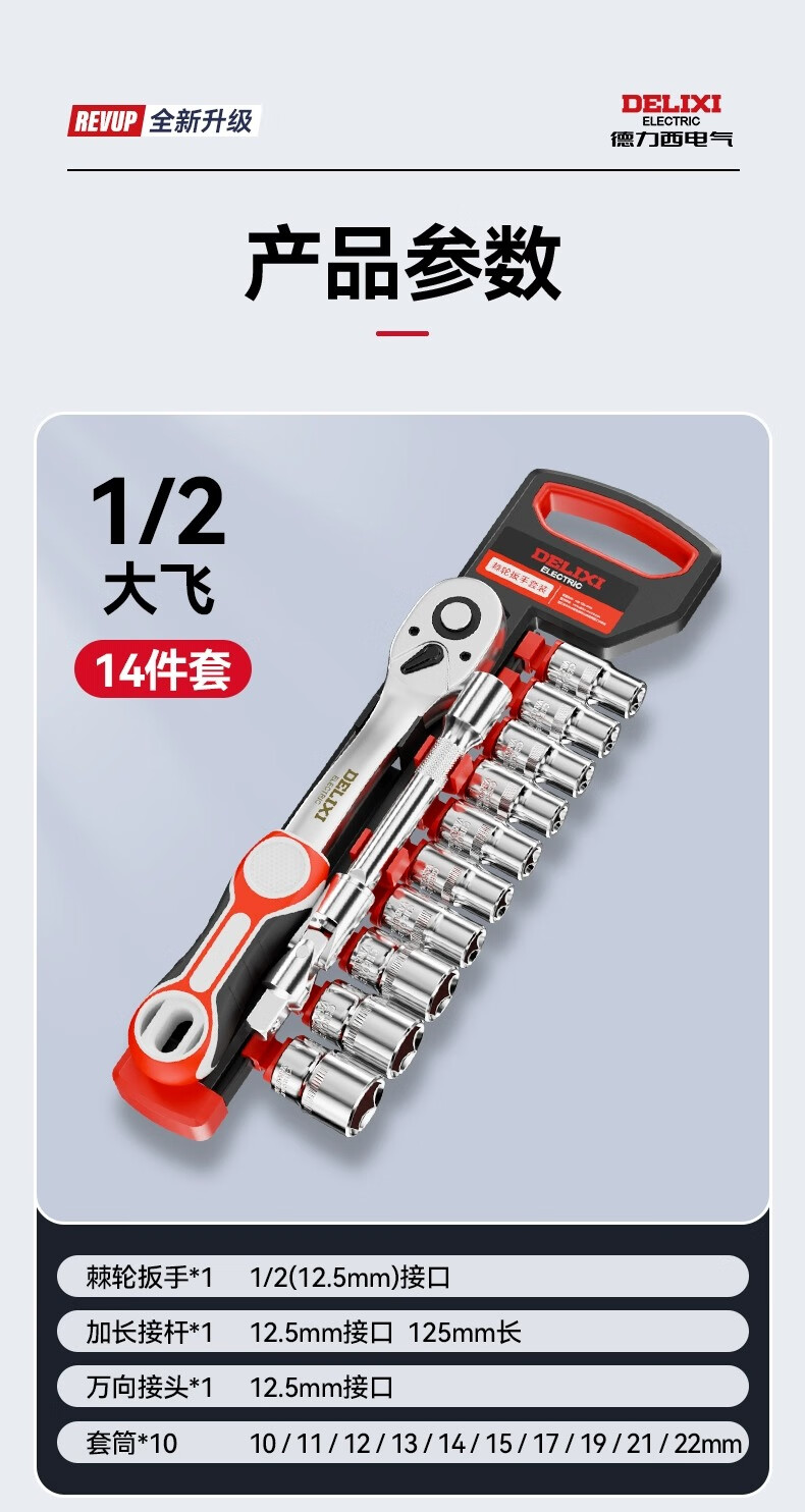 Delixi ratchet sleeve wrench set universal multifunctional external hexagonal quick wrench tube auto repair tool