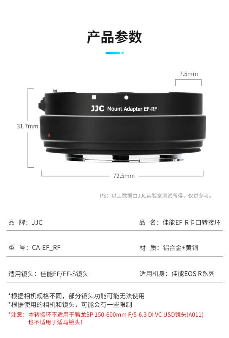 JJC camera adapter ring EF-EOSR is suitable for Canon R50V R52/C R7 R50 R10 R8 R6II RP mirrorless Yongnuo small spittoon RF lens mount adapter