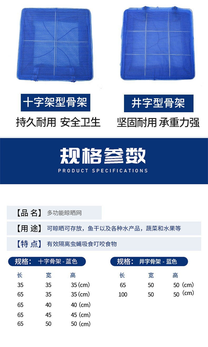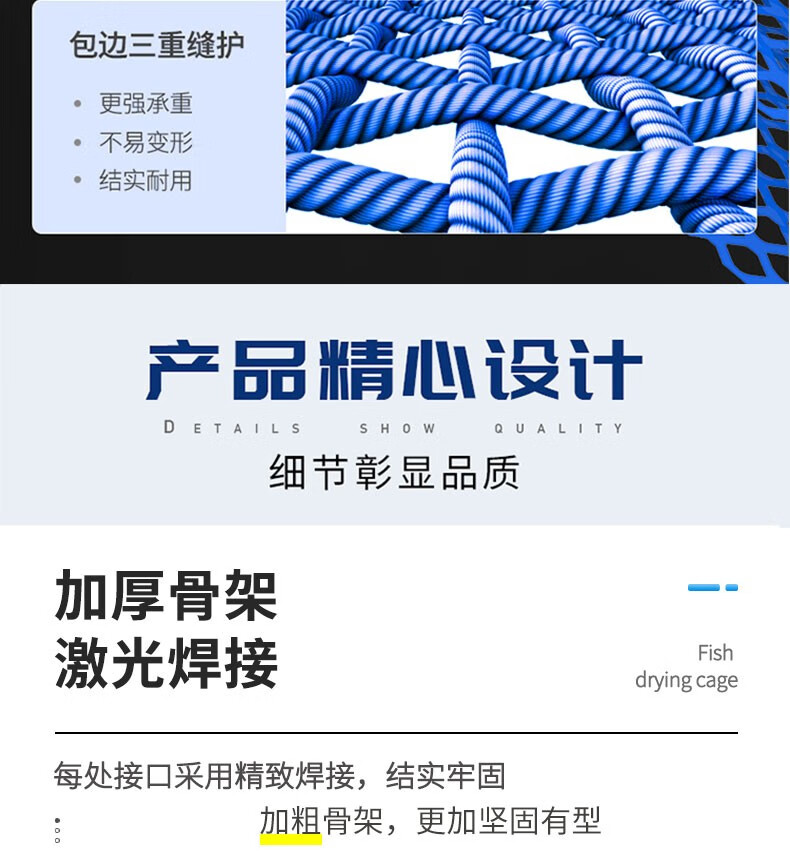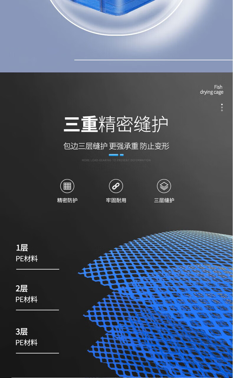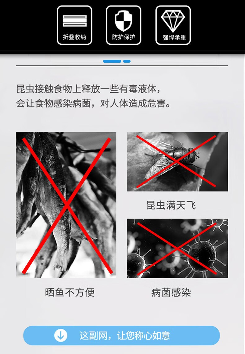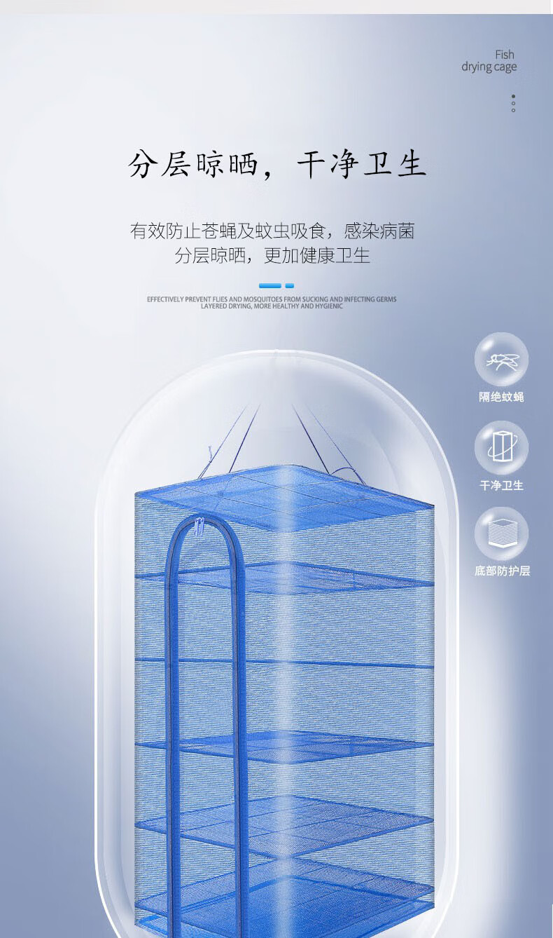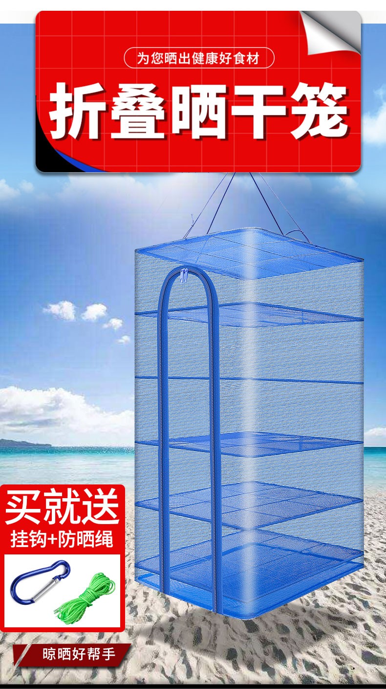 Zhihui folding drying cage, fish drying net, fly-proof cage, fish drying machine, fishing net bag, drying goods household artifact, 65*35*35 three layers + drying rope + hook 1