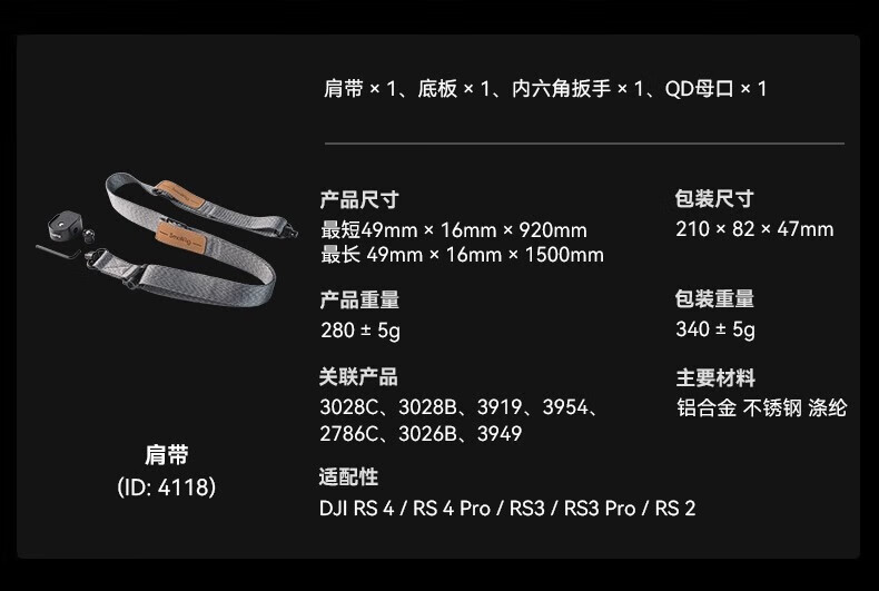 SmallRig is suitable for DJI RS4 mini Pro RS3 RSC2 RS2 pot handle stabilizer shoulder strap portable Akaman Futu quick release plate camera photography expansion accessories evolved version upper portable (3028C)