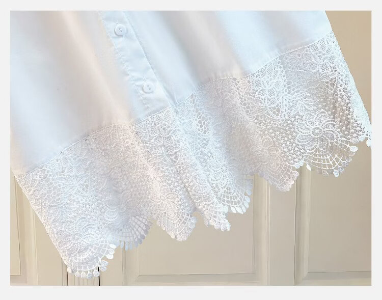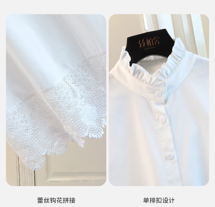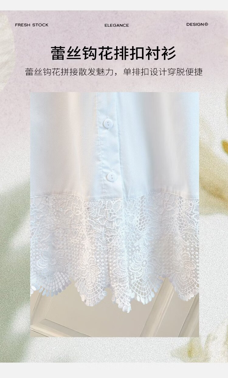 Sibaishe round neck embroidered lace shirt for women 2026 spring new fashion loose short-sleeved temperament pullover shirt