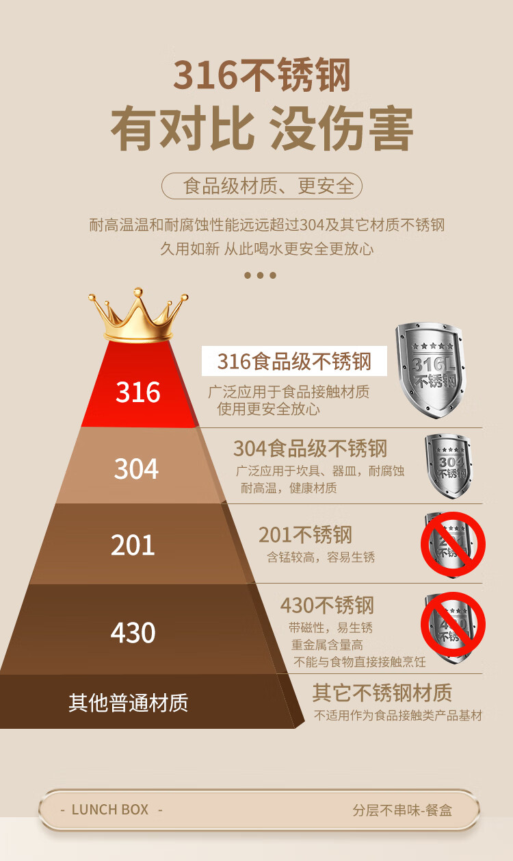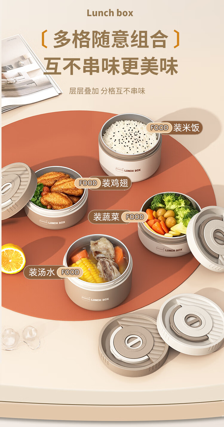 COOKSS Insulated Lunch Box 316 Stainless Steel Insulated Bucket Portable Office Workers Bring Meal Multi-layer Lunch Box Lunch Box Students Pack Meal