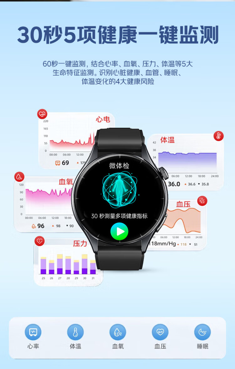 Bobi nfc+ payment blood sugar and blood pressure monitoring watch risk research blood lipids uric acid blood oxygen heart rate ECG all-in-one non-medical grade smart health high-precision sports bracelet