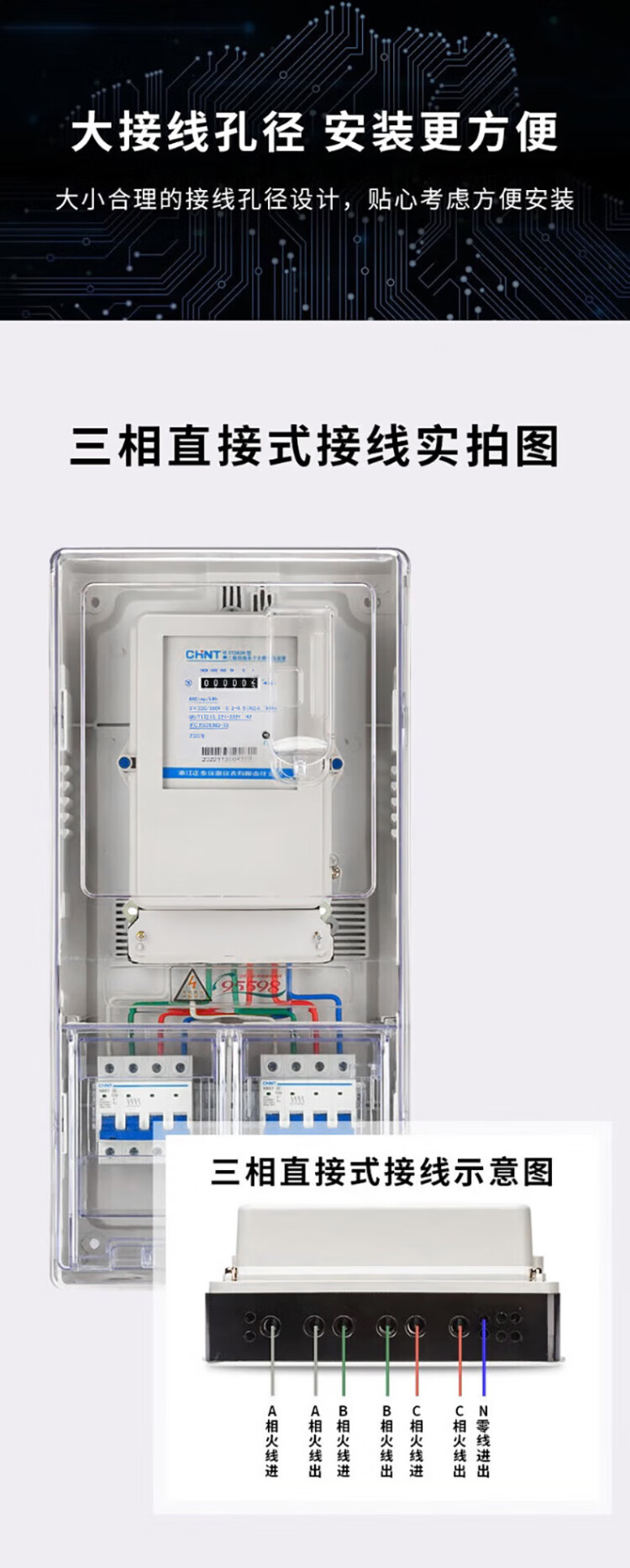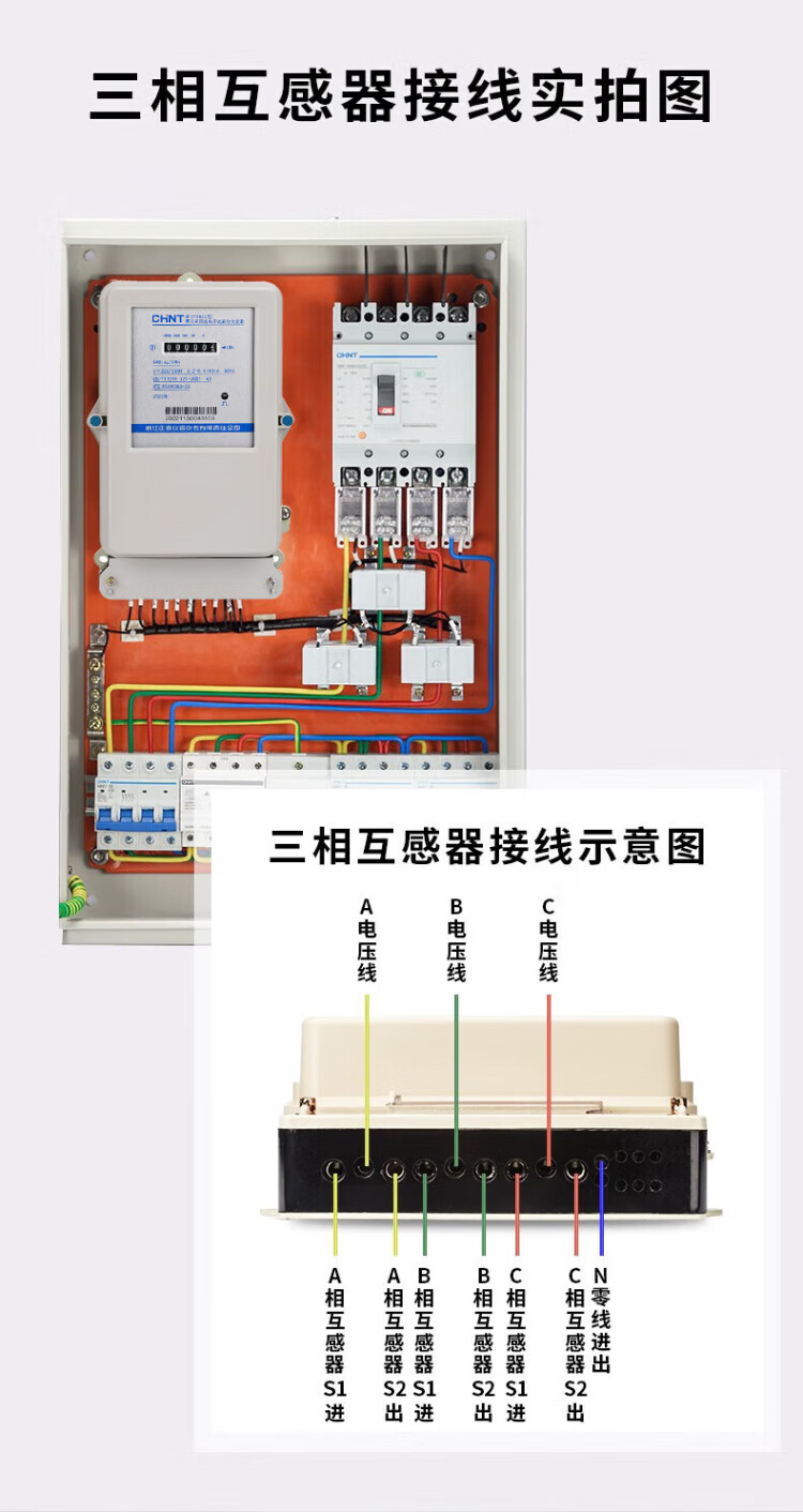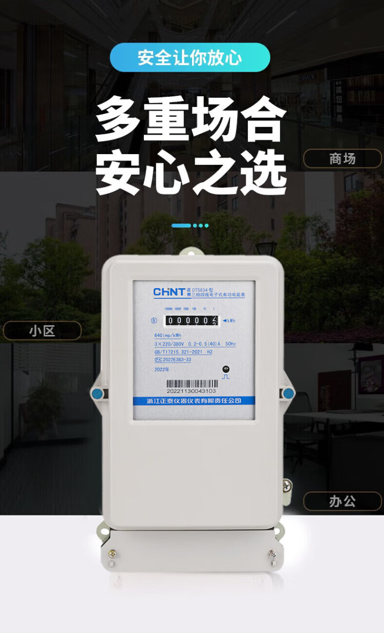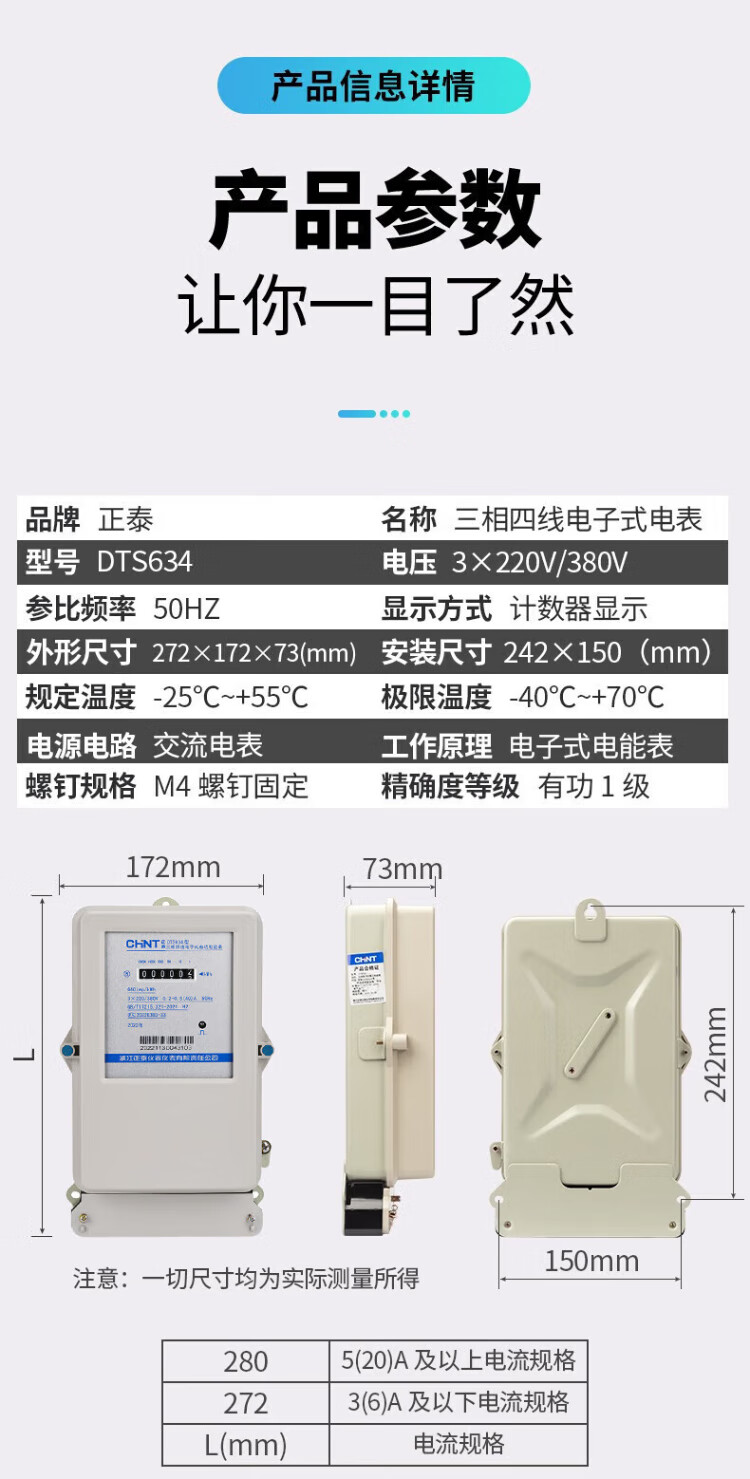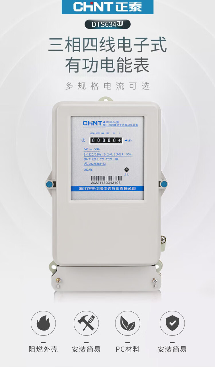 Chint (CHNT) three-phase electricity meter 380v DTS634 electricity meter three-phase four-wire electricity meter electronic transformer energy meter 100A new national standard direct power 50kw