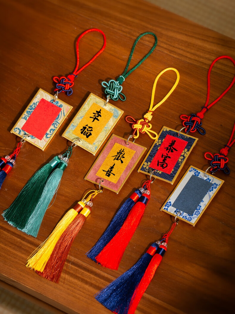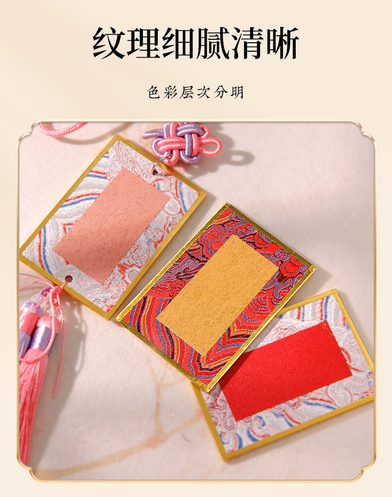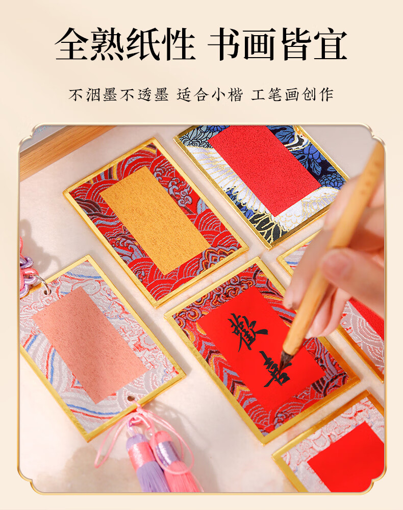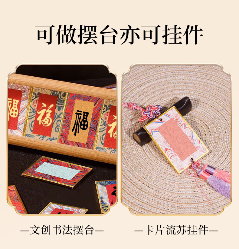 Meilin Penzhuang Mini Song Brocade Hard Card Calligraphy Pendant Bookmark Mini Card Paper Fortune Card with Tassel Cultural and Creative DIY Gift Rice Paper Song Brocade Card Paper Double Head with Tassel Pendant