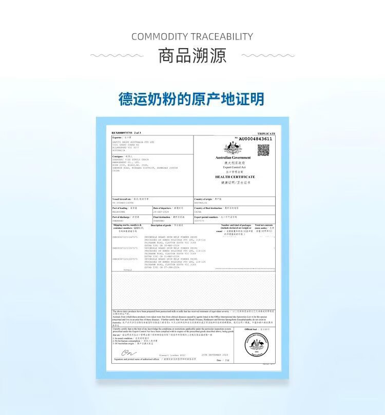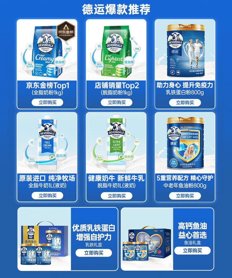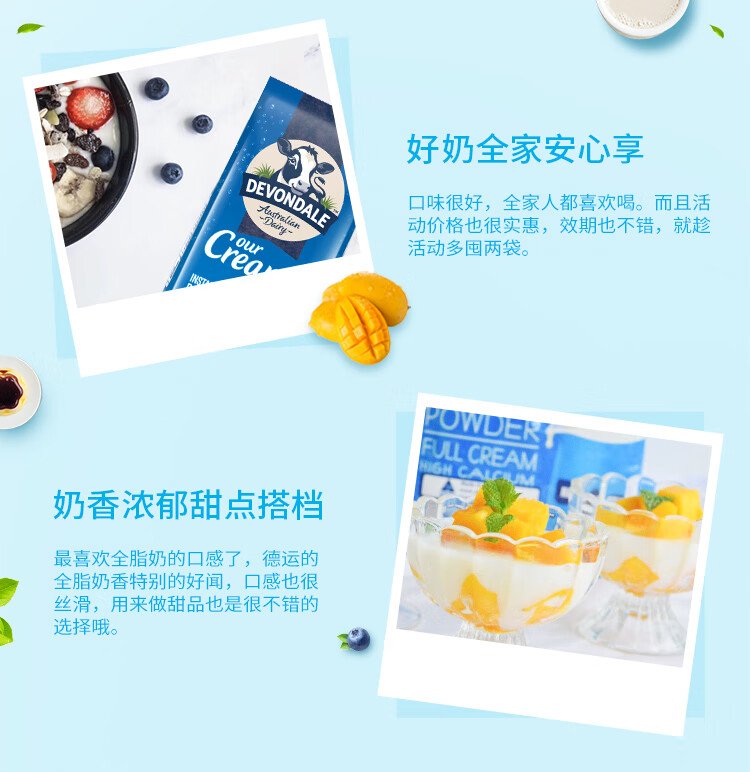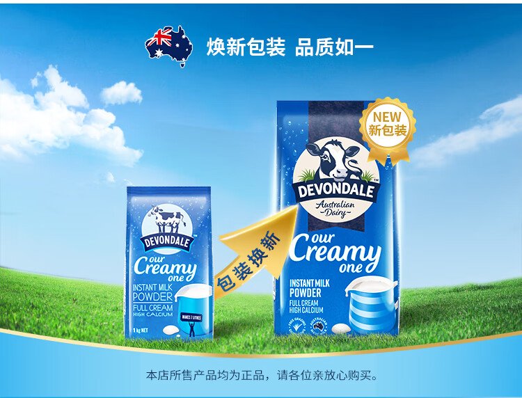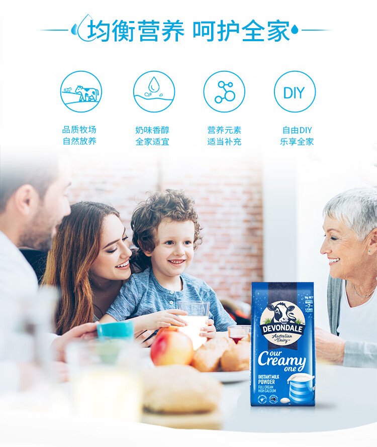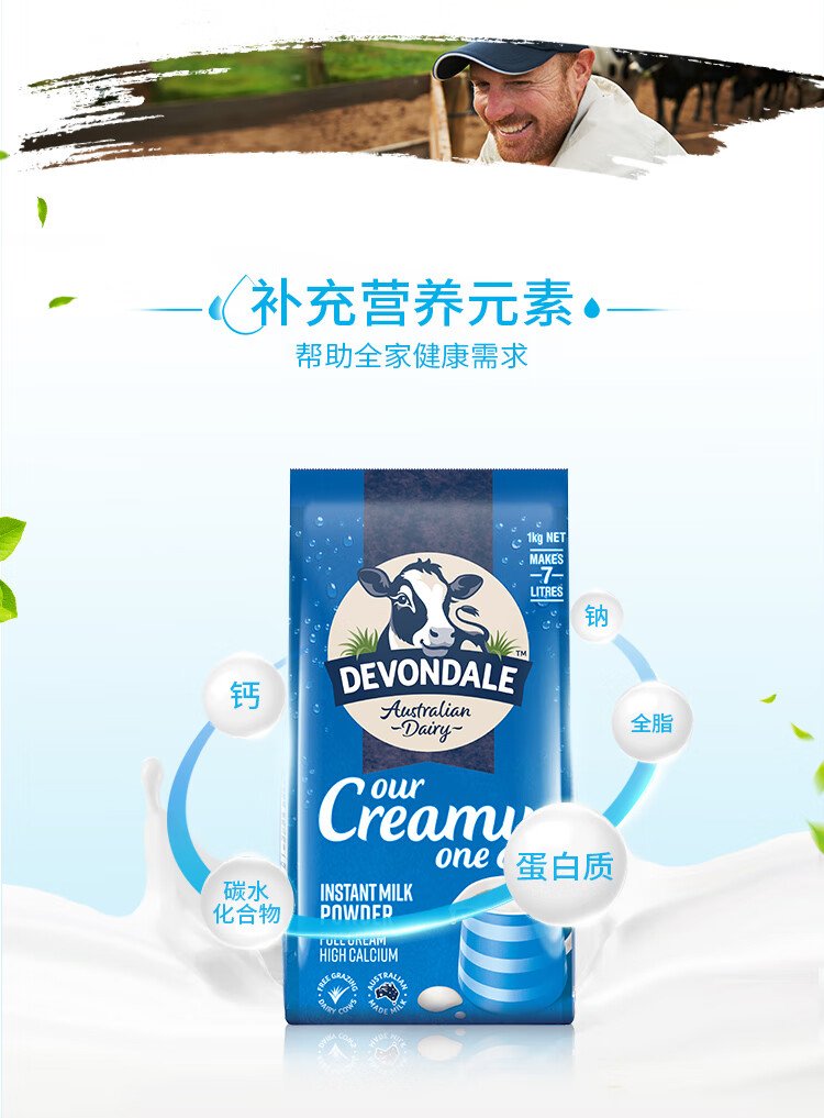 Devondale Australian full-fat adult milk powder 1kg/bag 0 sucrose high calcium high protein students middle-aged and elderly