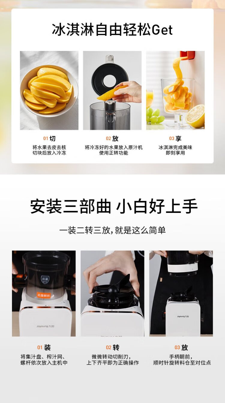 Joyoung NFC original juice machine 135mm extra large diameter three-stage pressing multi-function ice cream machine fully automatic cold press juicer residue juice separation Z13-LZ585 national subsidy