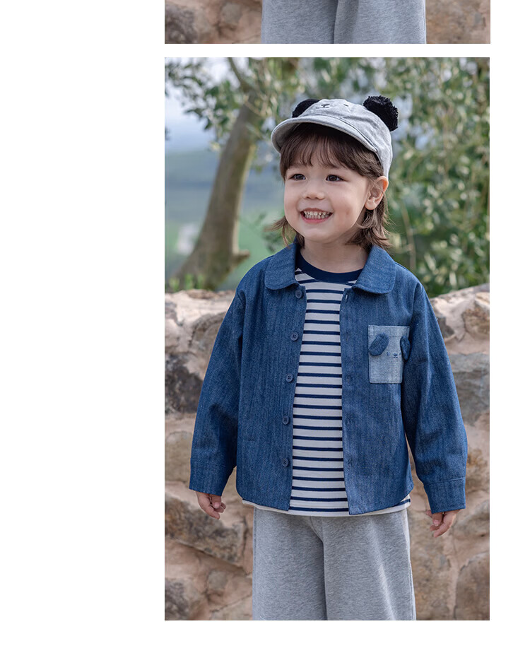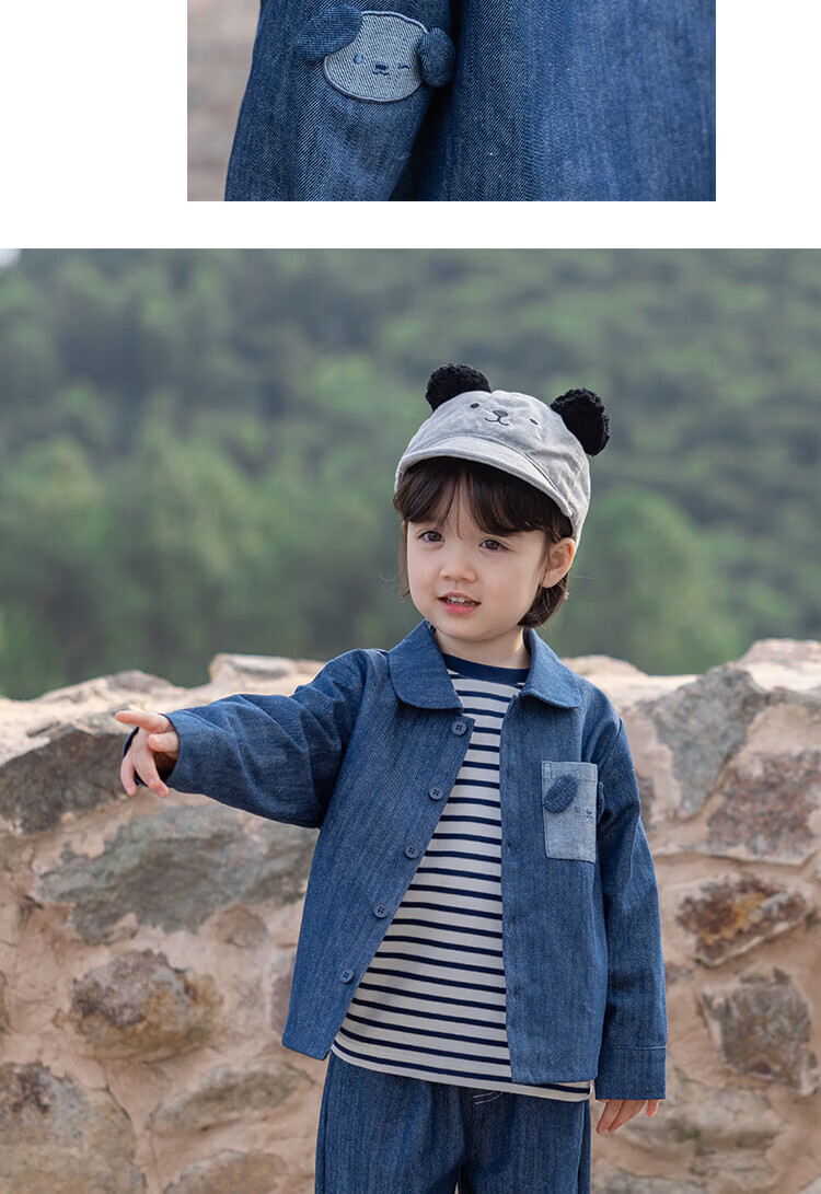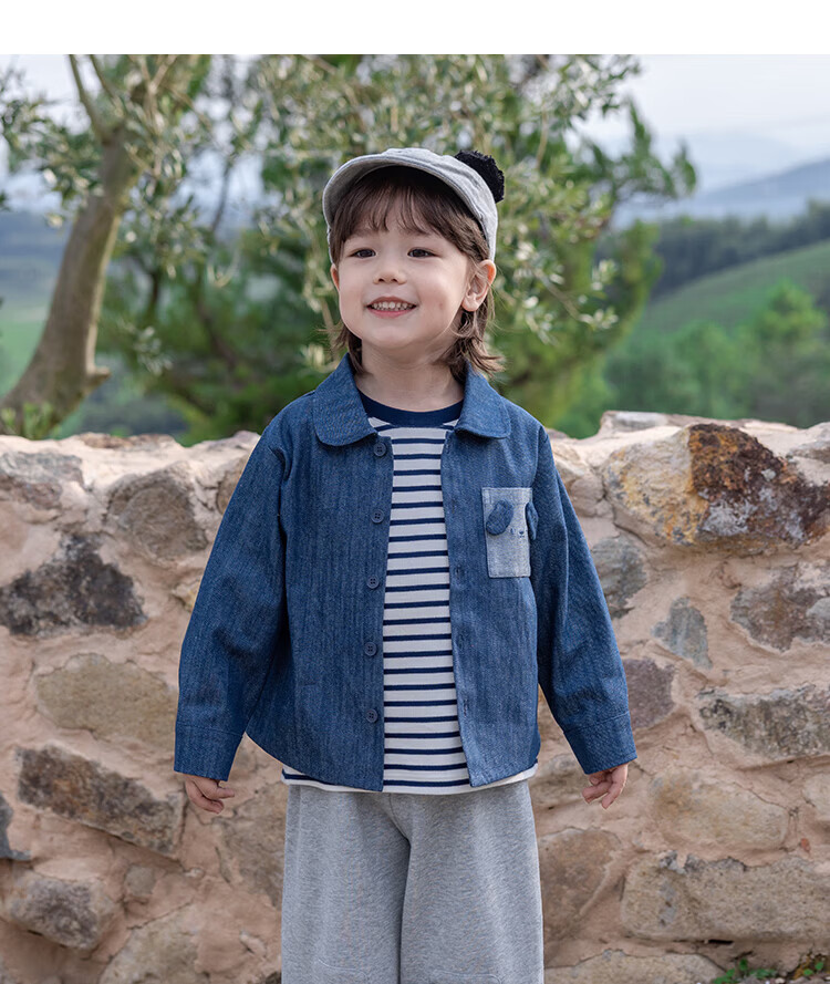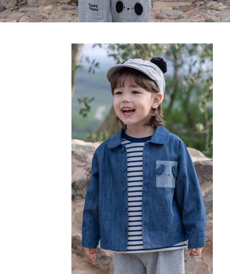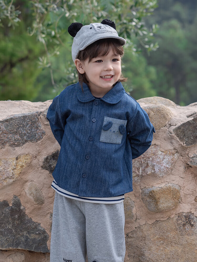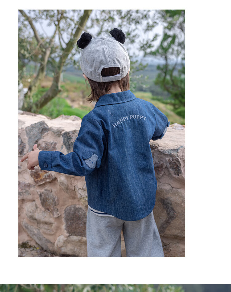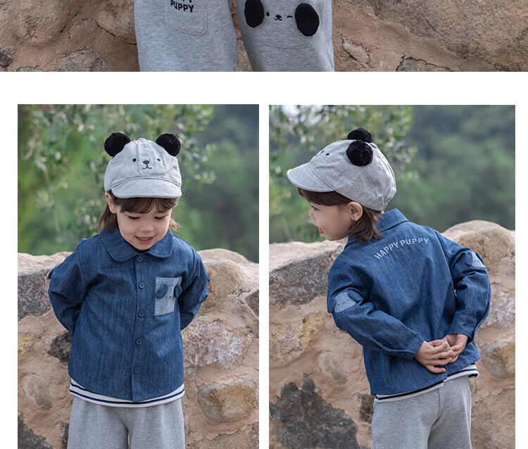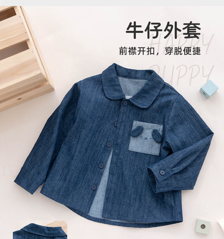 YOUGE Spring New Product Infant Happy Puppy Small Lapel Soft Denim Shirt Jacket for Children