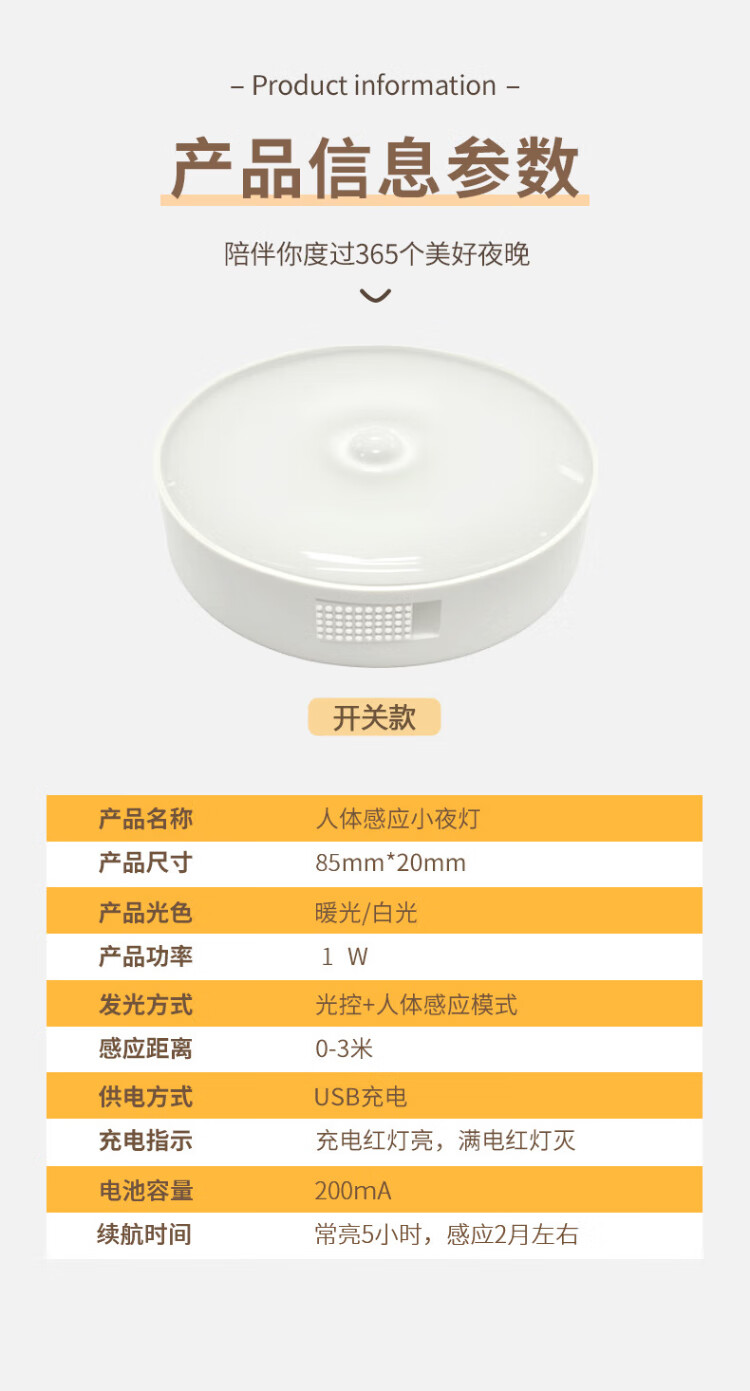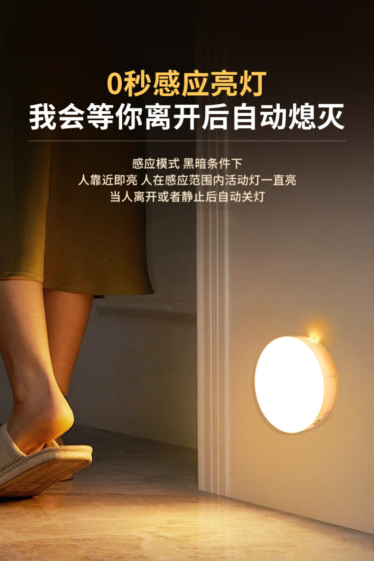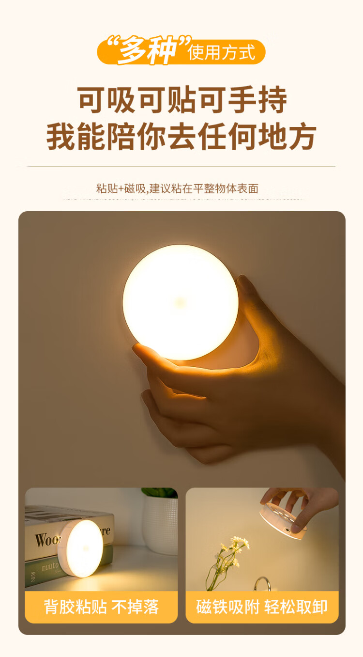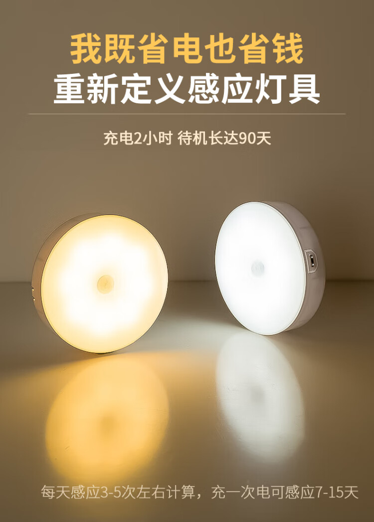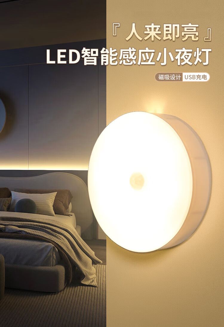 Platinum Human Body Sensor Lamp Intelligent Light Control Charging Lamp Magnetic Work Lamp 8.5CM White Light