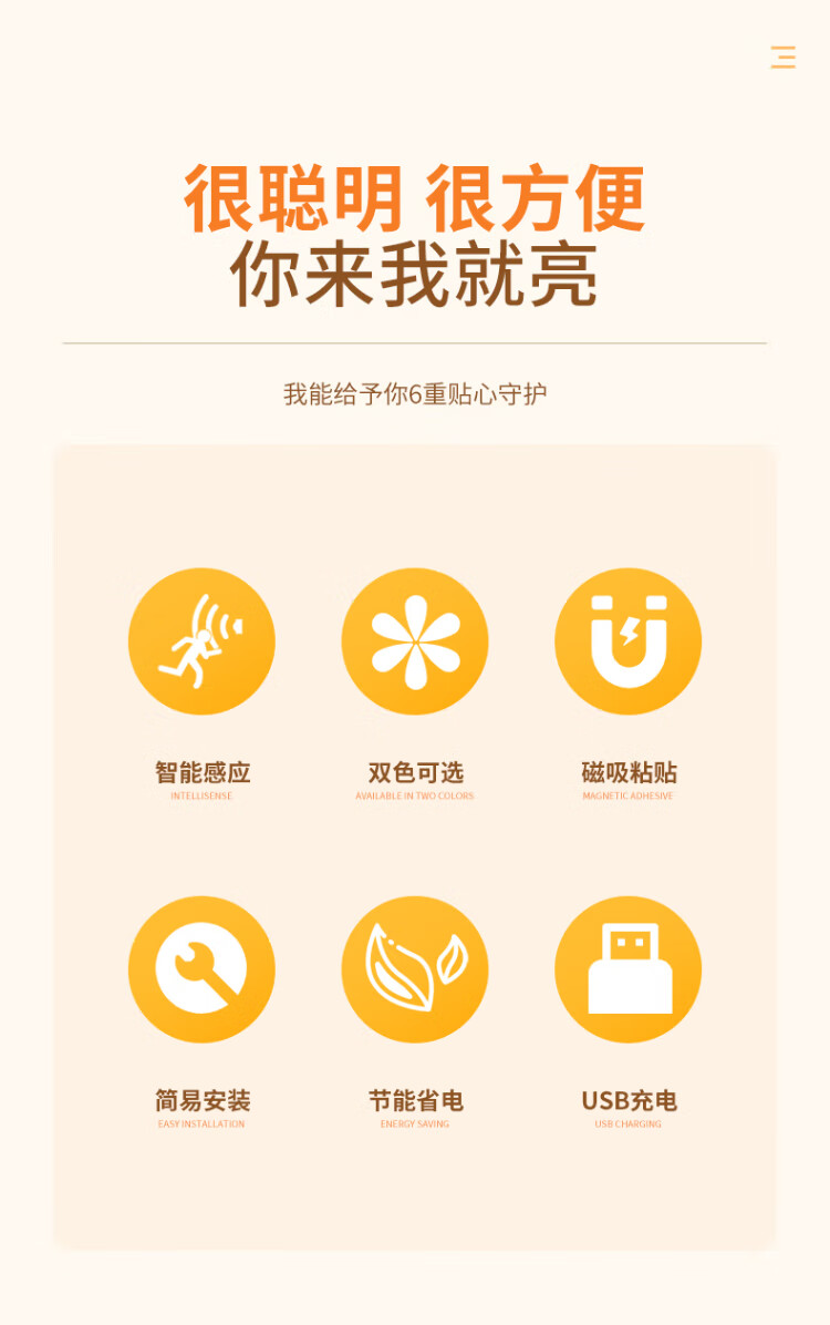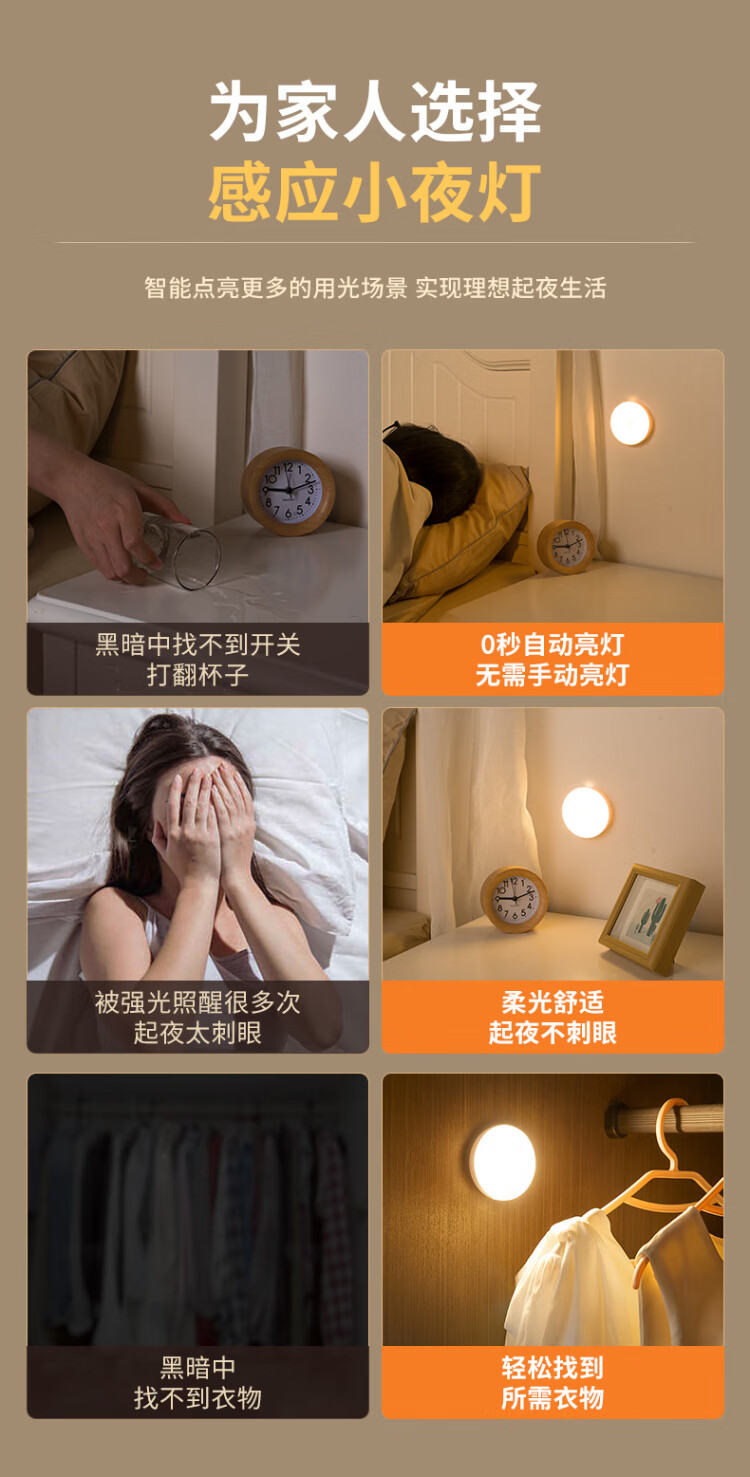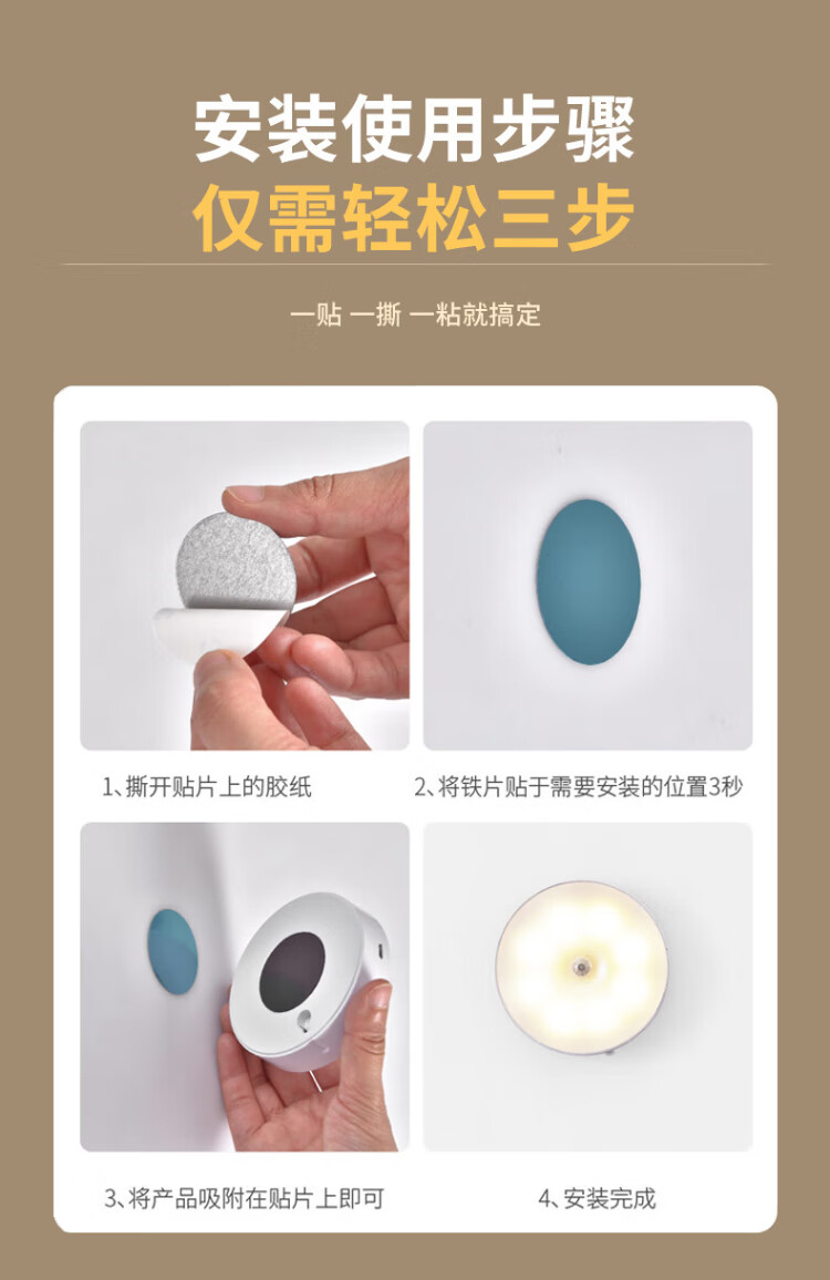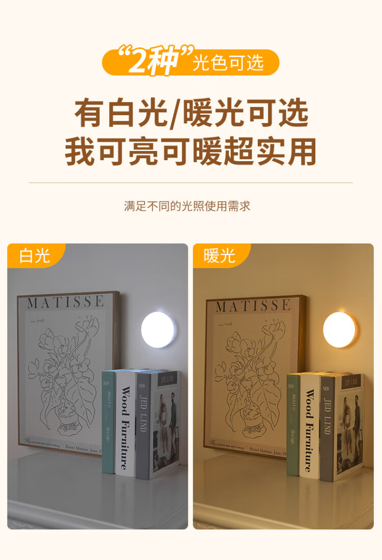 Platinum Human Body Sensor Lamp Intelligent Light Control Charging Lamp Magnetic Work Lamp 8.5CM White Light