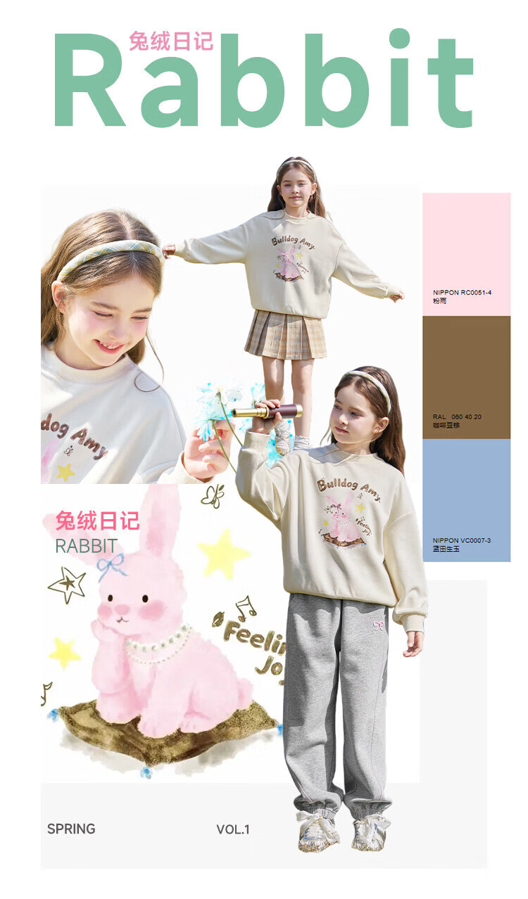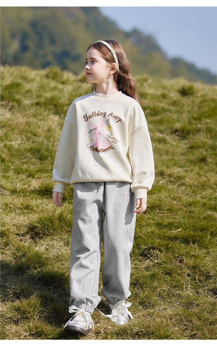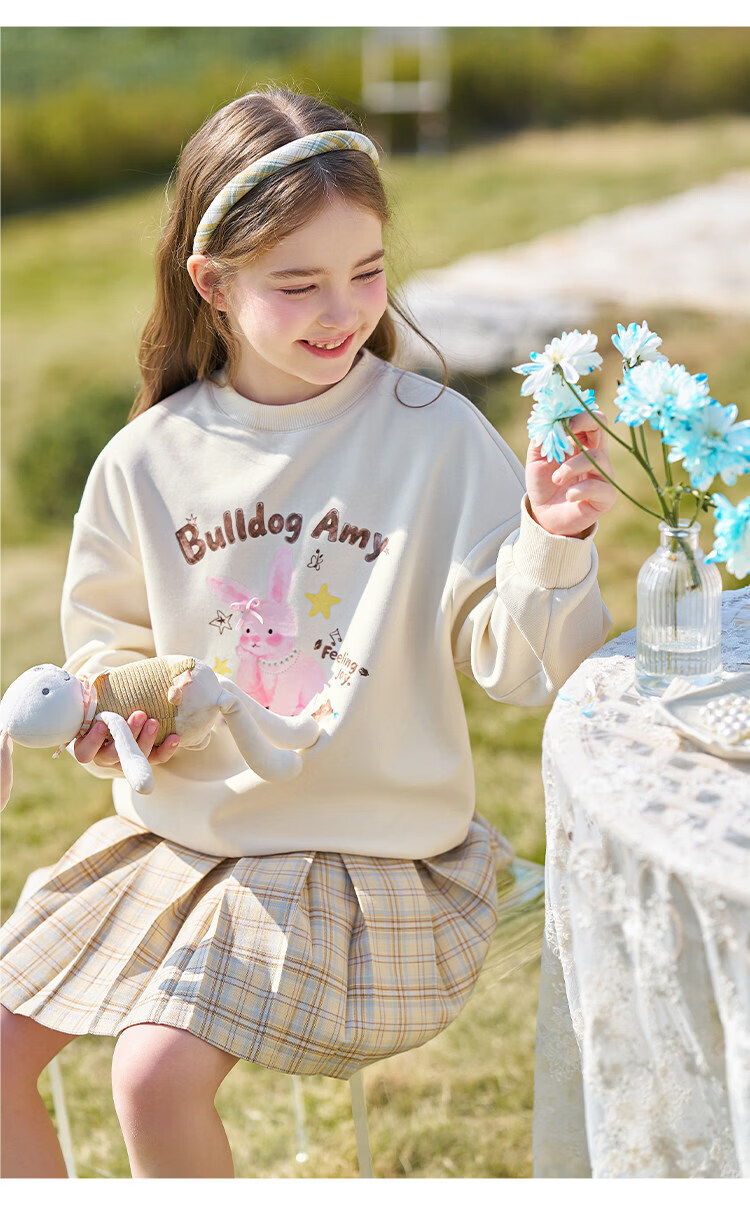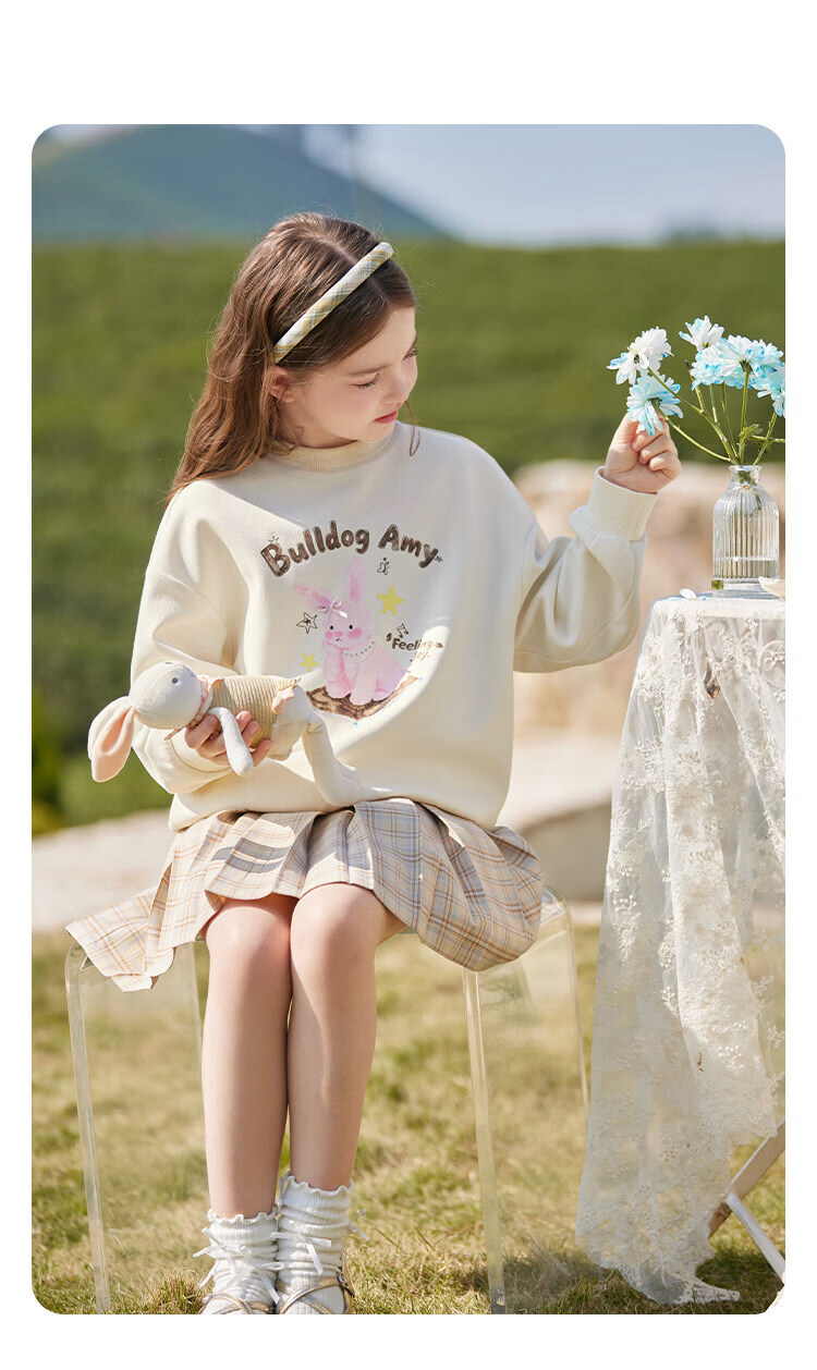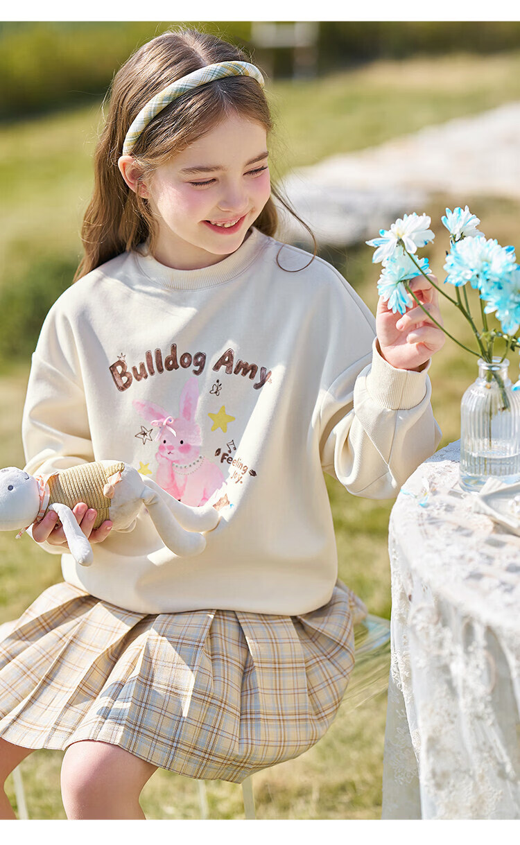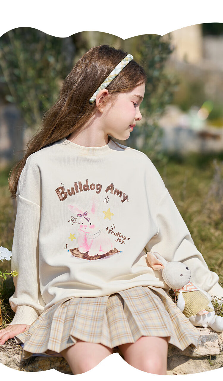 CHANZUIGOU (CHANZUIGOU) children's clothing girls cute bunny sweatshirt 2026 spring new style foreign style printed tops versatile long-sleeved women
