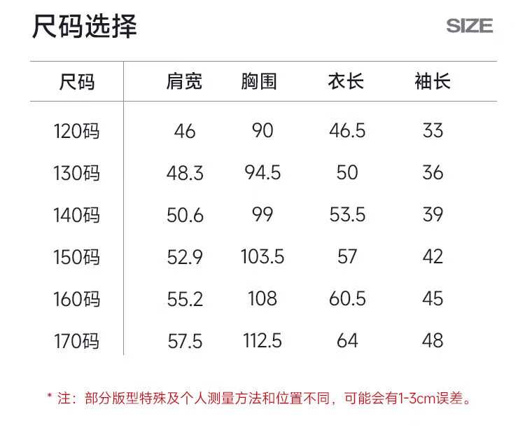 China (cm) 160-165/84-86 165-170 / 88-90 167-172 / 92-96 168-173 / 98-102 170-176 / 106-110