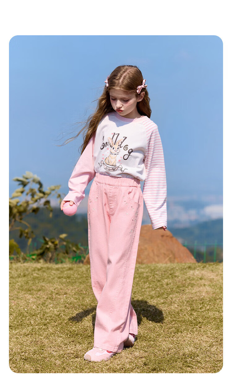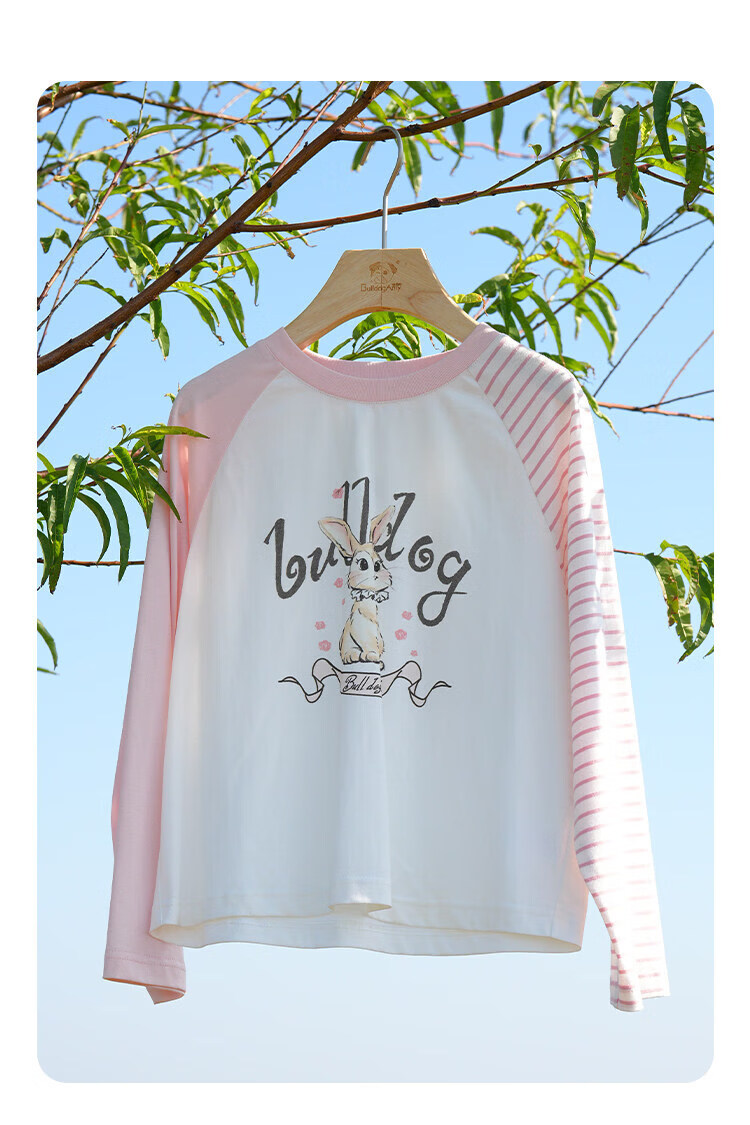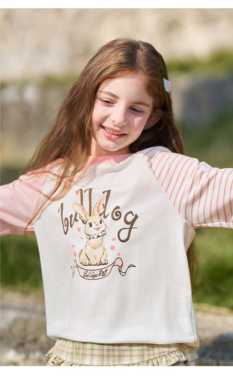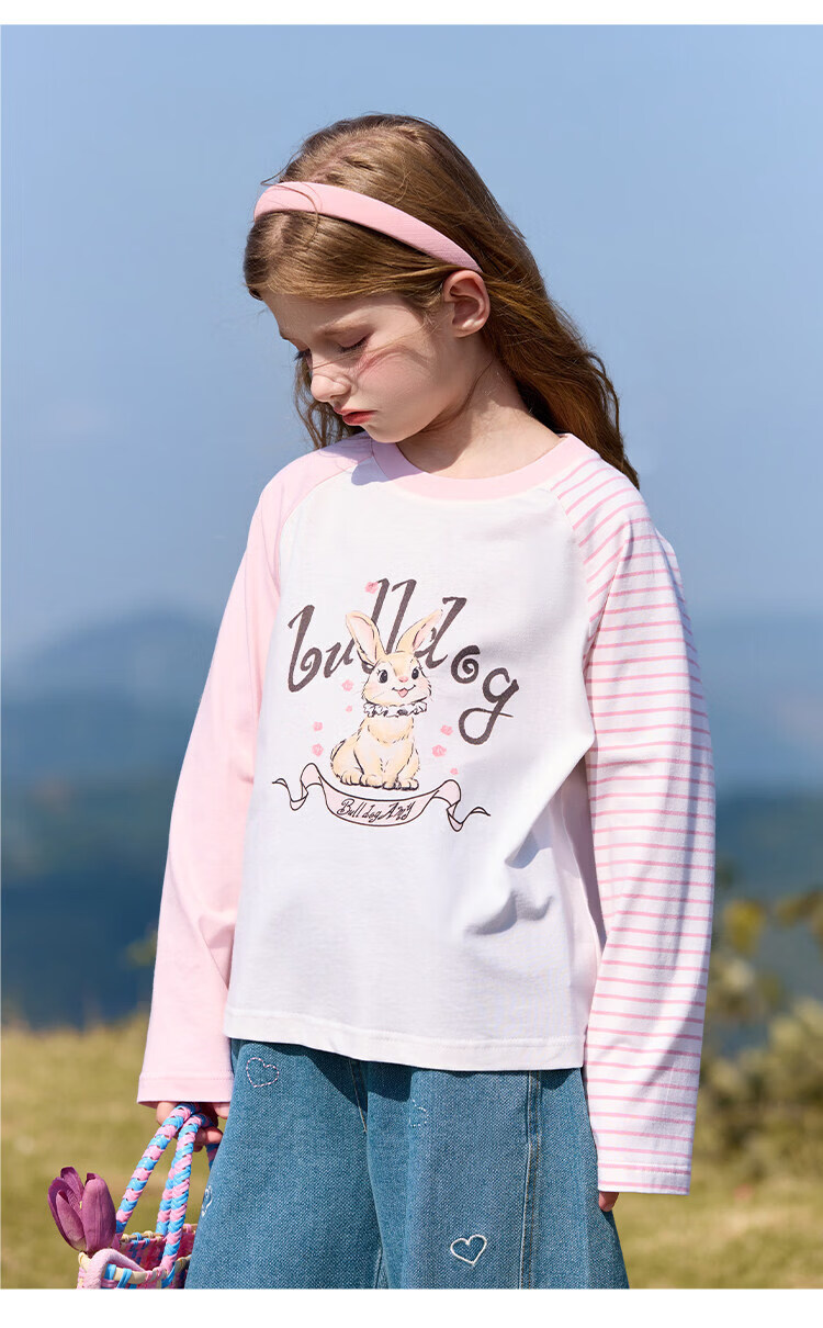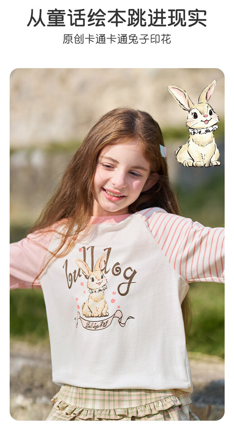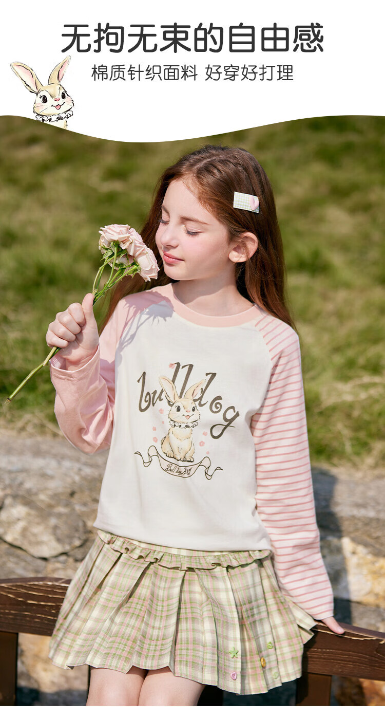 CHANZUIGOU children's clothing girls' gentle bunny print long-sleeved T-shirt 2026 spring new style round neck top for women