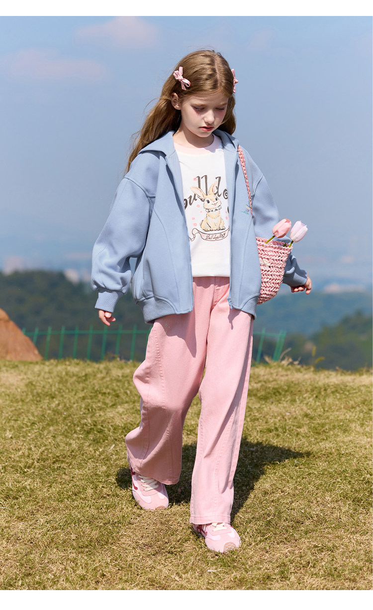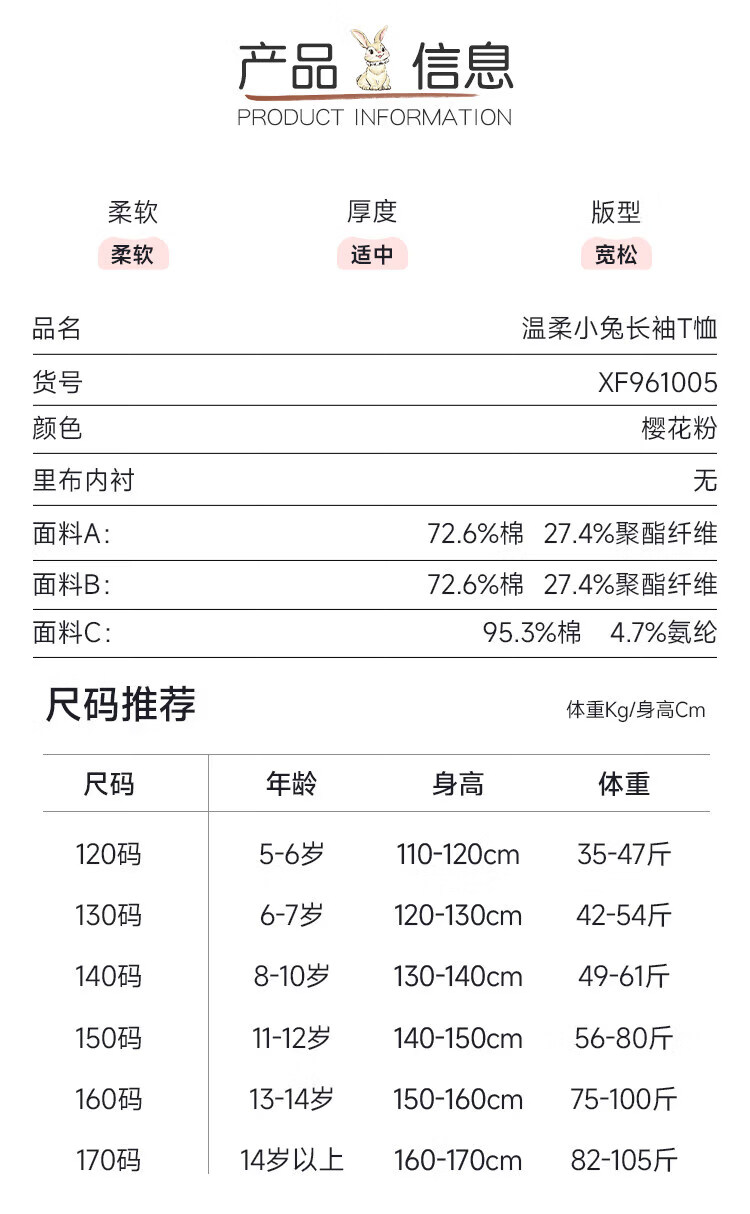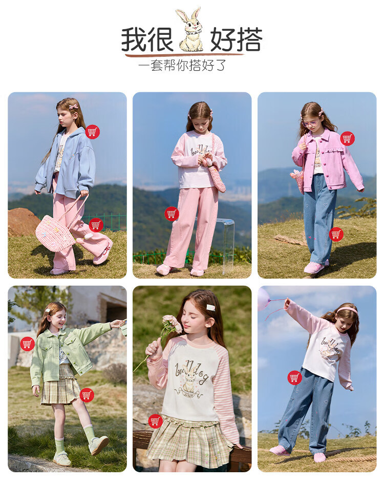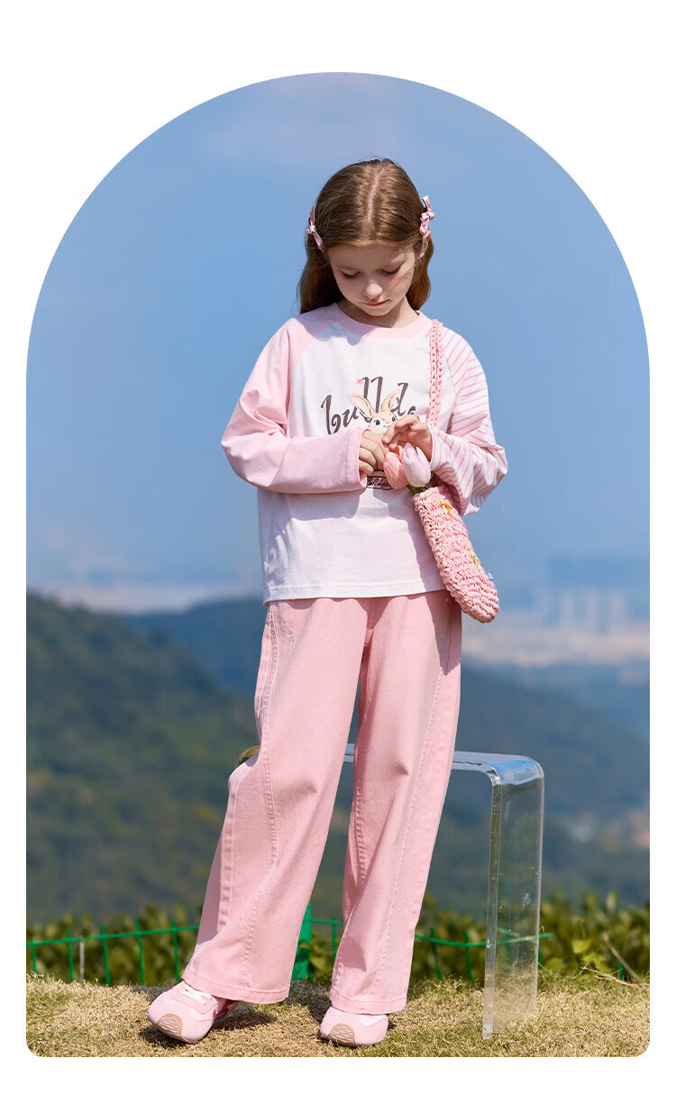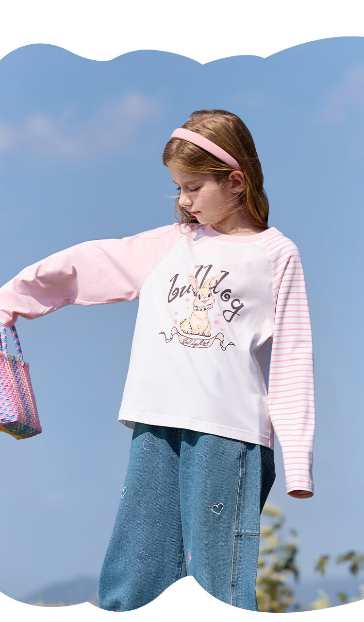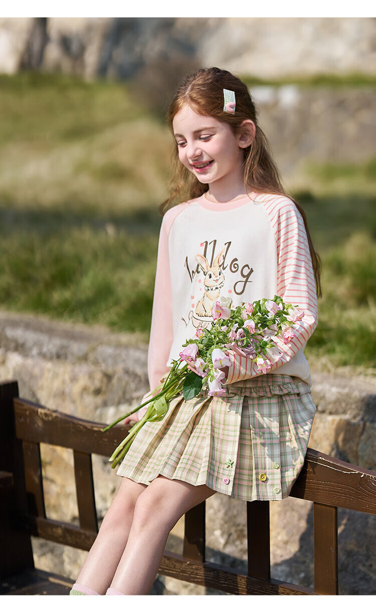 CHANZUIGOU children's clothing girls' gentle bunny print long-sleeved T-shirt 2026 spring new style round neck top for women