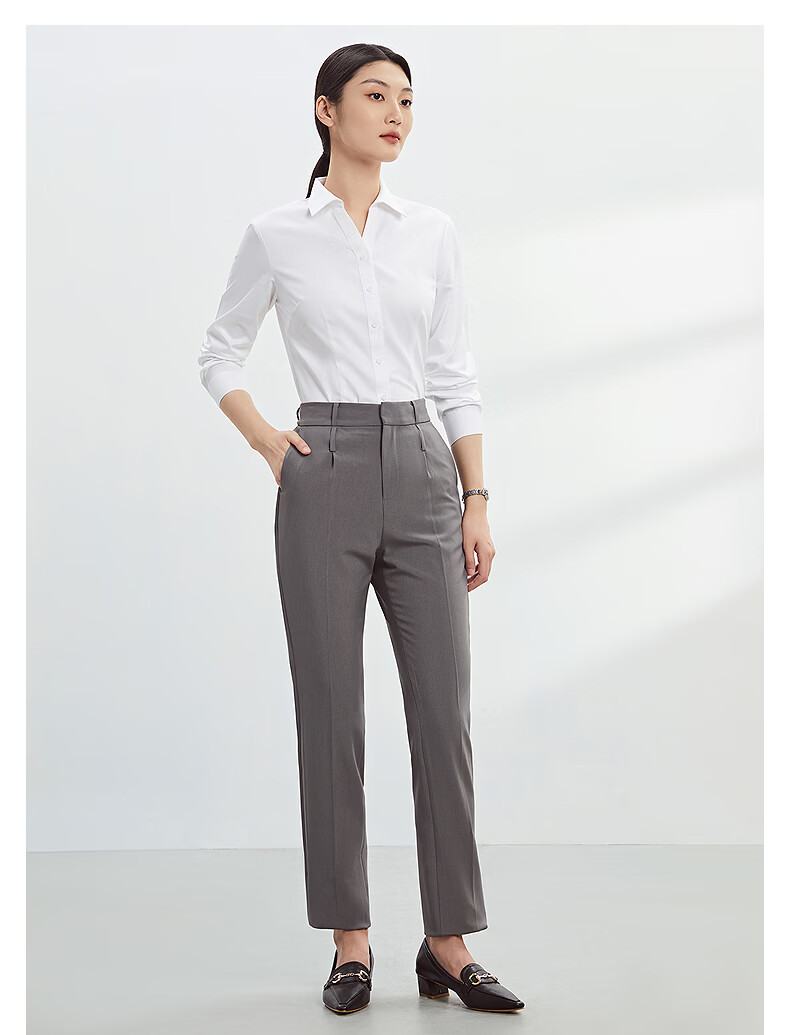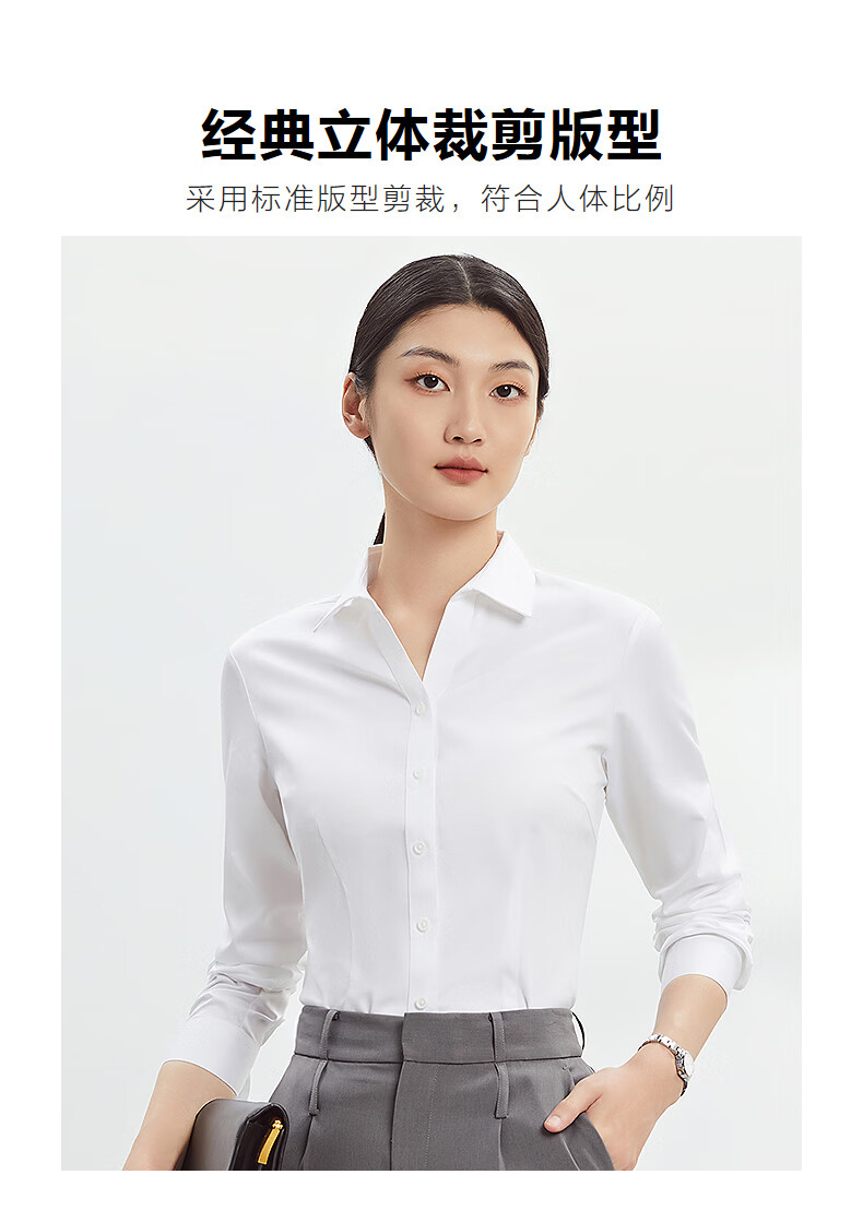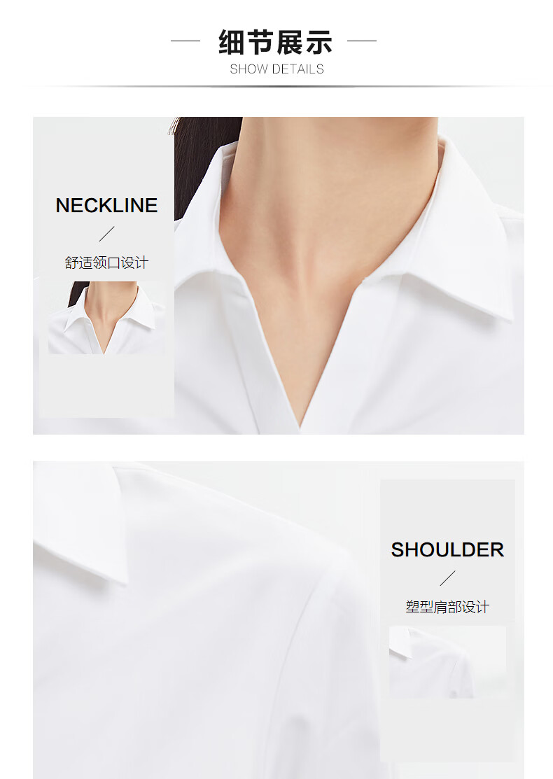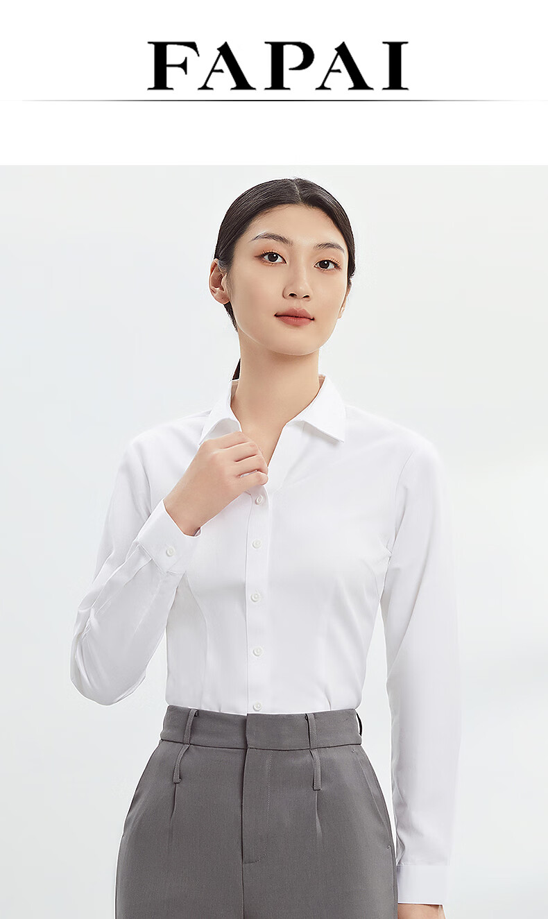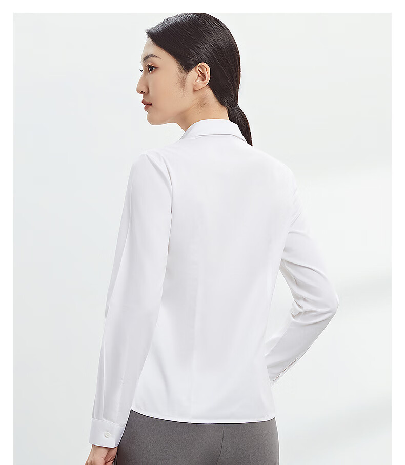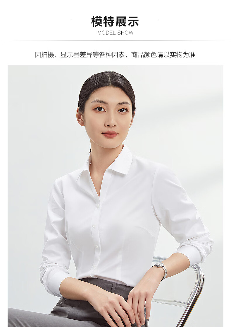 French style no-iron anti-wrinkle four-season V-neck shirt women's long-sleeved shirt skin-friendly pure cotton shirt white 42