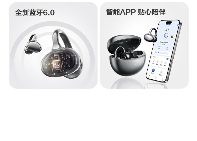 Tangmai Q6 ear clip open Bluetooth headset bone conduction concept call noise reduction wireless in-ear running sports ear-mounted sweat-proof e-sports game low latency unisex black