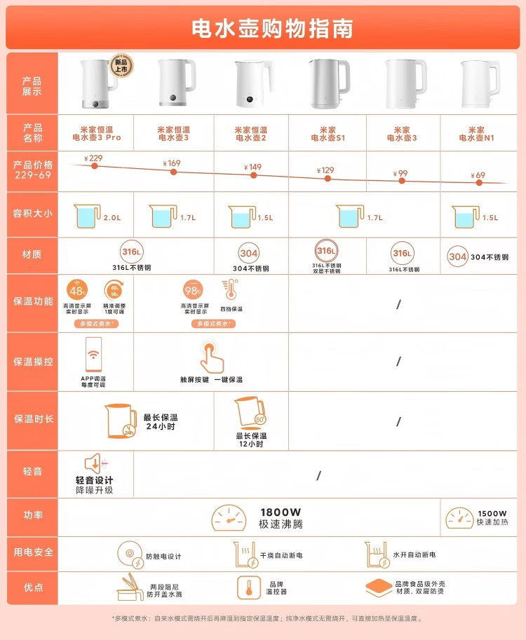 Mijia Xiaomi Constant Temperature Electric Kettle 3 Home Kettle Insulated Kettle Automatic Power Off Insulation Integrated Seamless Liner Constant Temperature Kettle 316L Maternal and Infant Grade Stainless Steel