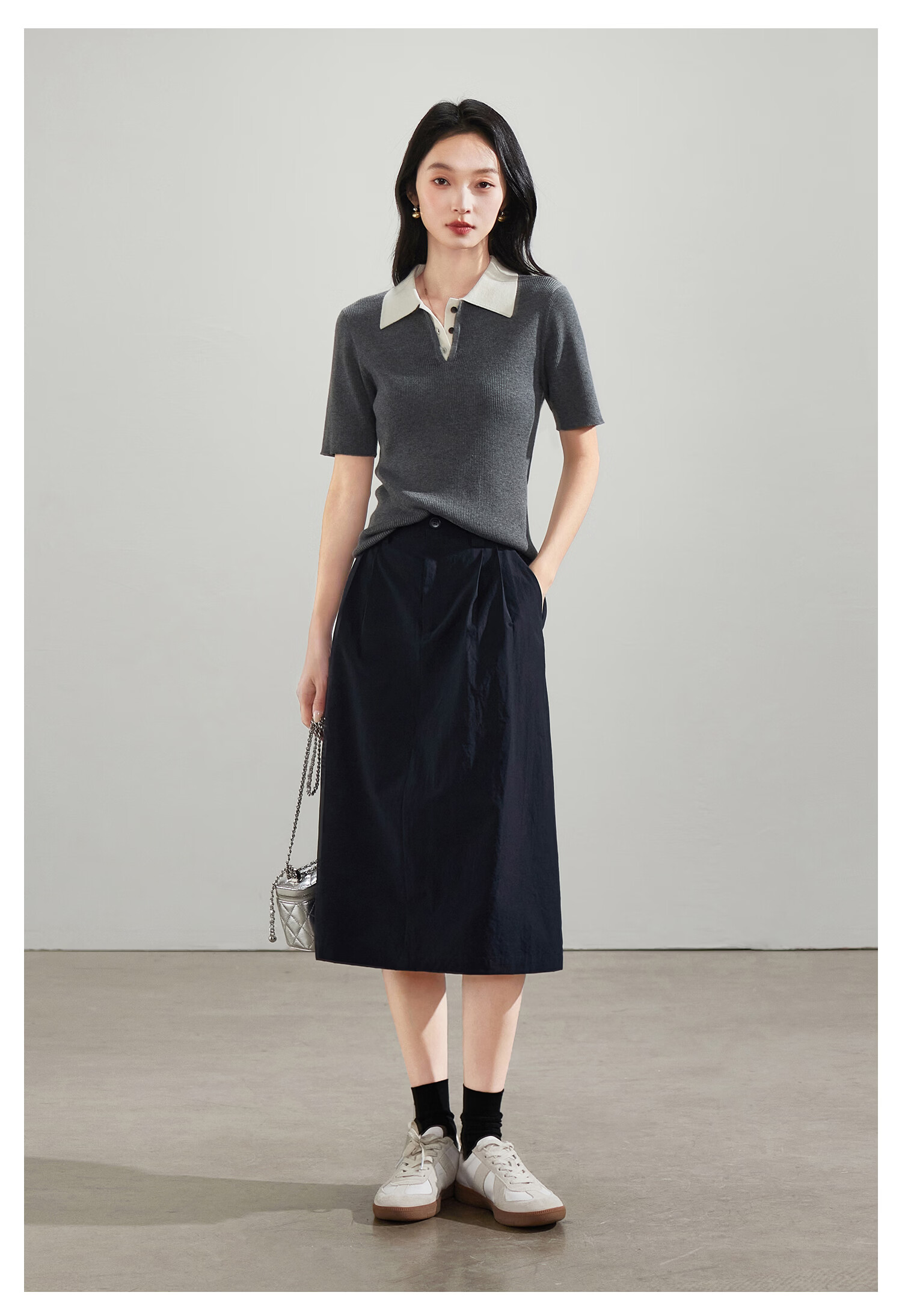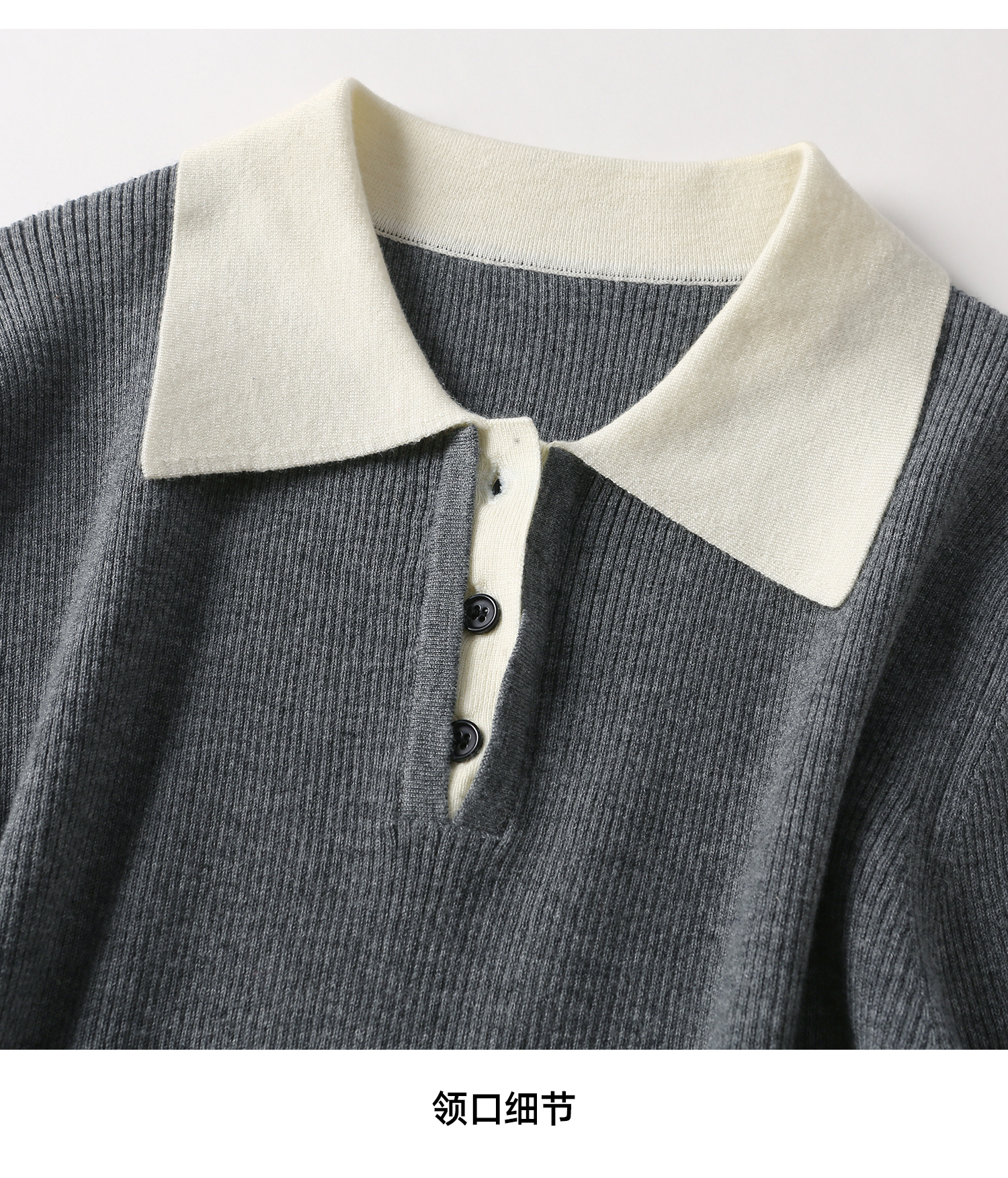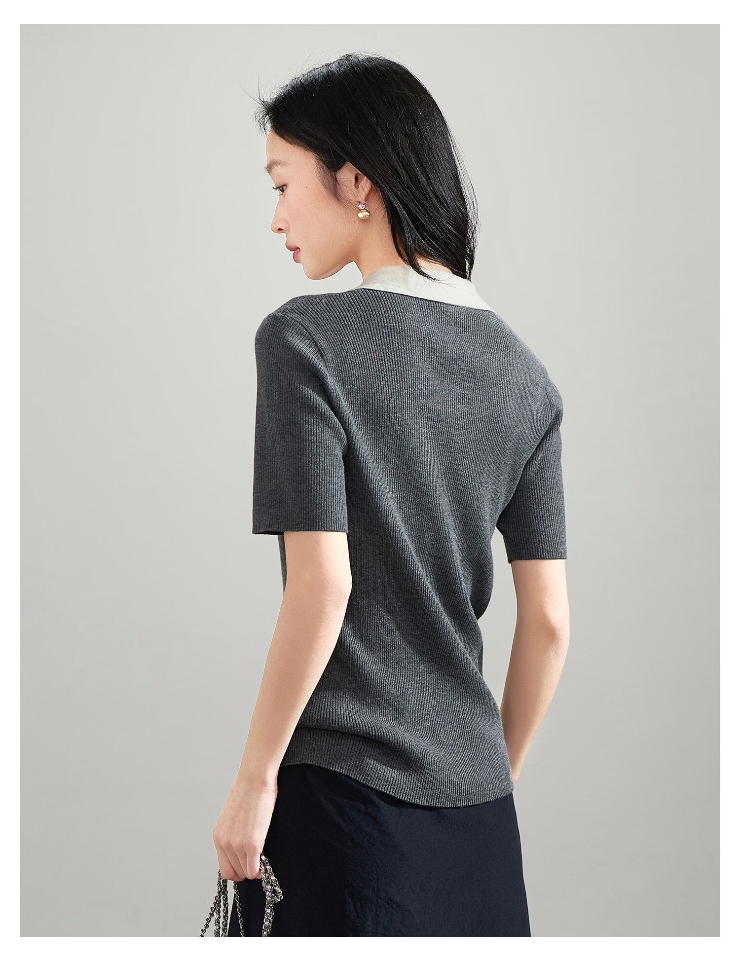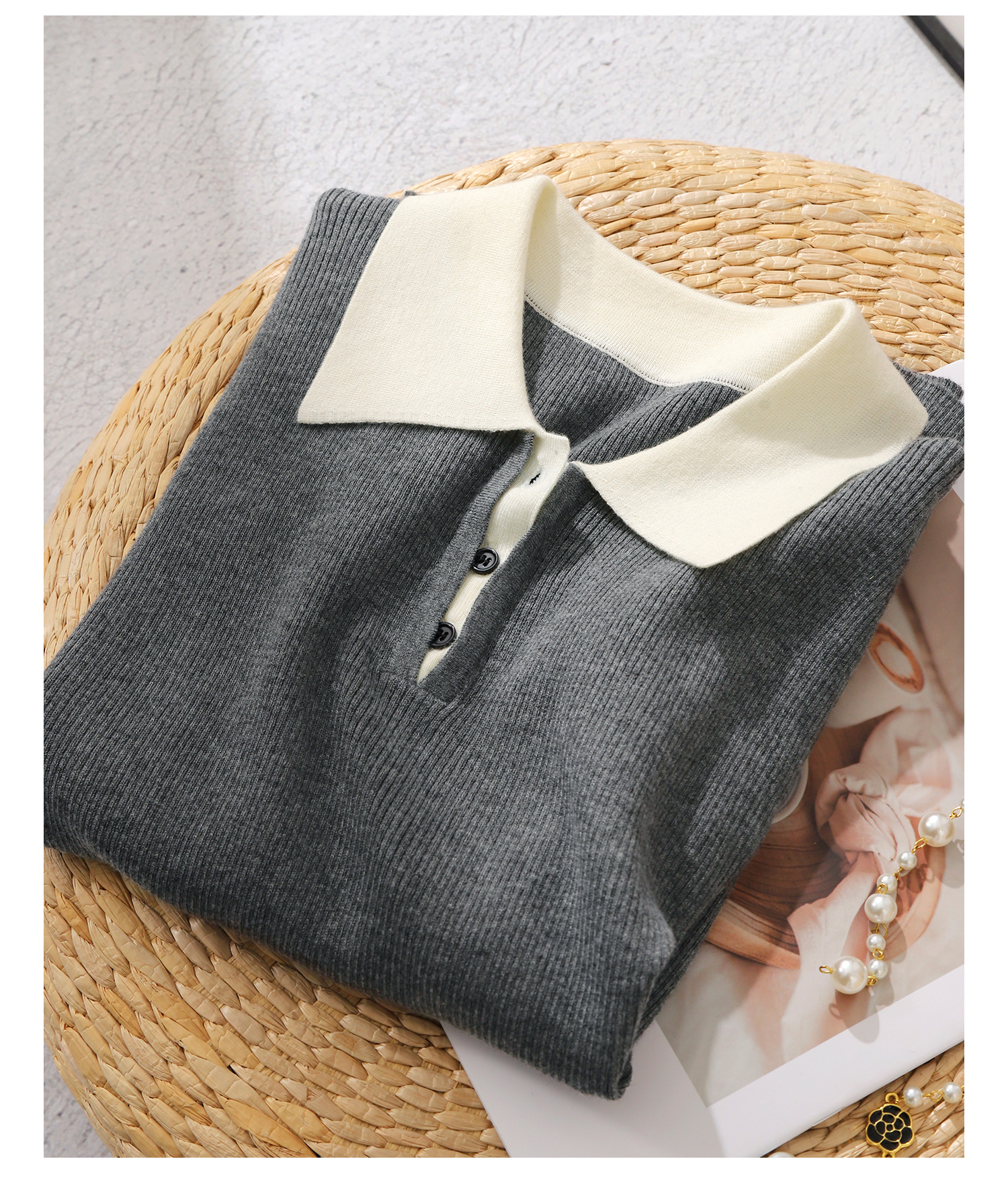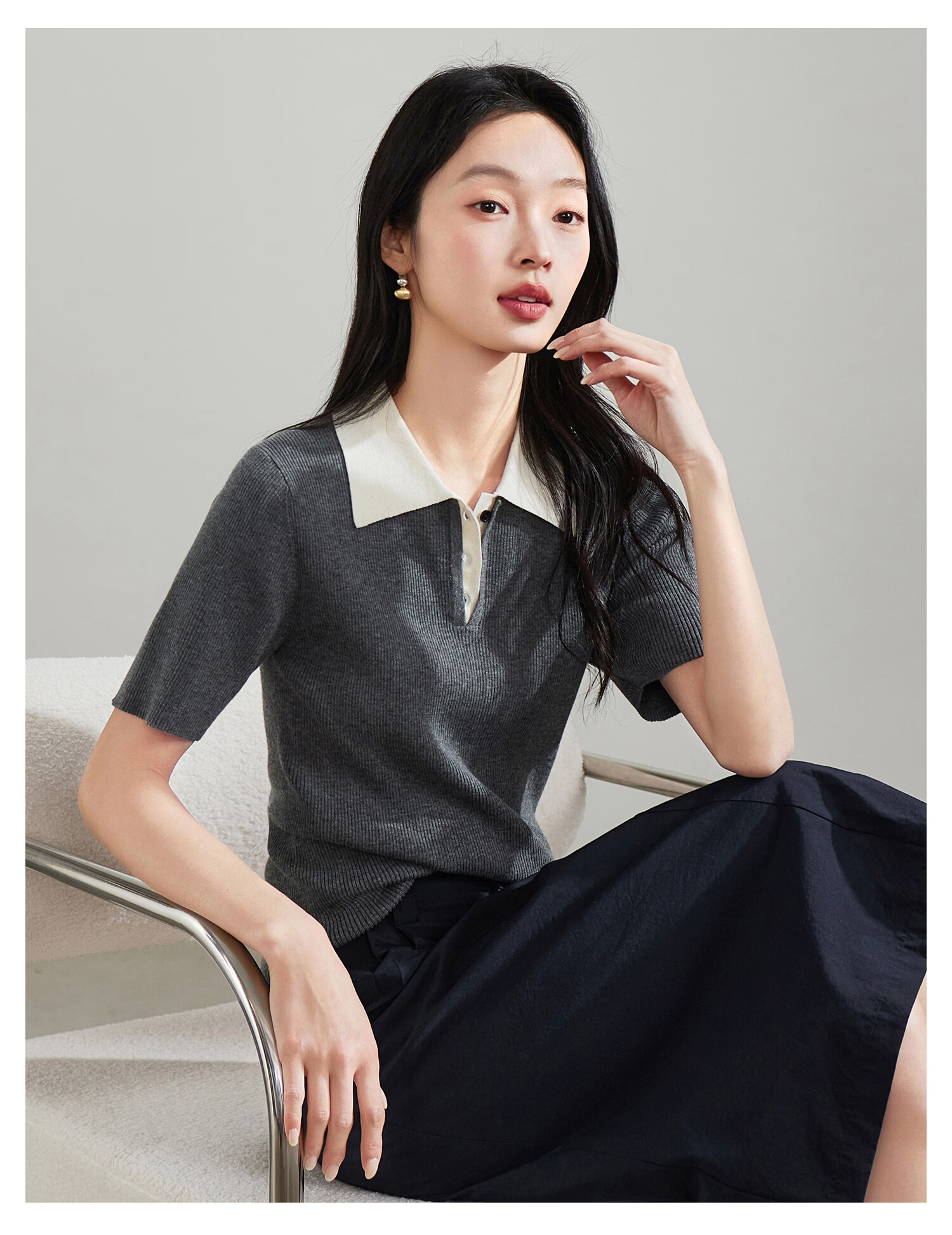 SOFSIL 2026 Spring New Contrast Color Simple POLO Collar Sweater Women's Short Sleeve Versatile Slim Solid Color Lapel Top